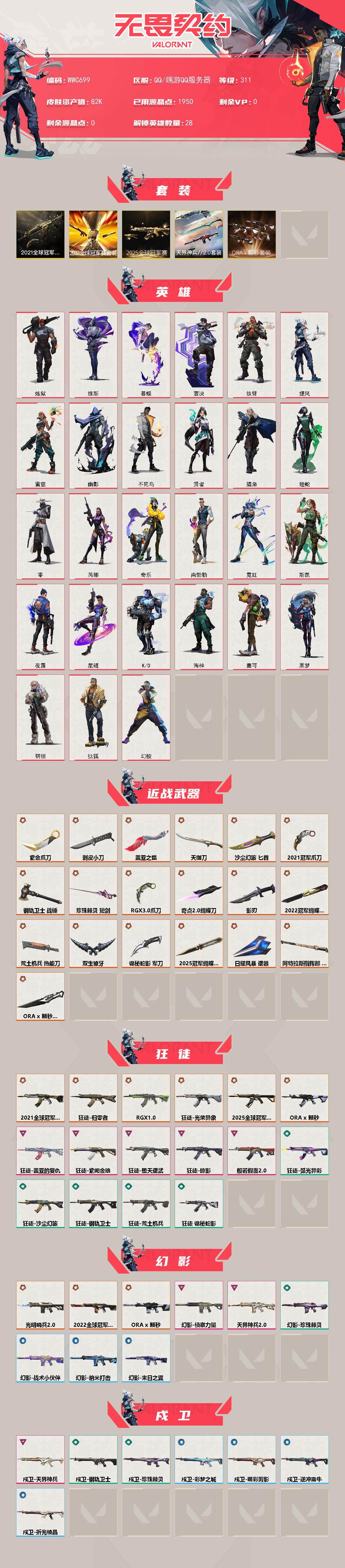 【wwc699】终极30/传奇4/卓越16/皮肤156/等级311/段位:白银/2025全球冠军赛套装/2022全球冠军赛套装/2021全球冠军赛套装/a x 颗秒套装/天界神兵//2.0套装/幻棱/炼狱/维斯/暮蝶/钛狐/壹决/铁臂/捷风/雷兹/幽影/不死鸟/贤者/猎枭/蝰蛇/零/芮娜/奇乐/尚勃勒/霓虹/斯凯/夜露/星礈/k/o/海神/盖可/黑梦/钢锁/近战武器-2025全球冠军赛 蝴蝶刀/近战武器-2022全球冠军赛 蝴蝶刀/近战武器-2021全球冠军赛 爪刀/近战武器-a x 颗秒 军刀/近战武器-剥皮小刀/近战武器-奇点//2.0 蝴蝶刀/近战武器-紫金爪刀/近战武器-rgx 11z pro//3.0 爪刀/近战武器-双生獠牙/近战武器-珍珠棘贝 短剑/近战武器-盖亚之愠/近战武器-钢轨卫士 战锤/近战武器-荒土机兵 热能刀/近战武器-沙尘幻旅 匕首/近战武器-天御刀/近战武器-影刃/近战武器-诡秘蛇影 军刀/近战武器-日耀风暴 遗器/近战武器-阿特拉斯指挥部 甩棍/狂徒-2025全球冠军赛/狂徒-2021全球冠军赛/狂徒-归零者/狂徒-rgx 11z pro/狂徒-光荣异象/狂徒-a x 颗秒/狂徒-般若假面//2.0/狂徒-堕天遗武/狂徒-掠影/狂徒-盖亚的复仇/狂徒-紫阙金琅/狂徒-钢轨卫士/狂徒-弧光异彩/狂徒-荒土机兵/狂徒-沙尘幻旅/狂徒-诡秘蛇影/幻影-2022全球冠军赛/幻影-光明哨兵//2.0/幻影-a x 颗秒/幻影-天界神兵//2.0/幻影-侦察力量/幻影-珍珠棘贝/幻影-纳米打击/幻影-战术小伙伴/幻影-末日之翼/戍卫-天界神兵/戍卫-钢轨卫士/戍卫-珍珠棘贝/戍卫-彩梦之城/戍卫-萌彩剪影/戍卫-逆冲蛮牛/戍卫-折光棱晶/獠犬-日冕雄师/獠犬-复古浪潮/獠犬-胡桃狂想/獠犬-逆冲蛮牛/獠犬-战术小伙伴/冥驹-a x 颗秒/冥驹-堕天遗武/冥驹-荒土机兵/冥驹-复古浪潮/冥驹-胡桃狂想/飞将-沙尘幻旅/飞将-光导纤维/飞将-末日之翼/莽侠-诡秘蛇影/莽侠-深海水族/战神-萌彩剪影/战神-深海水族/奥丁-天界神兵//2.0/奥丁-纳米打击/奥丁-战术小伙伴/奥丁-末日之翼/判官-天界神兵//2.0/判官-诡秘蛇影/判官-萌彩剪影/判官-纳米打击x/雄鹿-彩梦之城/雄鹿-复古浪潮/雄鹿-逆冲蛮牛/骇灵-侦察力量/骇灵-荒土机兵/骇灵-沙尘幻旅/骇灵-珍珠棘贝/骇灵-光导纤维/骇灵-信手涂鸦/蜂刺-弧光异彩/蜂刺-胡桃狂想/蜂刺-深海水族/蜂刺-战术小伙伴/蜂刺-折光棱晶/标配-荒土机兵/标配-彩梦之城/标配-光导纤维/标配-折光棱晶/标配-vct25 x blg/正义-西部未来/正义-a x 颗秒/正义-离子武器/正义-超限闪存/正义-沙尘幻旅/正义-传奇制造/正义-复古浪潮/正义-纳米打击/鬼魅-破败军械/鬼魅-天界神兵/鬼魅-诡秘蛇影/鬼魅-光导纤维/鬼魅-胡桃狂想/鬼魅-扑棱扑棱/鬼魅-信手涂鸦/鬼魅-星云暗涌/狂怒-天界神兵//2.0/狂怒-钢轨卫士/狂怒-珍珠棘贝/狂怒-萌彩剪影/狂怒-逆冲蛮牛/短炮-钢轨卫士/短炮-深海水族/短炮-末日之翼/终章:激斗汉堡 卡面/进入射程 卡面/分崩离析 卡面/纳米打击 卡面/抑制技术 卡面/激斗汉堡 卡面/瓦娃脸雪糕 p2 卡面/从黄昏到黎明 卡面/荒土机兵 卡面/银弹猎手 卡面/逆冲蛮牛 卡面/《双城之战》拥抱 卡面/精灵大战 卡面/欢迎来到底城 卡面/南瓜盛典 卡面/vct cn首冠 卡面/无畏契约:暮蝶 卡面/修车达人 卡面/热舞环节 卡面/正义的化身 卡面/最高舞台 卡面/clutch 卡面/梦幻奶茶 卡面/哨卫者之领域 卡面/暮蝶工牌 卡面/源能反应 卡面/零点嗅探设计图 卡面/终章:瓦娃脸雪糕 卡面/表象之下 卡面/虹吸式咖啡壶 卡面/源能者美容 卡面/脚踝终结者 卡面 /夜班 卡面/瓦娃脸雪糕 卡面 /沙雕爆能器 卡面/无畏契约go!第一卷:芮娜 卡面/深海水族 卡面/珍珠棘贝 卡面/复古浪潮 卡面/盖可工牌 卡面/清除名单 卡面/无畏契约go!第一卷:零 卡面/终章:同步耍酷 卡面/龍记 卡面/化茧成蝶 卡面/比比看谁快? 卡面/无垠星环 卡面/先瓦为敬 绿色 卡面/《双城之战》金克丝 卡面/蝰蛇vs幽影 卡面/势不可挡//盖可 卡面/逆向独行 卡面 /同步耍酷 卡面/完美调谐 卡面 /没有什么能逃过我的眼睛 卡面/光导纤维 卡面/战术小伙伴 卡面/钢轨卫士 卡面/暗呛 卡面/终章:黑影先生的咖啡! 卡面/铁臂vs雷兹 卡面/纪念照 p2 卡面/钢锁vs盖可 卡面/别冒尖 卡面/一击全倒 卡面/黑影先生的咖啡! 卡面/天台狂欢 卡面/胡桃狂想 卡面/沙尘幻旅 卡面/壹决工牌 卡面/萌彩剪影 卡面/势不可挡//k/o 卡面/夯实根基 卡面/"luie" 卡面/热烈欢迎 卡面/铁臂设计图 卡面/代号红色 卡面/冰淇淋店 卡面/新兵报到 卡面/友军火力 卡面/v契约 卡面/无畏契约 卡面/小小心意 喷漆/战“素”兔 喷漆/宇宙的指引 喷漆/请求重启 喷漆/逆冲蛮牛 喷漆/纳米打击 喷漆/鼻尖上的蝴蝶 喷漆/简笔画黯兽 喷漆/独守蝰腹 喷漆/他们将落荒而逃 喷漆/通缉:战术企鹅 喷漆/荒土机兵 喷漆/别挡我吃球! 喷漆/嗨宝南瓜灯 喷漆/嘭! 喷漆/都算到了 喷漆/控场勿近 喷漆/伤心心 喷漆/小丑猫 喷漆/熊抱 喷漆/蛋糕还是爆能器? 喷漆/超级粉丝 喷漆/捷风差距 喷漆/头号粉丝 喷漆/我的刀呢? 喷漆/情绪控制 喷漆/哨卫滑步 喷漆/倒吸一口凉气 喷漆/uwu 喷漆/新潮流 喷漆/逮到一个 喷漆/一个人的孤岛 喷漆/双人比心 喷漆/不予置评 喷漆/三熊合一 喷漆/要喝完噢! 喷漆/双击点赞 喷漆/珍珠棘贝 喷漆/深海水族 喷漆/禁止标配 喷漆 /铁臂尴尬 喷漆/买装还是存钱 喷漆/醒狮贺春 喷漆/关门放狗 喷漆/萌化了 喷漆/酷熊冲浪 喷漆/无畏契约go!第一卷:芮娜 喷漆/红鳞 喷漆/无畏契约go!第一卷:零 喷漆/无畏契约go!第一卷:捷风 喷漆/无畏契约go!第一卷:贤者 