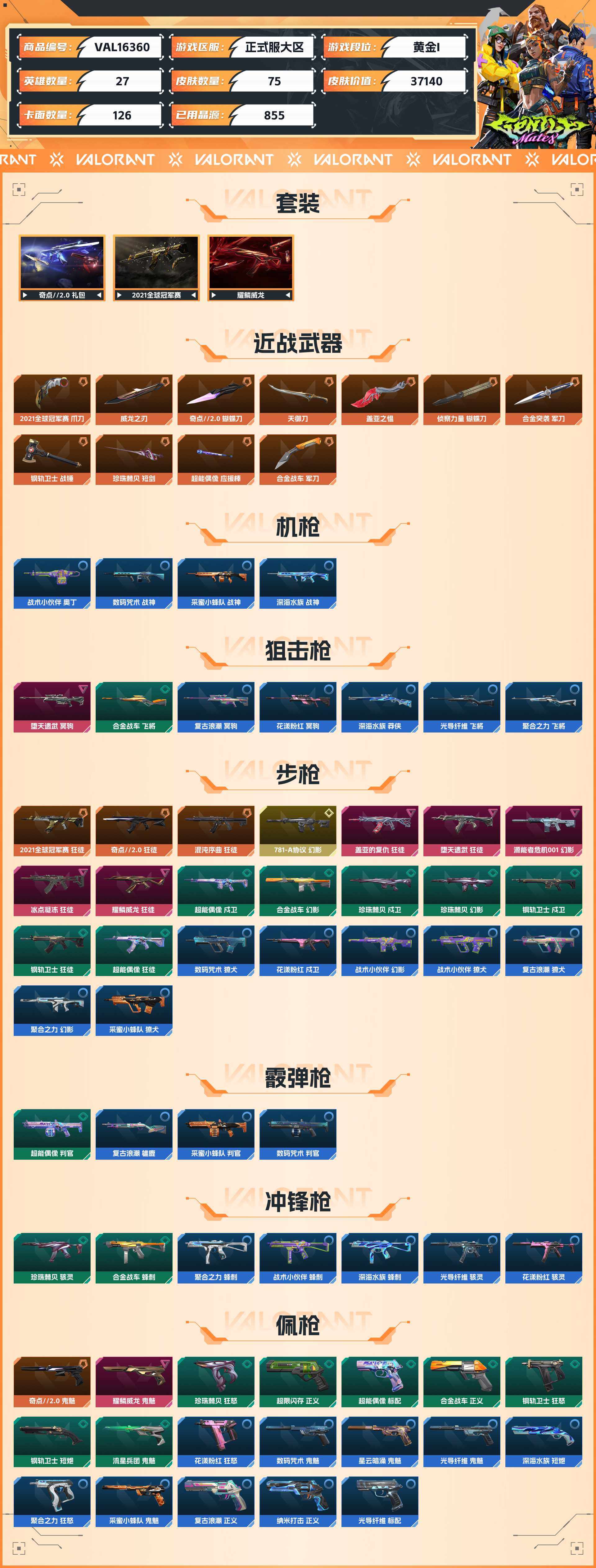 val16360|黄金i 皮肤价值37140 已用晶源855 皮肤数量75 套装数量3 终极1 限定15 卓越7 奢华18 精选34【拥有套装】奇点//2.0 礼包2021全球冠军赛耀鳞威龙【拥有皮肤】2021全球