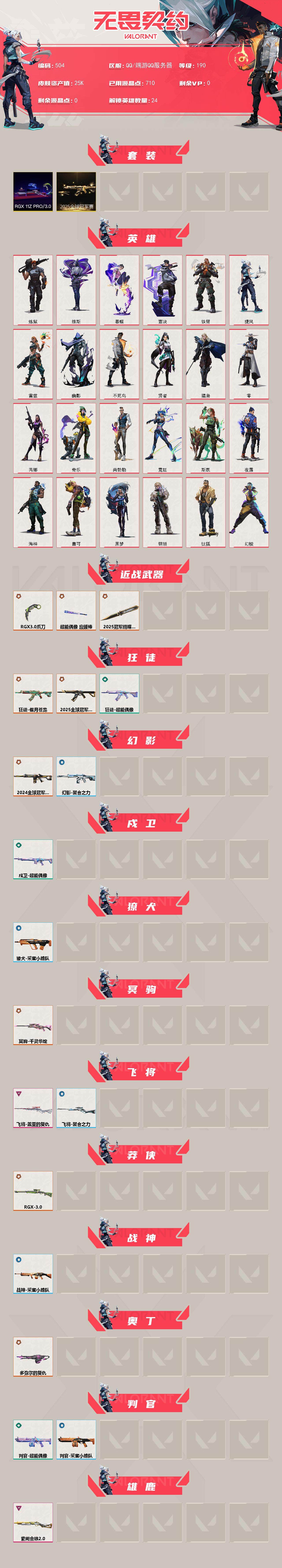 【504】xq23909 【套装】:2025全球冠军赛套装,rgx 11z pro//3.0套装 【英雄】:幻棱,炼狱,维斯,暮蝶,钛狐,壹决,铁臂,捷风,雷兹,幽影,不死鸟,贤者,猎枭,零,芮娜,奇乐,尚勃勒,霓虹,斯凯,夜露,海神,盖可,黑梦,钢锁 【近战 武器】:近战武器-2025全球冠军赛 蝴蝶刀,近战武器-rgx 11z pro//3.0 爪刀,近战武器-超能偶像 应援棒 【狂徒】:狂徒-2025全球冠军赛,狂徒-偃月苍龙,狂徒-超能偶像 【幻影】:幻影-2024全球冠军赛,幻影-聚合之力 【戍卫】:戍卫-超能偶像 【獠犬】:獠犬-采蜜小蜂队 【冥驹】:冥驹-千灵华绽 【飞将】:飞将-盖亚的复仇,飞将-聚合之力 【莽侠】:莽侠-rgx 11z pro//3.0 【战神】:战神-采蜜小蜂队 【奥丁】:奥丁-多弥尔的复仇 【判官】:判官-超能偶像,判官-采蜜小蜂队 【雄鹿】:雄鹿-紫阙金琅//2.0 【骇灵】:骇灵-堕天遗武 【蜂刺】:蜂刺-聚合之力 【标配】:标配-超能偶像 【正义】:正义-rgx 11z pro//3.0,正义-奇点,正义-超限闪存,正义-复古浪潮,正义-纳米打击 【鬼魅】:鬼魅-天界神兵,鬼魅-流星兵团,鬼魅-诡秘蛇影,鬼魅-采蜜小蜂队,鬼魅-星云暗涌 【狂怒】:狂怒-聚合之力 【短炮】:短炮-梦魇恶魔 【卡面】:终章:激斗汉堡 卡面,进入射程 卡面,《双城之战》拥抱 卡面,精灵大战 卡面,欢迎来到底城 卡面,南瓜盛典 卡面,vct cn首冠 卡面,修车达人 卡面,热舞环节 卡面,正义的化身 卡面,终章:生意人麦宝 卡面,铁之华 卡面,失而复得 卡面,时间到 卡面,最高舞台 卡面,复活专家 卡面,归乡 // 蝰蛇 卡面,rgx 11z pro//3.0 卡面,超能偶像 卡面,生意人麦宝 卡面,音熊登场 卡面,树懒大作战 卡面,声感陷阱设计图 卡面,红鳞松叶 卡面,clutch 卡面,霓帧牛蛙 卡面,钢锁工牌 卡面,战术小伙伴的夏日 卡面,采蜜小蜂队 卡面,聚合之力 卡面,梦幻奶茶 卡面,终章:打造专属狂徒 卡面,趁热吃 卡面,西装暴徒 卡面,失控边缘 卡面,艺无止境//全球冠军赛 卡面,战术熊与伙伴们 卡面,源能反应 卡面,打造专属狂徒 卡面,零点嗅探设计图 卡面,终章:瓦娃脸雪糕 卡面,表象之下 卡面,源能者美容 卡面,脚踝终结者 卡面 ,沙雕爆能器 卡面,无畏契约go!第一卷:芮娜 卡面,盖可工牌 卡面,清除名单 卡面,无畏契约go!第一卷:零 卡面,龍记 卡面,先瓦为敬 绿色 卡面,《双城之战》金克丝 卡面,光导纤维 卡面,暗呛 卡面,无畏契约go!第一卷:贤者 卡面,钢锁vs盖可 卡面,黑影先生的咖啡! 卡面,夯实根基 卡面,代号红色 卡面,新兵报到 卡面,v契约 卡面,无畏契约 卡面,809特遣队 卡面,暗潮 卡面 【喷漆】:嗨宝南瓜灯 喷漆,嘭! 喷漆,都算到了 喷漆,控场勿近 喷漆,小丑猫 喷漆,熊抱 喷漆,蛋糕还是爆能器? 喷漆,又被闪了 喷漆,终极羞辱 喷漆,超级粉丝 喷漆,黯兽卖萌 喷漆,捷风差距 喷漆,惊声尖叫 喷漆,水晶球 喷漆,2021冠军巡回赛花火 喷漆,五人成星 喷漆,超能偶像 喷漆,rgx 11z pro//3.0 喷漆,放我出去 喷漆,战术熊的巴拉莱卡琴 喷漆,审判之爪 喷漆,掩护我 喷漆,大佬发呛 喷漆,边缘试探 喷漆,拼一呛 喷漆,聚合之力 喷漆,采蜜小蜂队 喷漆,梦幻小队 喷漆,五个全都齐了 喷漆,我觉得不行 喷漆,我的刀呢? 喷漆,uwu 喷漆,新潮流 喷漆,双击点赞 喷漆,买装还是存钱 喷漆,醒狮贺春 喷漆,关门放狗 喷漆,酷熊冲浪 喷漆,无畏契约go!第一卷:芮娜 喷漆,无畏契约go!第一卷:零 喷漆,无畏契约go!第一卷:贤者 喷漆,无畏契约go!第一卷:奇乐 喷漆,飓刃涂鸦 喷漆 ,胜利属于无畏契约 喷漆,glhf 喷漆,无畏契约 喷漆 【挂饰】:终章:猫猫木乃伊 挂饰,悠闲鸡块 挂饰,伞绳 挂饰,《双城之战》小蛋糕 挂饰,第九季//第三幕 纪念币 挂饰,工具腰带 挂饰,无畏契约go!第一卷 芮娜 挂饰,无畏契约go!第一卷 零 挂饰,鱼骨头 挂饰,熔岩灯 挂饰,瞬云履 挂饰,第九季//第二幕 纪念币 挂饰,薰衣草之心 挂饰,终章:这瓜保熟 挂饰,炼狱雪糕 挂饰,糖葫芦 挂饰,袖珍捷风 挂饰,冲上云霄 挂饰,超能偶像 挂饰,rgx 11z pro//3.0 挂饰,丢麦 挂饰,迷你浓缩 挂饰,尤克里里 挂饰,这瓜保熟 挂饰,z世代特饮 挂饰,采蜜小蜂队 挂饰,第九季//第一幕 纪念币 挂饰,聚合之力 挂饰,终章:迷你机甲 挂饰,战术河童 挂饰,改变者全球冠军赛奖杯 挂饰,荧光棒 挂饰,第八季//第三幕 纪念币 挂饰,终章:扭结饼干 挂饰 ,瓶中信 挂饰,传世莲华 挂饰,第八季//第二幕 纪念币 挂饰 ,天外飞客 挂饰,好运福爪 挂饰,红鳞松叶 挂饰,《双城之战》魄罗 挂饰,第八季//第一幕 纪念币 挂饰,海豹的认可 挂饰,无畏契约 纪念币 挂饰