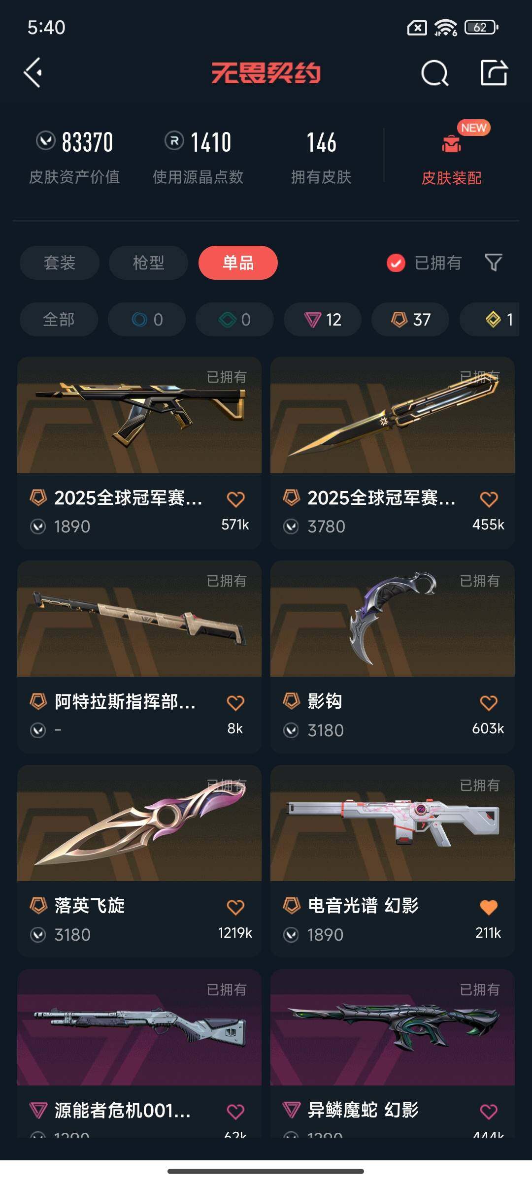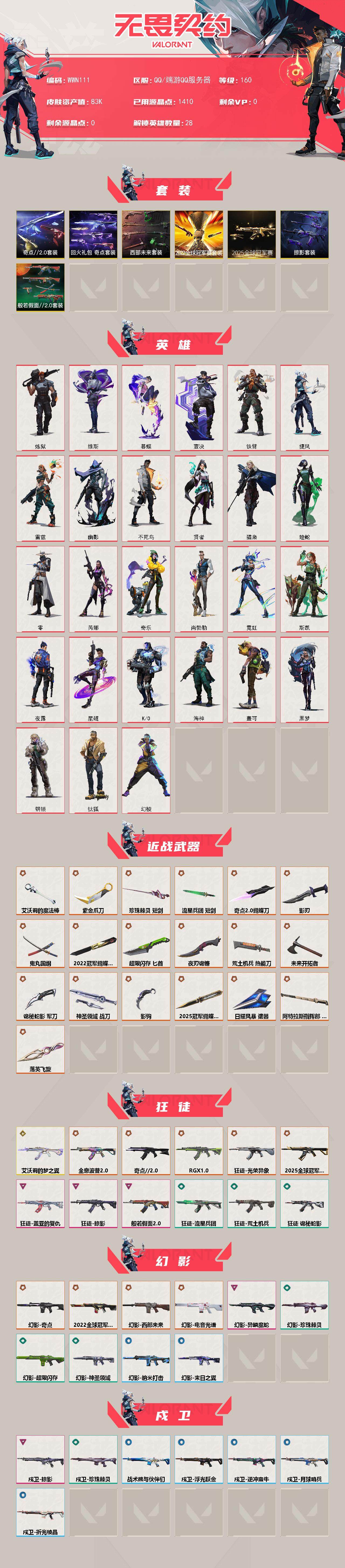 【wwn111】终极37/传奇1/卓越12/皮肤146/等级160/段位:黄金/2025全球冠军赛套装/2022全球冠军赛/西部未来/奇点//2.0/回火礼包:奇点/般若假面//2.0/掠影/幻棱/炼狱/维斯/暮蝶/钛狐/壹决/铁臂/捷风/雷兹/幽影/不死鸟/贤者/猎枭/蝰蛇/零/芮娜/奇乐/尚勃勒/霓虹/斯凯/夜露/星礈/k/o/海神/盖可/黑梦/钢锁/近战武器-2025全球冠军赛