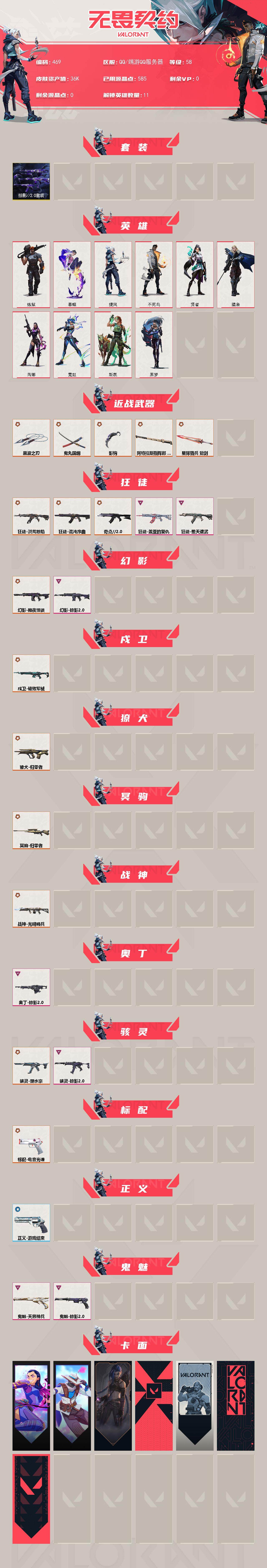【469】xl38218 【套装】:掠影//2.0套装 【英雄】:炼狱,暮蝶,捷风,不死鸟,贤者,猎枭,芮娜,霓虹,斯凯,黑梦 【近战 武器】:近战武器-影钩,近战武器-黑波之刃,近战武器-鬼丸国纲,近战武器-阿特拉斯指挥部 甩棍,近战武器-星际猎兵 短剑 【狂徒】:狂徒-洪荒怒焰,狂徒-混沌序曲,狂徒-奇点//2.0,狂徒-堕天遗武,狂徒-盖亚的复仇 【幻影】:幻影-黯夜怪谈,幻影-掠影//2.0 【戍卫】:戍卫-破败军械 【獠犬】:獠犬-归零者 【冥驹】:冥驹-归零者 【战神】:战神-光明哨兵 【奥丁】:奥丁-掠影//2.0 【骇灵】:骇灵-塑水宗,骇灵-掠影//2.0 【标配】:标配-电音光谱,标配-电音光谱 【正义】:正义-游戏结束 【鬼魅】:鬼魅-天界神兵,鬼魅-掠影//2.0 【卡面】:无畏契约go!第一卷:芮娜 卡面,无畏契约go!第一卷:零 卡面,《双城之战》金克丝 卡面,代号红色 卡面,新兵报到 卡面,v契约 卡面,无畏契约 卡面 【喷漆】:买装还是存钱 喷漆,无畏契约go!第一卷:捷风 喷漆,胜利属于无畏契约 喷漆,glhf 喷漆,无畏契约 喷漆 【挂饰】:天外飞客 挂饰,无畏契约 纪念币 挂饰