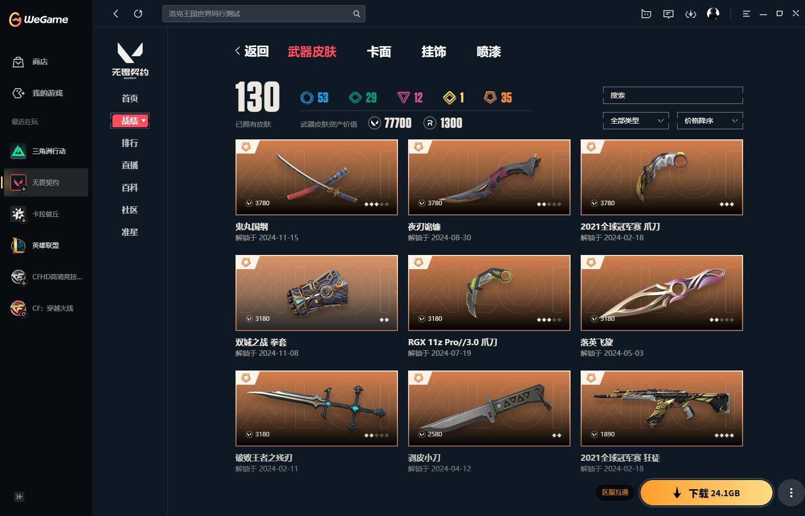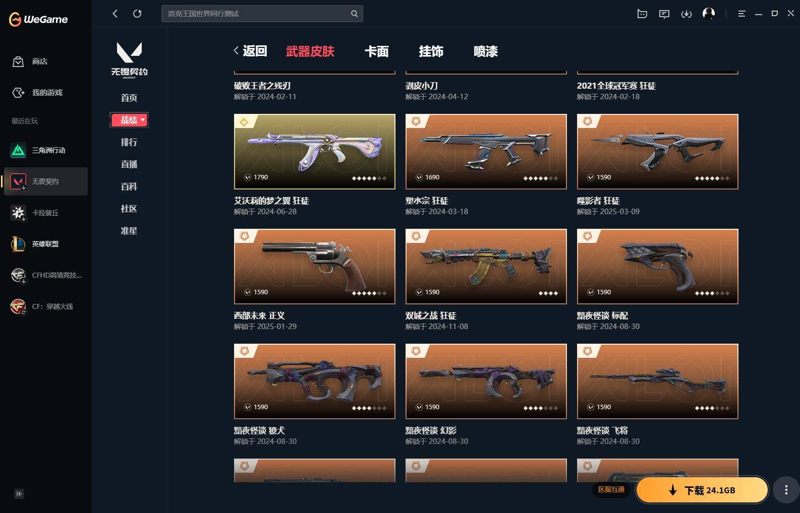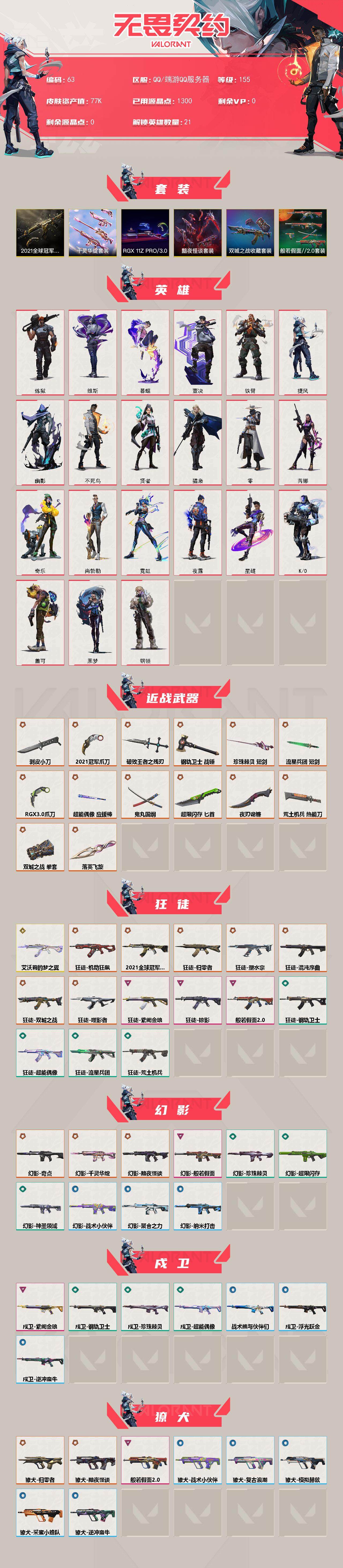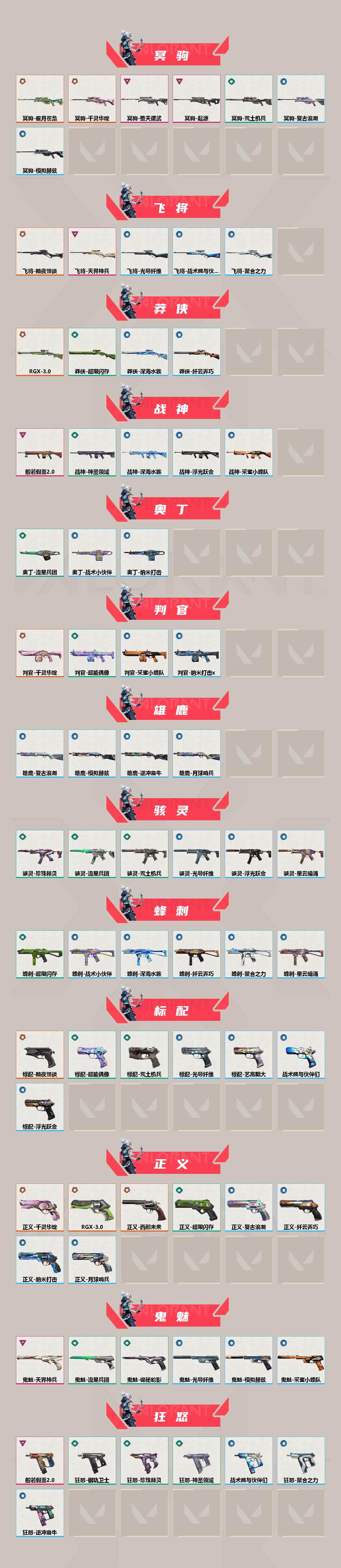 【63】xl35451 【套装】:2021全球冠军赛套装,rgx 11z pro//3.0套装,《双城之战》收藏套装,千灵华绽套装,黯夜怪谈套装,般若假面//2.0套装 【英雄】:炼狱,维斯,暮蝶,壹决,铁臂,捷风,幽影,不死鸟,贤者,猎枭,零,芮娜,奇乐,尚勃勒,霓虹,夜露,星礈,k/o,盖可,黑梦,钢锁 【近战 武器】:近战武器-2021全球冠军赛 爪刀,近战武器-剥皮小刀,近战武器-rgx 11z pro//3.0 爪刀,近战武器-落英飞旋,近战武器-鬼丸国纲,近战武器-双城之战 拳套,近战武器-珍珠棘贝 短剑,近战武器-流星兵团 短剑,近战武器-超能偶像 应援棒,近战武器-超限闪存 匕首,近战武器-钢轨卫士 战锤,近战武器-荒土机兵 热能刀,近战武器-破败王者之残刃,近战武器-夜刃诡镰 【狂徒】:狂徒-艾沃莉的梦之翼,狂徒-2021全球冠军赛,狂徒-归零者,狂徒-混沌序曲,狂徒-机动狂飙,狂徒-双城之战,狂徒-塑水宗,狂徒-噬影者,狂徒-般若假面//2.0,狂徒-掠影,狂徒-紫阙金琅,狂徒-超能偶像,狂徒-钢轨卫士,狂徒-荒土机兵,狂徒-流星兵团 【幻影】:幻影-黯夜怪谈,幻影-奇点,幻影-千灵华绽,幻影-般若假面,幻影-超限闪存,幻影-珍珠棘贝,幻影-神圣领域,幻影-聚合之力,幻影-纳米打击,幻影-战术小伙伴 【戍卫】:戍卫-紫阙金琅,戍卫-超能偶像,戍卫-钢轨卫士,戍卫-珍珠棘贝,戍卫-浮光跃金,戍卫-逆冲蛮牛,戍卫-战术熊与伙伴们 【獠犬】:獠犬-黯夜怪谈,獠犬-归零者,獠犬-般若假面//2.0,獠犬-采蜜小蜂队,獠犬-复古浪潮,獠犬-模拟赫兹,獠犬-逆冲蛮牛,獠犬-战术小伙伴 【冥驹】:冥驹-千灵华绽,冥驹-偃月苍龙,冥驹-堕天遗武,冥驹-起源,冥驹-荒土机兵,冥驹-复古浪潮,冥驹-模拟赫兹 【飞将】:飞将-黯夜怪谈,飞将-天界神兵,飞将-聚合之力,飞将-光导纤维,飞将-战术熊与伙伴们 【莽侠】:莽侠-rgx 11z pro//3.0,莽侠-超限闪存,莽侠-深海水族,莽侠-纤云弄巧 【战神】:战神-般若假面//2.0,战神-神圣领域,战神-采蜜小蜂队,战神-浮光跃金,战神-深海水族 【奥丁】:奥丁-流星兵团,奥丁-纳米打击,奥丁-战术小伙伴 【判官】:判官-千灵华绽,判官-超能偶像,判官-采蜜小蜂队,判官-纳米打击x 【雄鹿】:雄鹿-复古浪潮,雄鹿-模拟赫兹,雄鹿-逆冲蛮牛,雄鹿-月球哨兵 【骇灵】:骇灵-荒土机兵,骇灵-流星兵团,骇灵-珍珠棘贝,骇灵-浮光跃金,骇灵-光导纤维,骇灵-星云暗涌 【蜂刺】:蜂刺-超限闪存,蜂刺-聚合之力,蜂刺-深海水族,蜂刺-纤云弄巧,蜂刺-战术小伙伴,蜂刺-星云暗涌 【标配】:标配-黯夜怪谈,标配-超能偶像,标配-荒土机兵,标配-浮光跃金,标配-光导纤维,标配-艺高胆大,标配-战术熊与伙伴们 【正义】:正义-rgx 11z pro//3.0,正义-千灵华绽,正义-西部未来,正义-超限闪存,正义-复古浪潮,正义-纳米打击,正义-纤云弄巧,正义-月球哨兵 【鬼魅】:鬼魅-天界神兵,鬼魅-流星兵团,鬼魅-诡秘蛇影,鬼魅-采蜜小蜂队,鬼魅-光导纤维,鬼魅-模拟赫兹 【狂怒】:狂怒-般若假面//2.0,狂怒-钢轨卫士,狂怒-珍珠棘贝,狂怒-神圣领域,狂怒-聚合之力,狂怒-逆冲蛮牛,狂怒-战术熊与伙伴们 【短炮】:短炮-钢轨卫士,短炮-深海水族,短炮-纤云弄巧 【卡面】:终章:激斗汉堡 卡面,进入射程 卡面,分崩离析 卡面,纳米打击 卡面,抑制技术 卡面,激斗汉堡 卡面,瓦娃脸雪糕 p2 卡面,从黄昏到黎明 卡面,荒土机兵 卡面,银弹猎手 卡面,逆冲蛮牛 卡面,《双城之战》拥抱 卡面,精灵大战 卡面,欢迎来到底城 卡面,南瓜盛典 卡面,唱片的故事 卡面,钢弓与箭弦 卡面,排除故障 卡面,战术桌游 卡面,悠享食光 卡面,修车达人 卡面,模拟赫兹 卡面,浮光跃金 卡面,超限闪存 卡面,维斯工牌 卡面,正义的化身 卡面,终章:生意人麦宝 卡面,铁之华 卡面,失而复得 卡面,时间到 卡面,最高舞台 卡面,复活专家 卡面,归乡 // 蝰蛇 卡面,rgx 11z pro//3.0 卡面,超能偶像 卡面,生意人麦宝 卡面,音熊登场 卡面,树懒大作战 卡面,声感陷阱设计图 卡面,风险合作 卡面,霓帧牛蛙 卡面,钢锁工牌 卡面,战术小伙伴的夏日 卡面,采蜜小蜂队 卡面,聚合之力 卡面,梦幻奶茶 卡面,终章:打造专属狂徒 卡面,趁热吃 卡面,西装暴徒 卡面,失控边缘 卡面,哨卫者之领域 卡面,无畏契约:尚勃勒 卡面,暮蝶工牌 卡面,战术熊与伙伴们 卡面,源能反应 卡面,流星兵团 卡面,纤云弄巧 卡面,暂别喧嚣 卡面,打造专属狂徒 卡面,零点嗅探设计图 卡面,终章:瓦娃脸雪糕 卡面,表象之下 卡面,虹吸式咖啡壶 卡面,源能者美容 卡面,脚踝终结者 卡面 ,夜班 卡面,瓦娃脸雪糕 卡面 ,沙雕爆能器 卡面,无畏契约go!第一卷:芮娜 卡面,深海水族 卡面,珍珠棘贝 卡面,复古浪潮 卡面,盖可工牌 卡面,清除名单 卡面,无畏契约go!第一卷:零 卡面,终章:同步耍酷 卡面,龍记 卡面,化茧成蝶 卡面,比比看谁快? 卡面,《双城之战》金克丝 卡面,蝰蛇vs幽影 卡面,势不可挡//盖可 卡面,逆向独行 卡面 ,同步耍酷 卡面,完美调谐 卡面 ,没有什么能逃过我的眼睛 卡面,光导纤维 卡面,战术小伙伴 卡面,钢轨卫士 卡面,暗呛 卡面,无畏契约go!第一卷:贤者 卡面,铁臂设计图 卡面,代号红色 卡面,新兵报到 卡面,v契约 卡面,无畏契约 卡面 【喷漆】:小小心意 喷漆,战“素”兔 喷漆,宇宙的指引 喷漆,请求重启 喷漆,逆冲蛮牛 喷漆,纳米打击 喷漆,鼻尖上的蝴蝶 喷漆,简笔画黯兽 喷漆,独守蝰腹 喷漆,他们将落荒而逃 喷漆,通缉:战术企鹅 喷漆,荒土机兵 喷漆,别挡我吃球! 喷漆,嗨宝南瓜灯 喷漆,嘭! 喷漆,都算到了 喷漆,控场勿近 喷漆,皮蛋