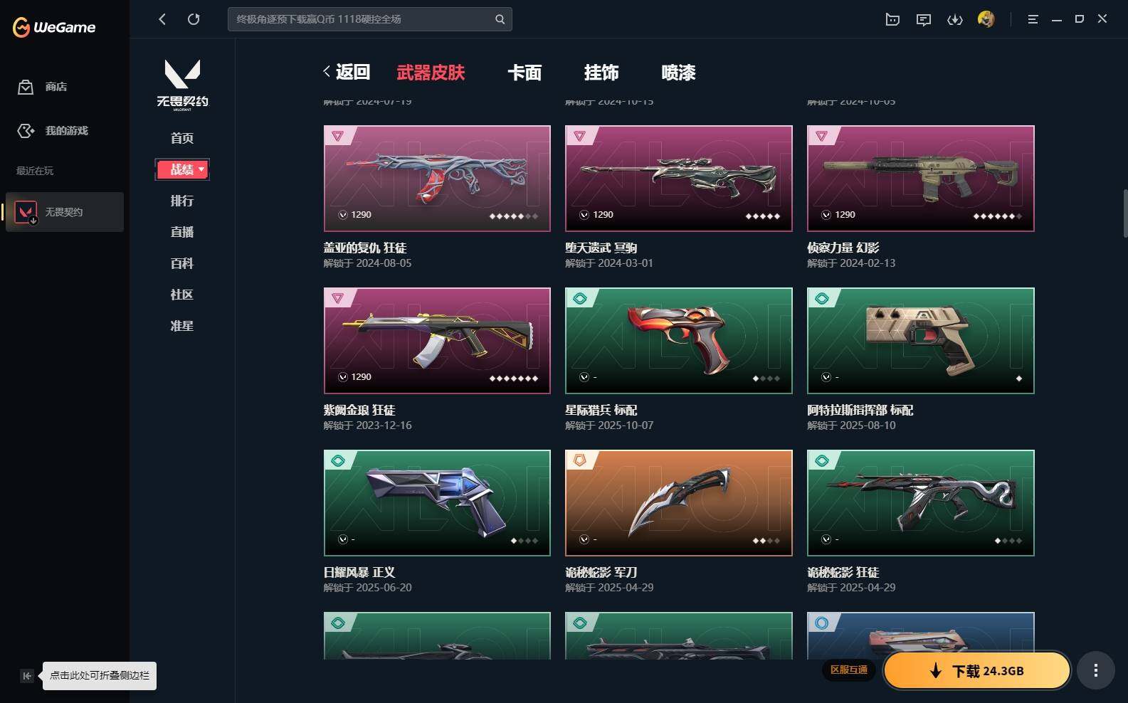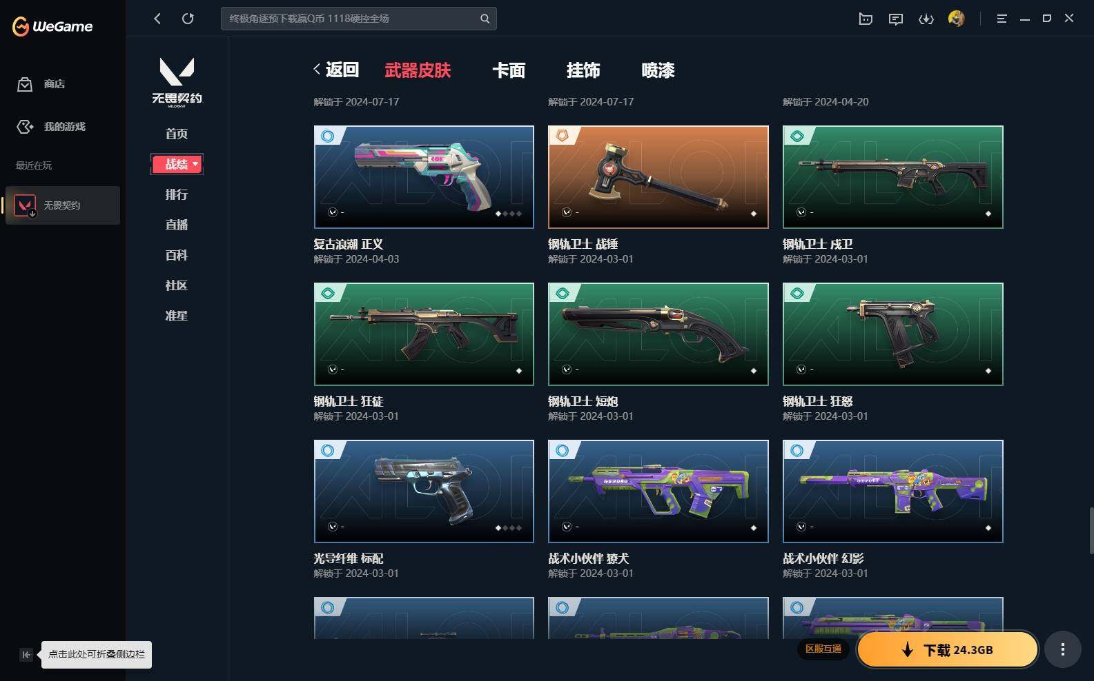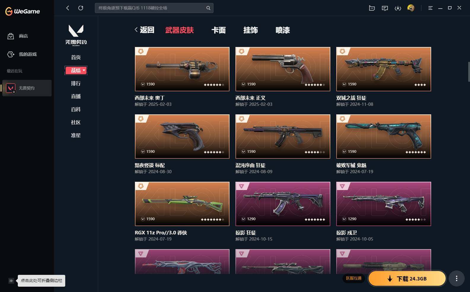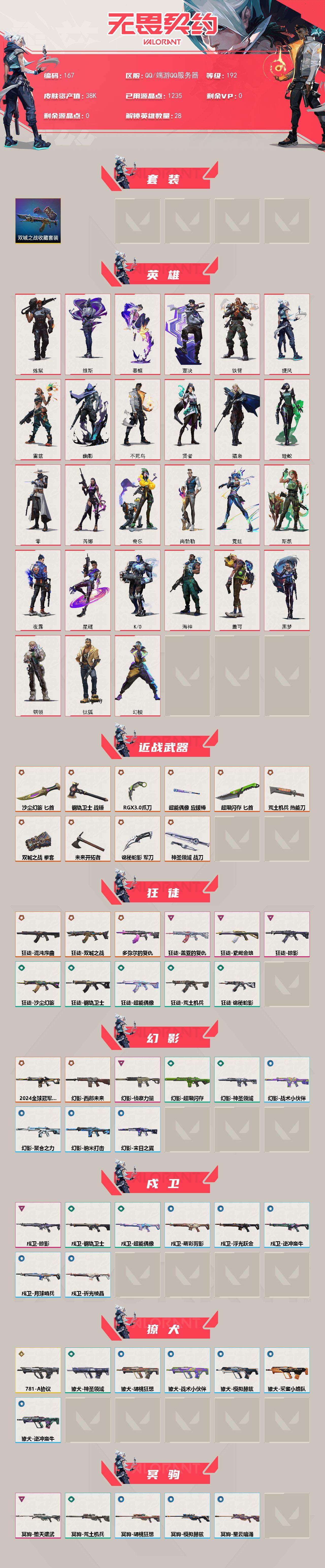 【167】【套装】:西部未来套装,《双城之战》收藏套装 【英雄】:幻棱,炼狱,维斯,暮蝶,钛狐,壹决,铁臂,捷风,雷兹,幽影,不死鸟,贤者,猎枭,蝰蛇,零,芮娜,奇乐,尚勃勒,霓虹,斯凯,夜露,星礈,k/o,海神,盖可,黑梦,钢锁 【近战 武器】:近战武器-rgx 11z pro//3.0 爪刀,近战武器-双城之战 拳套,近战武器-未来开拓者,近战武器-超能偶像 应援棒,近战武器-超限闪存 匕首,近战武器-钢轨卫士 战锤,近战武器-荒土机兵 热能刀,近战武器-沙尘幻旅 匕首,近战武器-诡秘蛇影 军刀,近战武器-神圣领域 战刀 【狂徒】:狂徒-混沌序曲,狂徒-双城之战,狂徒-多弥尔的复仇,狂徒-掠影,狂徒-盖亚的复仇,狂徒-紫阙金琅,狂徒-超能偶像,狂徒-钢轨卫士,狂徒-荒土机兵,狂徒-沙尘幻旅,狂徒-诡秘蛇影 【幻影】:幻影-2024全球冠军赛,幻影-西部未来,幻影-侦察力量,幻影-超限闪存,幻影-神圣领域,幻影-聚合之力,幻影-纳米打击,幻影-战术小伙伴,幻影-末日之翼,幻影-西部未来 【戍卫】:戍卫-掠影,戍卫-超能偶像,戍卫-钢轨卫士,戍卫-浮光跃金,戍卫-萌彩剪影,戍卫-逆冲蛮牛,戍卫-月球哨兵,戍卫-折光棱晶 【獠犬】:獠犬-781-a协议,獠犬-神圣领域,獠犬-采蜜小蜂队,獠犬-胡桃狂想,獠犬-模拟赫兹,獠犬-逆冲蛮牛,獠犬-战术小伙伴 【冥驹】:冥驹-堕天遗武,冥驹-荒土机兵,冥驹-胡桃狂想,冥驹-模拟赫兹,冥驹-星云暗涌 【飞将】:飞将-西部未来,飞将-沙尘幻旅,飞将-聚合之力,飞将-光导纤维,飞将-末日之翼 【莽侠】:莽侠-rgx 11z pro//3.0,莽侠-超限闪存,莽侠-诡秘蛇影,莽侠-月球哨兵 【战神】:战神-神圣领域,战神-采蜜小蜂队,战神-浮光跃金,战神-萌彩剪影 【奥丁】:奥丁-西部未来,奥丁-纳米打击,奥丁-战术小伙伴,奥丁-末日之翼 【判官】:判官-超能偶像,判官-诡秘蛇影,判官-采蜜小蜂队,判官-萌彩剪影,判官-纳米打击x 【雄鹿】:雄鹿-模拟赫兹,雄鹿-逆冲蛮牛,雄鹿-月球哨兵 【骇灵】:骇灵-荒土机兵,骇灵-沙尘幻旅,骇灵-浮光跃金,骇灵-光导纤维,骇灵-星云暗涌 【蜂刺】:蜂刺-超限闪存,蜂刺-胡桃狂想,蜂刺-聚合之力,蜂刺-战术小伙伴,蜂刺-星云暗涌,蜂刺-折光棱晶 【标配】:标配-黯夜怪谈,标配-超能偶像,标配-荒土机兵,标配-浮光跃金,标配-光导纤维,标配-折光棱晶 【正义】:正义-塑水宗,正义-西部未来,正义-超限闪存,正义-沙尘幻旅,正义-复古浪潮,正义-纳米打击,正义-月球哨兵 【鬼魅】:鬼魅-破败军械,鬼魅-诡秘蛇影,鬼魅-采蜜小蜂队,鬼魅-光导纤维,鬼魅-胡桃狂想,鬼魅-灵魂消声者,鬼魅-模拟赫兹,鬼魅-星云暗涌 【狂怒】:狂怒-钢轨卫士,狂怒-神圣领域,狂怒-聚合之力,狂怒-萌彩剪影,狂怒-逆冲蛮牛 【短炮】:短炮-钢轨卫士,短炮-末日之翼 【卡面】:终章:激斗汉堡 卡面,进入射程 卡面,分崩离析 卡面,纳米打击 卡面,抑制技术 卡面,激斗汉堡 卡面,瓦娃脸雪糕 p2 卡面,从黄昏到黎明 卡面,荒土机兵 卡面,银弹猎手 卡面,逆冲蛮牛 卡面,《双城之战》拥抱 卡面,精灵大战 卡面,欢迎来到底城 卡面,南瓜盛典 卡面,vct cn首冠 卡面,唱片的故事 卡面,钢弓与箭弦 卡面,排除故障 卡面,战术桌游 卡面,悠享食光 卡面,修车达人 卡面,热舞环节 卡面,模拟赫兹 卡面,浮光跃金 卡面,超限闪存 卡面,维斯工牌 卡面,正义的化身 卡面,终章:生意人麦宝 卡面,铁之华 卡面,失而复得 卡面,时间到 卡面,最高舞台 卡面,复活专家 卡面,归乡 // 蝰蛇 卡面,rgx 11z pro//3.0 卡面,超能偶像 卡面,生意人麦宝 卡面,声感陷阱设计图 卡面,clutch 卡面,钢锁工牌 卡面,战术小伙伴的夏日 卡面,采蜜小蜂队 卡面,聚合之力 卡面,梦幻奶茶 卡面,失控边缘 卡面,源能反应 卡面,零点嗅探设计图 卡面,终章:瓦娃脸雪糕 卡面,表象之下 卡面,沙雕爆能器 卡面,无畏契约go!第一卷:芮娜 卡面,盖可工牌 卡面,清除名单 卡面,无畏契约go!第一卷:零 卡面,龍记 卡面,化茧成蝶 卡面,比比看谁快? 卡面,《双城之战》金克丝 卡面,蝰蛇vs幽影 卡面,势不可挡//盖可 卡面,逆向独行 卡面 ,同步耍酷 卡面,完美调谐 卡面 ,没有什么能逃过我的眼睛 卡面,光导纤维 卡面,战术小伙伴 卡面,钢轨卫士 卡面,暗呛 卡面,终章:黑影先生的咖啡! 卡面,铁臂vs雷兹 卡面,纪念照 p2 卡面,钢锁vs盖可 卡面,别冒尖 卡面,一击全倒 卡面,黑影先生的咖啡! 卡面,天台狂欢 卡面,胡桃狂想 卡面,沙尘幻旅 卡面,壹决工牌 卡面,萌彩剪影 卡面,势不可挡//k/o 卡面,夯实根基 卡面,"luie" 卡面,铁臂设计图 卡面,代号红色 卡面,冰淇淋店 卡面,新兵报到 卡面,友军火力 卡面,v契约 卡面,无畏契约 卡面 【喷漆】:小小心意 喷漆,战“素”兔 喷漆,宇宙的指引 喷漆,请求重启 喷漆,逆冲蛮牛 喷漆,纳米打击 喷漆,鼻尖上的蝴蝶 喷漆,简笔画黯兽 喷漆,独守蝰腹 喷漆,他们将落荒而逃 喷漆,通缉:战术企鹅 喷漆,荒土机兵 喷漆,别挡我吃球! 喷漆,嗨宝南瓜灯 喷漆,嘭! 喷漆,都算到了 喷漆,控场勿近 喷漆,皮蛋呼呼 喷漆,像素星礈 喷漆,图谋不轨的零 喷漆,小丑猫 喷漆,模拟赫兹 喷漆,高丽风情小熊 喷漆,蹲到一个 喷漆,全力集中 喷漆,超限闪存 喷漆,rua一下 喷漆,熊抱 喷漆,蛋糕还是爆能器? 喷漆,高丽风情小虎 喷漆,记在小本本 喷漆,防弹企鹅 喷漆,高丽风情小蛙 喷漆,又被闪了 喷漆,终极羞辱 喷漆,超级粉丝 喷漆,黯兽卖萌 喷漆,捷风差距 喷漆,惊声尖叫 喷漆,水晶球 喷漆,2021冠军巡回赛花火 喷漆,五人成星 喷漆,超能偶像 喷漆,rgx 11z pro//3.0 喷漆,放