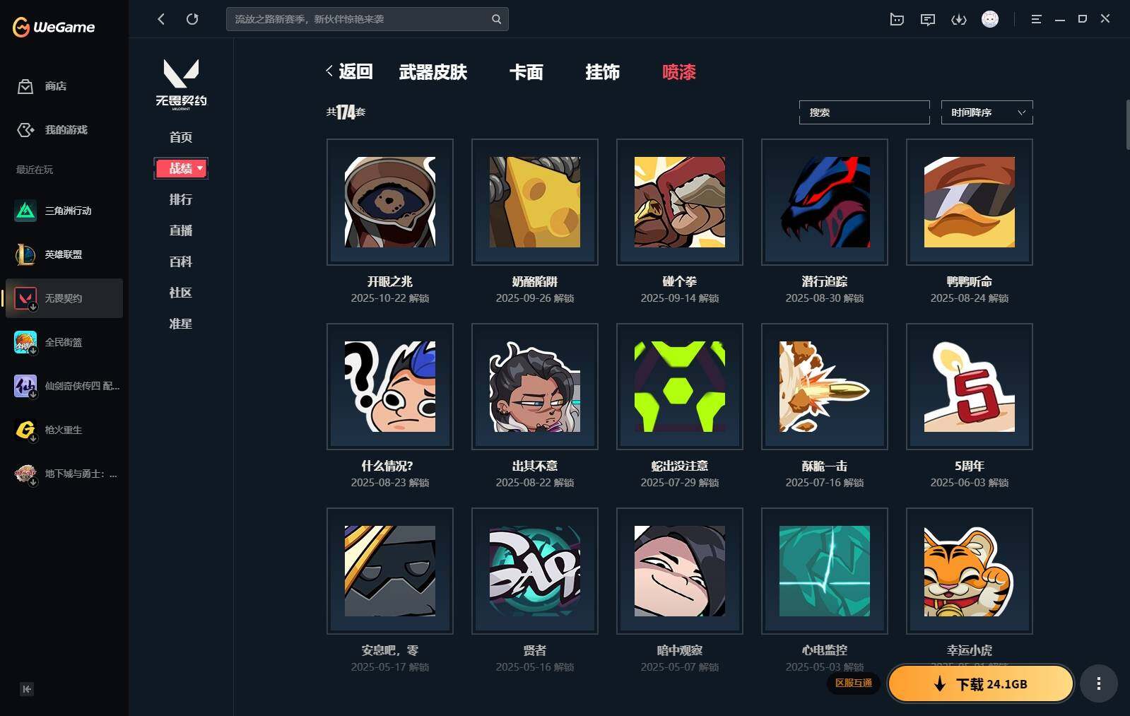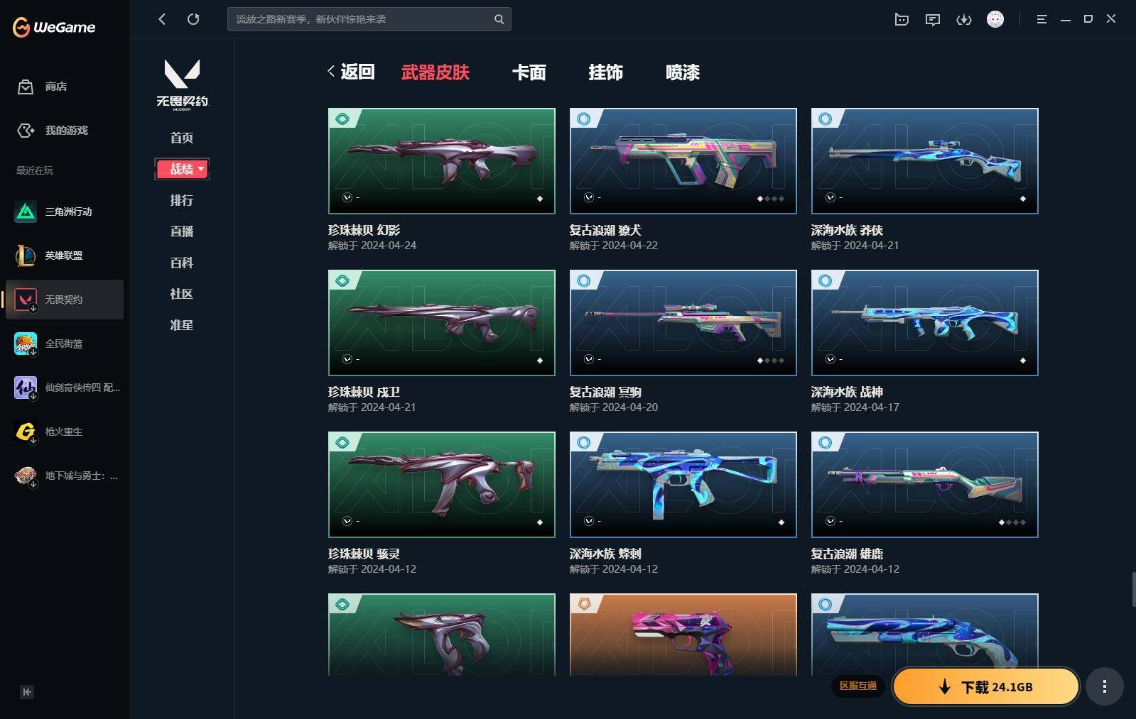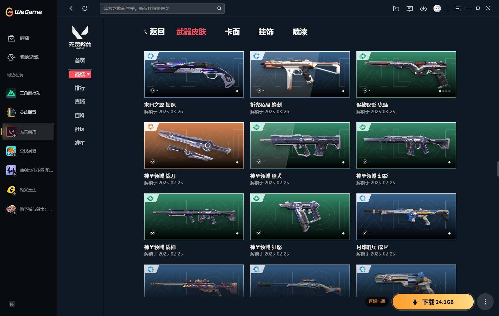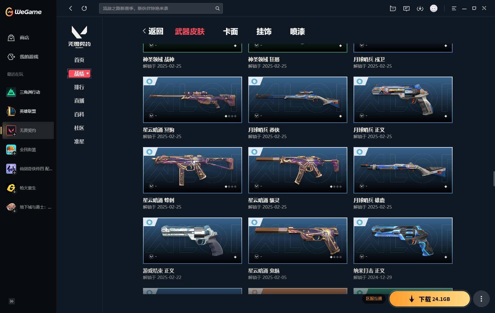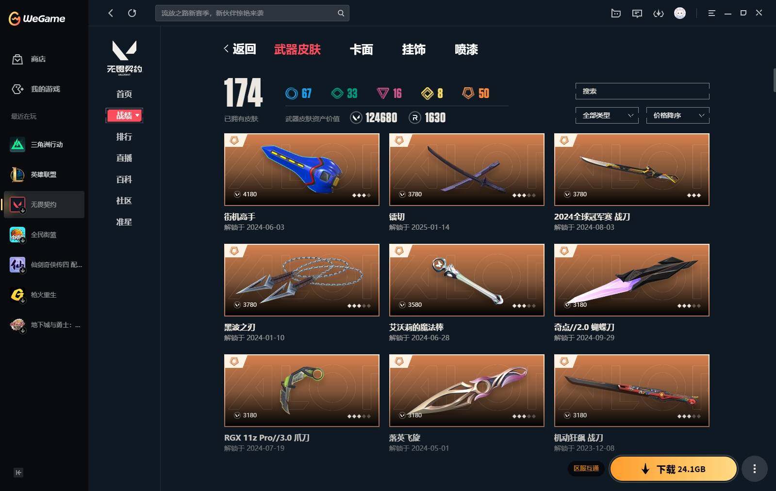 【440】【套装】:2024全球冠军赛套装,源能者娱乐系统套装,艾沃莉的梦之翼套装,塑水宗套装,千灵华绽套装,奇点//2.0套装,机动狂飙套装,vctxedg 队伍套装,回火礼包:奇点套装,般若假面套装 【英雄】:幻棱,炼狱,维斯,暮蝶,钛狐,壹决,铁臂,捷风,雷兹,幽影,不死鸟,贤者,猎枭,蝰蛇,零,芮娜,奇乐,尚勃勒,霓虹,斯凯,夜露,星礈,k/o,海神,盖可,黑梦,钢锁 【近战 武器】:近战武器-2024全球冠军赛 战刀,近战武器-侦察力量 蝴蝶刀,近战武器-剥皮小刀,近战武器-奇点//2.0 蝴蝶刀,近战武器-rgx 11z pro//3.0 爪刀,近战武器-黑波之刃,近战武器-落英飞旋,近战武器-镭切,近战武器-艾沃莉的魔法棒,近战武器-澄湖潋滟,近战武器-珍珠棘贝 短剑,近战武器-般若长牙,近战武器-流星兵团 短剑,近战武器-超能偶像 应援棒,近战武器-超限闪存 匕首,近战武器-机动狂飙 战刀,近战武器-街机高手,近战武器-沙尘幻旅 匕首,近战武器-神罚 军刀,近战武器-雪季巡游,近战武器-诡秘蛇影 军刀,近战武器-神圣领域 战刀 【狂徒】:狂徒-艾沃莉的梦之翼,狂徒-光明哨兵,狂徒-归零者,狂徒-混沌序曲,狂徒-机动狂飙,狂徒-奇点//2.0,狂徒-塑水宗,狂徒-掠影,狂徒-盖亚的复仇,狂徒-海洋之星,狂徒-紫阙金琅,狂徒-超能偶像,狂徒-流星兵团,狂徒-沙尘幻旅,狂徒-诡秘蛇影 【幻影】:幻影-源能者娱乐系统,幻影-2024全球冠军赛,幻影-砰砰x特攻队,幻影-奇点,幻影-千灵华绽,幻影-般若假面,幻影-赛博迷城,幻影-侦察力量,幻影-超限闪存,幻影-珍珠棘贝,幻影-神圣领域,幻影-聚合之力,幻影-末日之翼 【戍卫】:戍卫-般若假面,戍卫-天界神兵,戍卫-紫阙金琅,戍卫-超能偶像,戍卫-珍珠棘贝,戍卫-浮光跃金,戍卫-萌彩剪影,戍卫-战术熊与伙伴们,戍卫-月球哨兵,戍卫-折光棱晶 【獠犬】:獠犬-源能者娱乐系统,獠犬-全息波普,獠犬-神圣领域,獠犬-采蜜小蜂队,獠犬-复古浪潮,獠犬-胡桃狂想,獠犬-模拟赫兹 【冥驹】:冥驹-源能者娱乐系统,冥驹-归零者,冥驹-千灵华绽,冥驹-复古浪潮,冥驹-胡桃狂想,冥驹-模拟赫兹,冥驹-星云暗涌 【飞将】:飞将-塑水宗,飞将-天界神兵,飞将-沙尘幻旅,飞将-聚合之力,飞将-战术熊与伙伴们,飞将-末日之翼 【莽侠】:莽侠-超限闪存,莽侠-诡秘蛇影,莽侠-深海水族,莽侠-纤云弄巧,莽侠-月球哨兵 【战神】:战神-神圣领域,战神-采蜜小蜂队,战神-浮光跃金,战神-萌彩剪影,战神-深海水族 【奥丁】:奥丁-艾沃莉的梦之翼,奥丁-全息波普,奥丁-流星兵团,奥丁-神罚,奥丁-末日之翼 【判官】:判官-千灵华绽,判官-超能偶像,判官-诡秘蛇影,判官-采蜜小蜂队,判官-萌彩剪影 【雄鹿】:雄鹿-机动狂飙,雄鹿-般若假面,雄鹿-复古浪潮,雄鹿-模拟赫兹,雄鹿-月球哨兵 【骇灵】:骇灵-艾沃莉的梦之翼,骇灵-奇点,骇灵-塑水宗,骇灵-流星兵团,骇灵-沙尘幻旅,骇灵-珍珠棘贝,骇灵-浮光跃金,骇灵-光导纤维,骇灵-星云暗涌 【蜂刺】:蜂刺-机动狂飙,蜂刺-超限闪存,蜂刺-胡桃狂想,蜂刺-聚合之力,蜂刺-深海水族,蜂刺-纤云弄巧,蜂刺-战术小伙伴,蜂刺-星云暗涌,蜂刺-折光棱晶 【标配】:标配-紫阙金琅,标配-超能偶像,标配-浮光跃金,标配-钢铁意志,标配-光导纤维,标配-决意,标配-战术熊与伙伴们,标配-最终庇护,标配-折光棱晶 【vct手呛】:标配-vct x edg,标配-vct x prx,标配-vct25 x blg 【正义】:正义-机动狂飙,正义-奇点,正义-千灵华绽,正义-塑水宗,正义-离子武器,正义-超限闪存,正义-沙尘幻旅,正义-复古浪潮,正义-纳米打击,正义-纤云弄巧,正义-游戏结束,正义-月球哨兵 【鬼魅】:鬼魅-艾沃莉的梦之翼,鬼魅-源能者娱乐系统,鬼魅-奇点//2.0,鬼魅-天界神兵,鬼魅-流星兵团,鬼魅-诡秘蛇影,鬼魅-采蜜小蜂队,鬼魅-胡桃狂想,鬼魅-模拟赫兹,鬼魅-扑棱扑棱,鬼魅-星云暗涌 【狂怒】:狂怒-钢轨卫士,狂怒-珍珠棘贝,狂怒-神圣领域,狂怒-聚合之力,狂怒-萌彩剪影,狂怒-猛袭,狂怒-战术熊与伙伴们 【短炮】:短炮-般若假面,短炮-钢轨卫士,短炮-好搭档,短炮-深海水族,短炮-纤云弄巧,短炮-末日之翼 【卡面】:终章:激斗汉堡 卡面,进入射程 卡面,《双城之战》拥抱 卡面,精灵大战 卡面,欢迎来到底城 卡面,南瓜盛典 卡面,唱片的故事 卡面,钢弓与箭弦 卡面,无畏契约:暮蝶 卡面,排除故障 卡面,奇点//2.0 卡面,战术桌游 卡面,悠享食光 卡面,修车达人 卡面,热舞环节 卡面,模拟赫兹 卡面,浮光跃金 卡面,超限闪存 卡面,维斯工牌 卡面,正义的化身 卡面,终章:生意人麦宝 卡面,铁之华 卡面,2024全球冠军赛 卡面,失而复得 卡面,时间到 卡面,最高舞台 卡面,复活专家 卡面,归乡 // 蝰蛇 卡面,超能偶像 卡面,生意人麦宝 卡面,音熊登场 卡面,声感陷阱设计图 卡面,红鳞松叶 卡面,霓帧牛蛙 卡面,钢锁工牌 卡面,战术小伙伴的夏日 卡面,采蜜小蜂队 卡面,聚合之力 卡面,梦幻奶茶 卡面,终章:打造专属狂徒 卡面,趁热吃 卡面,西装暴徒 卡面,失控边缘 卡面,哨卫者之领域 卡面,暮蝶工牌 卡面,战术熊与伙伴们 卡面,源能反应 卡面,流星兵团 卡面,纤云弄巧 卡面,暂别喧嚣 卡面,打造专属狂徒 卡面,零点嗅探设计图 卡面,表象之下 卡面,虹吸式咖啡壶 卡面,源能者美容 卡面,脚踝终结者 卡面 ,夜班 卡面,瓦娃脸雪糕 卡面 ,沙雕爆能器 卡面,深海水族 卡面,珍珠棘贝 卡面,复古浪潮 卡面,盖可工牌 卡面,清除名单 卡面,《双城之战》金克丝 卡面,没有什么能逃过我的眼睛 卡面,光导纤维 卡面,战术小伙伴 卡面,钢轨卫士 