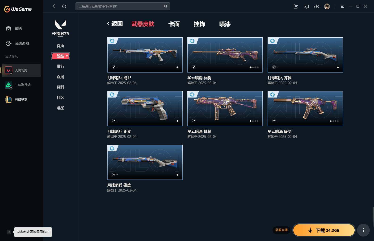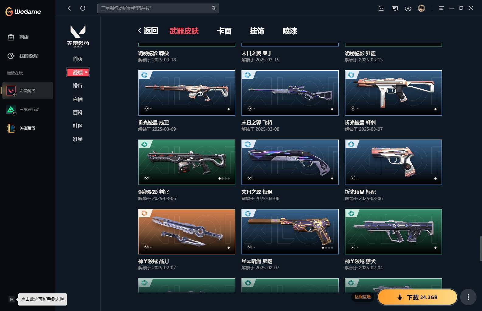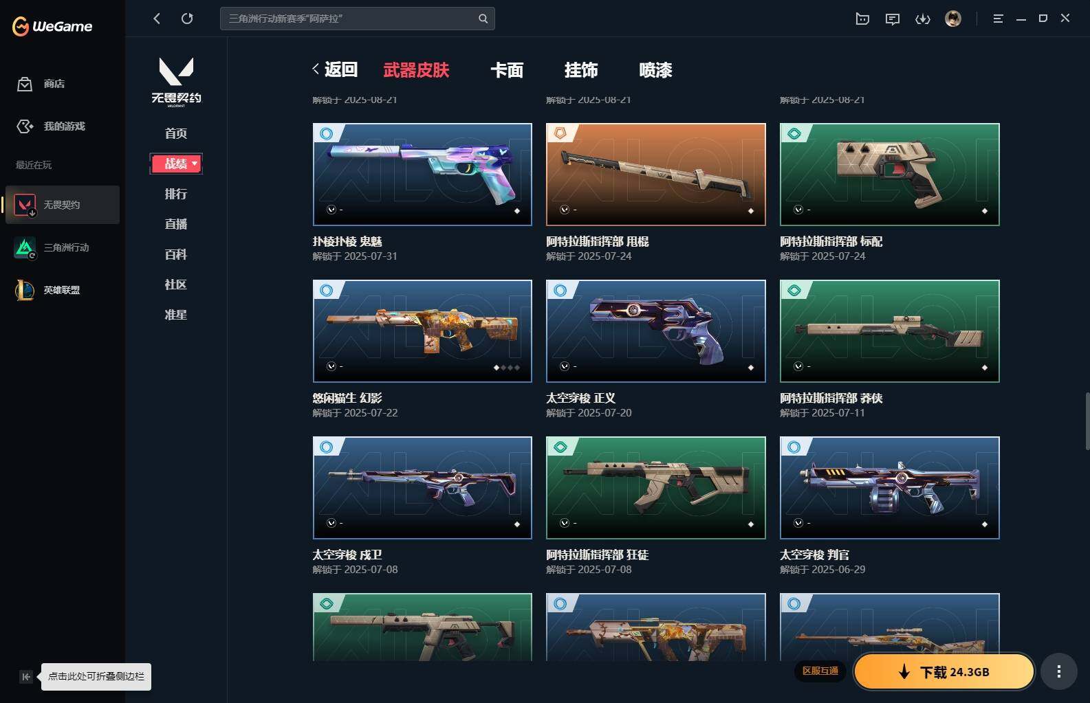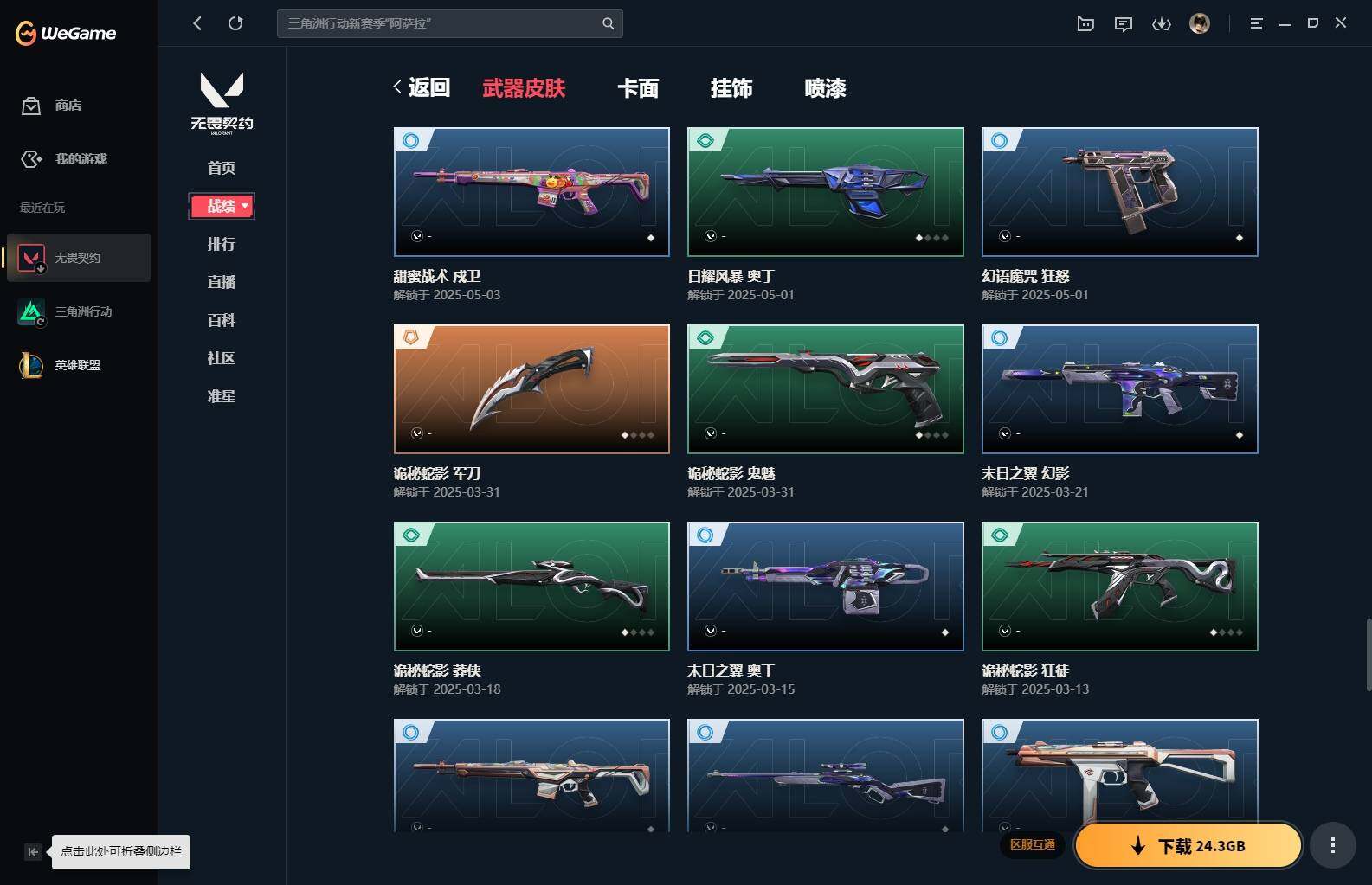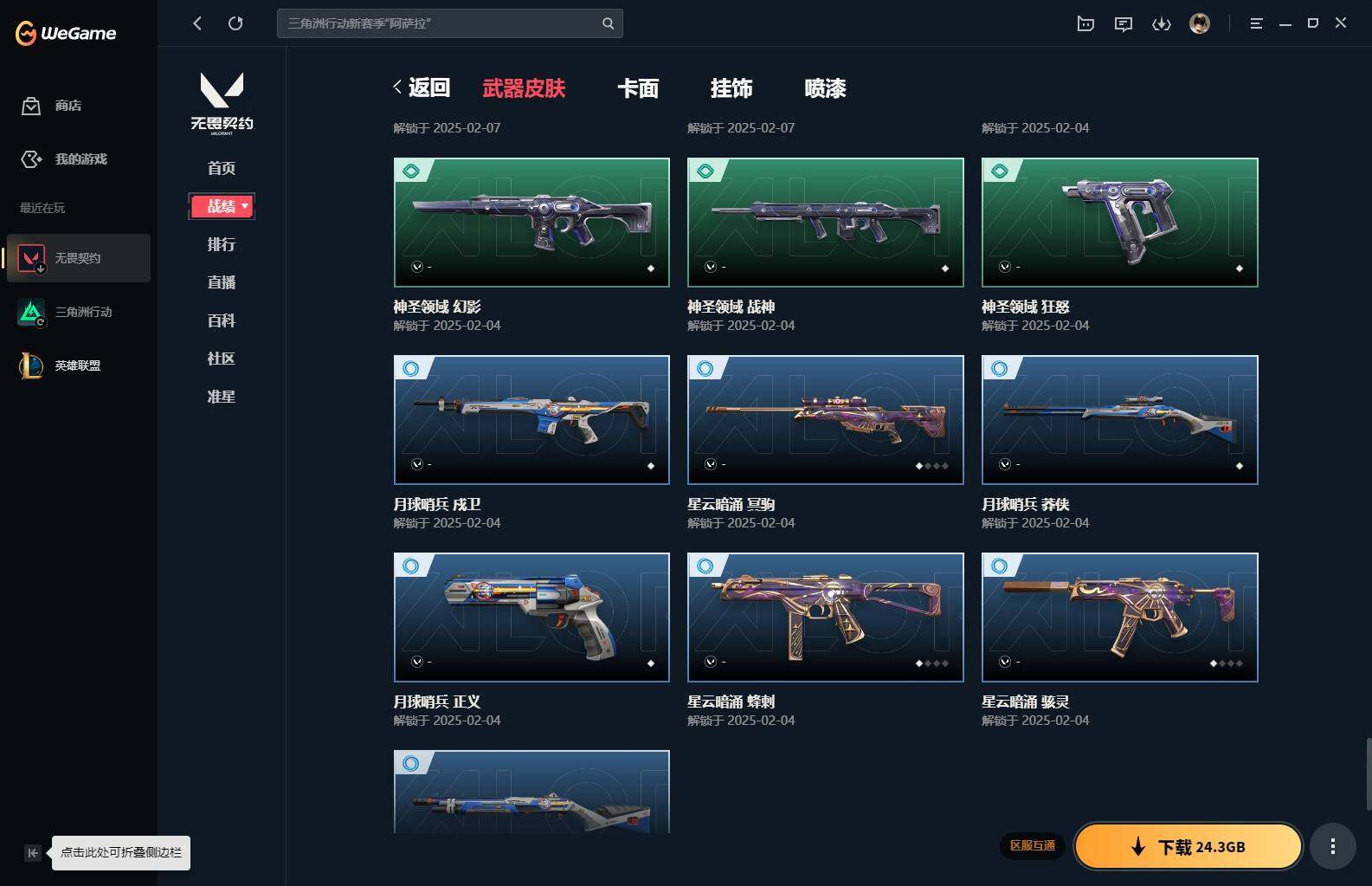 【85】xl15119 【套装】:滋滋x特攻队套装,vct 2025 赛季套装 【英雄】:幻棱,炼狱,维斯,暮蝶,钛狐,壹决,铁臂,捷风,幽影,不死鸟,贤者,猎枭,零,芮娜,奇乐,尚勃勒,霓虹,斯凯,夜露,k/o,海神,盖可,黑梦,钢锁 【近战 武器】:近战武器-魔术火花,近战武器-嘟昂嘟昂超弹力水球拳套,近战武器-vct 2025 爪刀,近战武器-黑波之刃,近战武器-落英飞旋,近战武器-威龙之刃,近战武器-机动狂飙 战刀,近战武器-诡秘蛇影 军刀,近战武器-神圣领域 战刀,近战武器-阿特拉斯指挥部 甩棍,近战武器-星际猎兵 短剑,近战武器-魔术火花 【狂徒】:狂徒-艾沃莉的梦之翼,狂徒-滋滋x特攻队,狂徒-掠影,狂徒-盖亚的复仇,狂徒-紫阙金琅,狂徒-离子武器//2.0,狂徒-诡秘蛇影 【幻影】:幻影-千灵华绽,幻影-虚空遗器,幻影-电音光谱,幻影-末日泡泡,幻影-侦察力量,幻影-神圣领域,幻影-末日之翼,幻影-电音光谱 【戍卫】:戍卫-月球哨兵,戍卫-折光棱晶 【獠犬】:獠犬-神圣领域 【冥驹】:冥驹-滋滋x特攻队,冥驹-星云暗涌 【飞将】:飞将-末日之翼 【莽侠】:莽侠-诡秘蛇影,莽侠-月球哨兵 【战神】:战神-般若假面//2.0,战神-离子武器//2.0,战神-神圣领域 【奥丁】:奥丁-艾沃莉的梦之翼,奥丁-末日之翼 【判官】:判官-诡秘蛇影 【雄鹿】:雄鹿-月球哨兵 【骇灵】:骇灵-艾沃莉的梦之翼,骇灵-光明哨兵//2.0,骇灵-无限竞技,骇灵-星云暗涌 【蜂刺】:蜂刺-末日泡泡,蜂刺-星云暗涌,蜂刺-折光棱晶 【标配】:标配-光荣异象,标配-折光棱晶 【vct手呛】:标配-vct25 x blg 【正义】:正义-奇点,正义-西部未来,正义-月球哨兵 【鬼魅】:鬼魅-盖世英雄,鬼魅-诡秘蛇影,鬼魅-扑棱扑棱,鬼魅-星云暗涌 【狂怒】:狂怒-神圣领域 【短炮】:短炮-末日之翼 【卡面】:《双城之战》拥抱 卡面,精灵大战 卡面,欢迎来到底城 卡面,南瓜盛典 卡面,无畏契约:暮蝶 卡面,树懒大作战 卡面,红鳞松叶 卡面,clutch 卡面,梦幻奶茶 卡面,无畏契约go!第一卷:芮娜 卡面,无畏契约go!第一卷:零 卡面,化茧成蝶 卡面,《双城之战》金克丝 卡面,别冒尖 卡面,代号红色 卡面,新兵报到 卡面,v契约 卡面,无畏契约 卡面 【喷漆】:嘭! 喷漆,都算到了 喷漆,控场勿近 喷漆,伤心心 喷漆,捷风差距 喷漆,买装还是存钱 喷漆,胜利属于无畏契约 喷漆,glhf 喷漆,无畏契约 喷漆 【挂饰】:《双城之战》小蛋糕 挂饰,第九季//第三幕 纪念币 挂饰,薰衣草之心 挂饰,炼狱雪糕 挂饰,袖珍捷风 挂饰,z世代特饮 挂饰,天外飞客 挂饰,红鳞松叶 挂饰,《双城之战》魄罗 挂饰,无畏契约 纪念币 挂饰