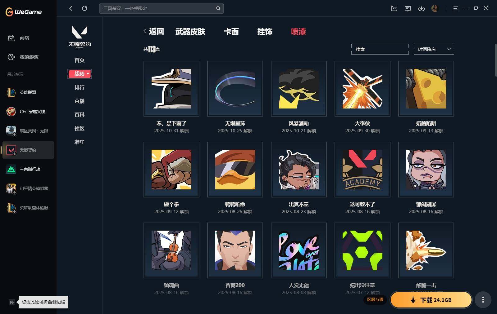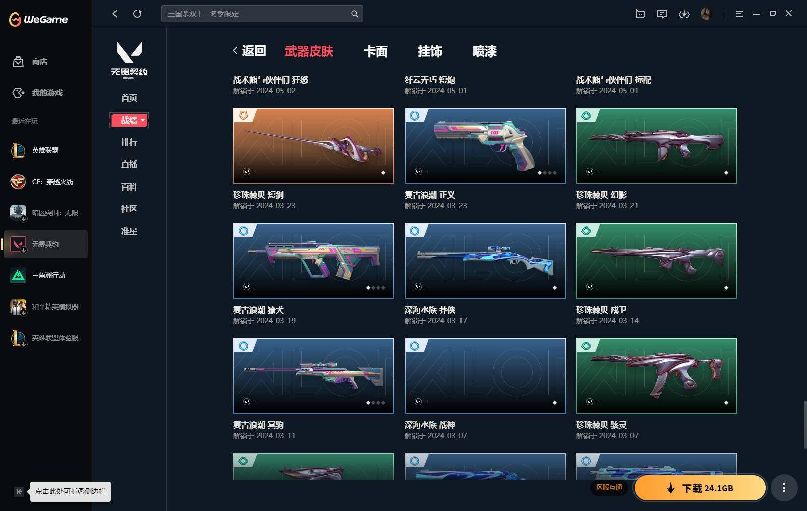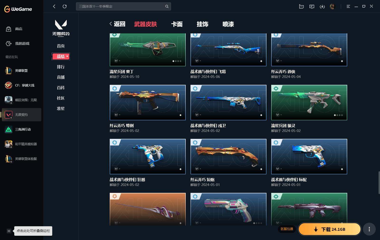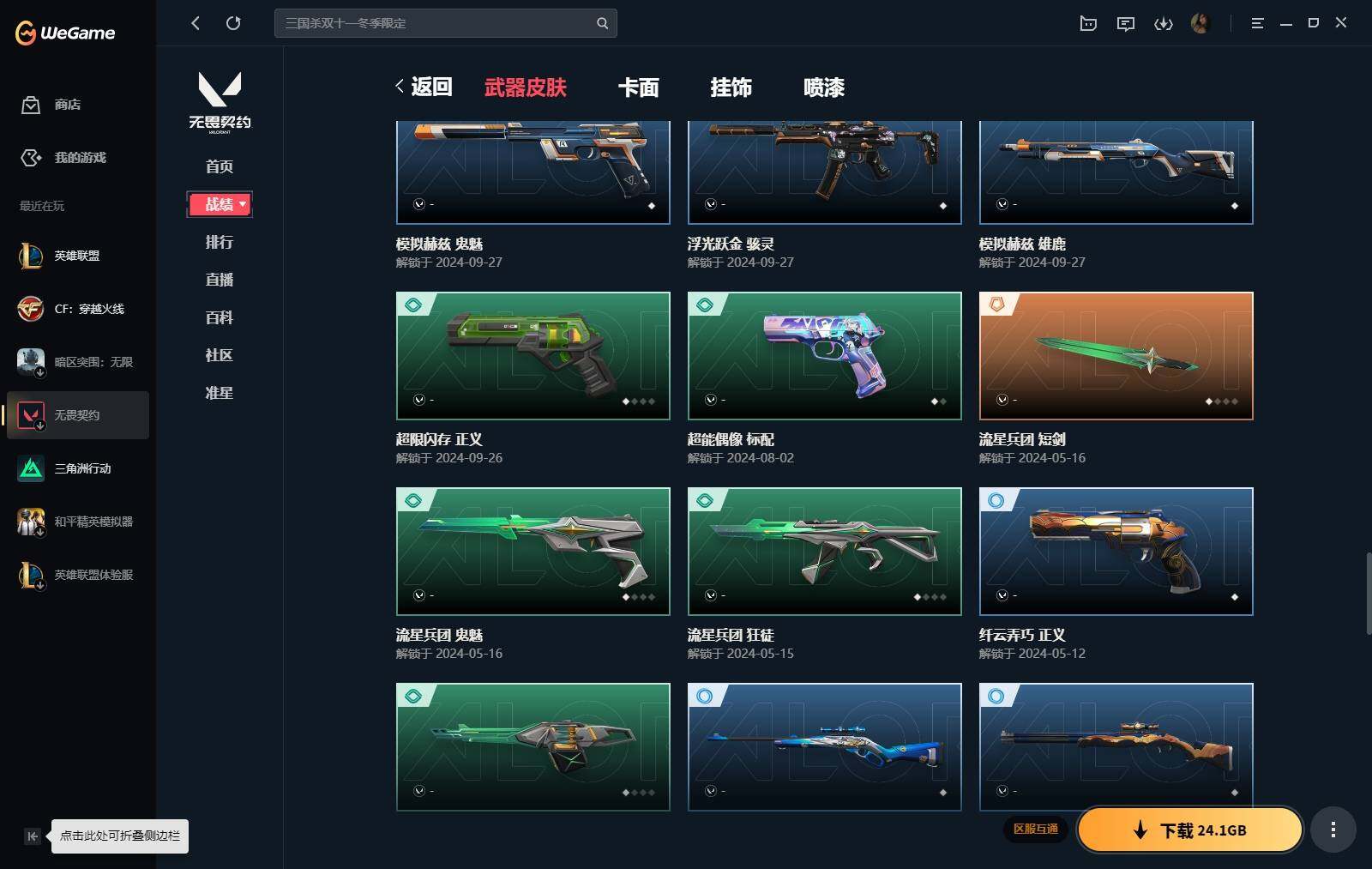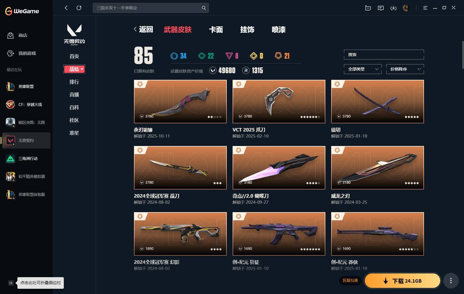 【6】【套装】:2024全球冠军赛套装,vct 2025 赛季套装,创·纪元套装 【英雄】:幻棱,炼狱,维斯,暮蝶,钛狐,壹决,铁臂,捷风,雷兹,幽影,不死鸟,贤者,猎枭,蝰蛇,零,芮娜,奇乐,尚勃勒,霓虹,斯凯,夜露,星礈,k/o,海神,盖可,黑梦,钢锁 【近战 武器】:近战武器-2024全球冠军赛 战刀,近战武器-奇点//2.0 蝴蝶刀,近战武器-vct 2025 爪刀,近战武器-镭切,近战武器-威龙之刃,近战武器-珍珠棘贝 短剑,近战武器-流星兵团 短剑,近战武器-超限闪存 匕首,近战武器-硅晶刻刀,近战武器-夜刃诡镰,近战武器-神圣领域 战刀 【狂徒】:狂徒-混沌序曲,狂徒-塑水宗,狂徒-创·纪元,狂徒-堕天遗武,狂徒-掠影,狂徒-盖亚的复仇,狂徒-日冕雄师,狂徒-耀鳞威龙,狂徒-流星兵团 【幻影】:幻影-2024全球冠军赛,幻影-千灵华绽,幻影-侦察力量,幻影-超限闪存,幻影-珍珠棘贝,幻影-神圣领域 【戍卫】:戍卫-天界神兵,戍卫-珍珠棘贝,戍卫-浮光跃金,戍卫-战术熊与伙伴们,戍卫-月球哨兵 【獠犬】:獠犬-神圣领域,獠犬-复古浪潮,獠犬-模拟赫兹 【冥驹】:冥驹-归零者,冥驹-堕天遗武,冥驹-复古浪潮,冥驹-模拟赫兹,冥驹-星云暗涌 【飞将】:飞将-战术熊与伙伴们 【莽侠】:莽侠-创·纪元,莽侠-超限闪存,莽侠-深海水族,莽侠-纤云弄巧,莽侠-月球哨兵 【战神】:战神-神圣领域,战神-浮光跃金,战神-深海水族 【奥丁】:奥丁-流星兵团 【雄鹿】:雄鹿-复古浪潮,雄鹿-模拟赫兹,雄鹿-月球哨兵 【骇灵】:骇灵-创·纪元,骇灵-流星兵团,骇灵-珍珠棘贝,骇灵-无限竞技,骇灵-浮光跃金,骇灵-星云暗涌 【蜂刺】:蜂刺-超限闪存,蜂刺-深海水族,蜂刺-纤云弄巧,蜂刺-星云暗涌 【标配】:标配-超能偶像,标配-浮光跃金,标配-战术熊与伙伴们 【正义】:正义-奇点,正义-创·纪元,正义-超限闪存,正义-复古浪潮,正义-纳米打击,正义-纤云弄巧,正义-游戏结束,正义-月球哨兵 【鬼魅】:鬼魅-流星兵团,鬼魅-诡秘蛇影,鬼魅-模拟赫兹,鬼魅-星云暗涌 【狂怒】:狂怒-珍珠棘贝,狂怒-神圣领域,狂怒-战术熊与伙伴们 【短炮】:短炮-深海水族,短炮-纤云弄巧 【卡面】:终章:激斗汉堡 卡面,进入射程 卡面,银弹猎手 卡面,《双城之战》拥抱 卡面,精灵大战 卡面,欢迎来到底城 卡面,南瓜盛典 卡面,唱片的故事 卡面,钢弓与箭弦 卡面,排除故障 卡面,战术桌游 卡面,悠享食光 卡面,修车达人 卡面,模拟赫兹 卡面,浮光跃金 卡面,超限闪存 卡面,维斯工牌 卡面,正义的化身 卡面,终章:生意人麦宝 卡面,铁之华 卡面,2024全球冠军赛 卡面,时间到 卡面,最高舞台 卡面,音熊登场 卡面,声感陷阱设计图 卡面,clutch 卡面,梦幻奶茶 卡面,终章:打造专属狂徒 卡面,趁热吃 卡面,西装暴徒 卡面,失控边缘 卡面,哨卫者之领域 卡面,暮蝶工牌 卡面,战术熊与伙伴们 卡面,源能反应 卡面,流星兵团 卡面,纤云弄巧 卡面,暂别喧嚣 卡面,打造专属狂徒 卡面,零点嗅探设计图 卡面,终章:瓦娃脸雪糕 卡面,表象之下 卡面,虹吸式咖啡壶 卡面,源能者美容 卡面,脚踝终结者 卡面 ,夜班 卡面,瓦娃脸雪糕 卡面 ,沙雕爆能器 卡面,无畏契约go!第一卷:芮娜 卡面,深海水族 卡面,珍珠棘贝 卡面,复古浪潮 卡面,盖可工牌 卡面,清除名单 卡面,无畏契约go!第一卷:零 卡面,化茧成蝶 卡面,势不可挡//盖可 卡面,暗呛 卡面,代号红色 卡面,新兵报到 卡面,v契约 卡面,无畏契约 卡面,809特遣队 卡面 【喷漆】:嗨宝南瓜灯 喷漆,嘭! 喷漆,都算到了 喷漆,控场勿近 喷漆,皮蛋呼呼 喷漆,像素星礈 喷漆,图谋不轨的零 喷漆,小丑猫 喷漆,模拟赫兹 喷漆,高丽风情小熊 喷漆,蹲到一个 喷漆,全力集中 喷漆,超限闪存 喷漆,rua一下 喷漆,熊抱 喷漆,高丽风情小虎 喷漆,记在小本本 喷漆,防弹企鹅 喷漆,高丽风情小蛙 喷漆,2024全球冠军赛 喷漆,超级粉丝 喷漆,捷风差距 喷漆,惊声尖叫 喷漆,拼一呛 喷漆,加油!加油! 喷漆,开心到爆炸 喷漆,皮蛋萌舞 喷漆,我觉得不行 喷漆,头号粉丝 喷漆,吸一口快乐 喷漆,永远的答案 喷漆,再来一次? 喷漆,别挡我的路! 喷漆,我的刀呢? 喷漆,当然可以 喷漆,流星兵团 喷漆,战术熊与伙伴们 喷漆,禁止喷漆 喷漆,纤云弄巧 喷漆,情绪控制 喷漆,哨卫滑步 喷漆,倒吸一口凉气 喷漆,uwu 喷漆,新潮流 喷漆,逮到一个 喷漆,一个人的孤岛 喷漆,双人比心 喷漆,不予置评 喷漆,三熊合一 喷漆,要喝完噢! 喷漆,双击点赞 喷漆,珍珠棘贝 喷漆,深海水族 喷漆,禁止标配 喷漆 ,铁臂尴尬 喷漆,买装还是存钱 喷漆,胜利属于无畏契约 喷漆,glhf 喷漆,无畏契约 喷漆 【挂饰】:终章:猫猫木乃伊 挂饰,悠闲鸡块 挂饰,伞绳 挂饰,《双城之战》小蛋糕 挂饰,第九季//第三幕 纪念币 挂饰,拳击战术熊 挂饰,工具腰带 挂饰,暗藏猫腻 挂饰,高丽风情 挂饰,鱼骨头 挂饰,熔岩灯 挂饰,超限闪存 挂饰,迷你k/o 挂饰,模拟赫兹 挂饰,第九季//第二幕 纪念币 挂饰,终章:这瓜保熟 挂饰,2024全球冠军赛 挂饰,糖葫芦 挂饰,袖珍捷风 挂饰,迷你浓缩 挂饰,第九季//第一幕 纪念币 挂饰,终章:迷你机甲 挂饰,犯困的布鲁诺 挂饰,战术河童 挂饰,招财猫熊 挂饰,迷你机甲 挂饰,荧光棒 挂饰,章鱼烧先生 挂饰,流星兵团 挂饰,云开见日 挂饰,第八季//第三幕 纪念币 挂饰,终章:扭结饼干 挂饰 ,战术抓娃娃:阿丹 挂饰 ,瓶中信 挂饰,复古浪潮 挂饰,深海水母 挂饰,传世莲华 挂饰,扭结饼干 挂饰 ,珍珠棘贝 挂饰,深海水族 挂饰 ,第八季//第二幕 纪念币 挂饰 ,天外飞客 挂饰,红鳞松叶 挂饰,第八季
