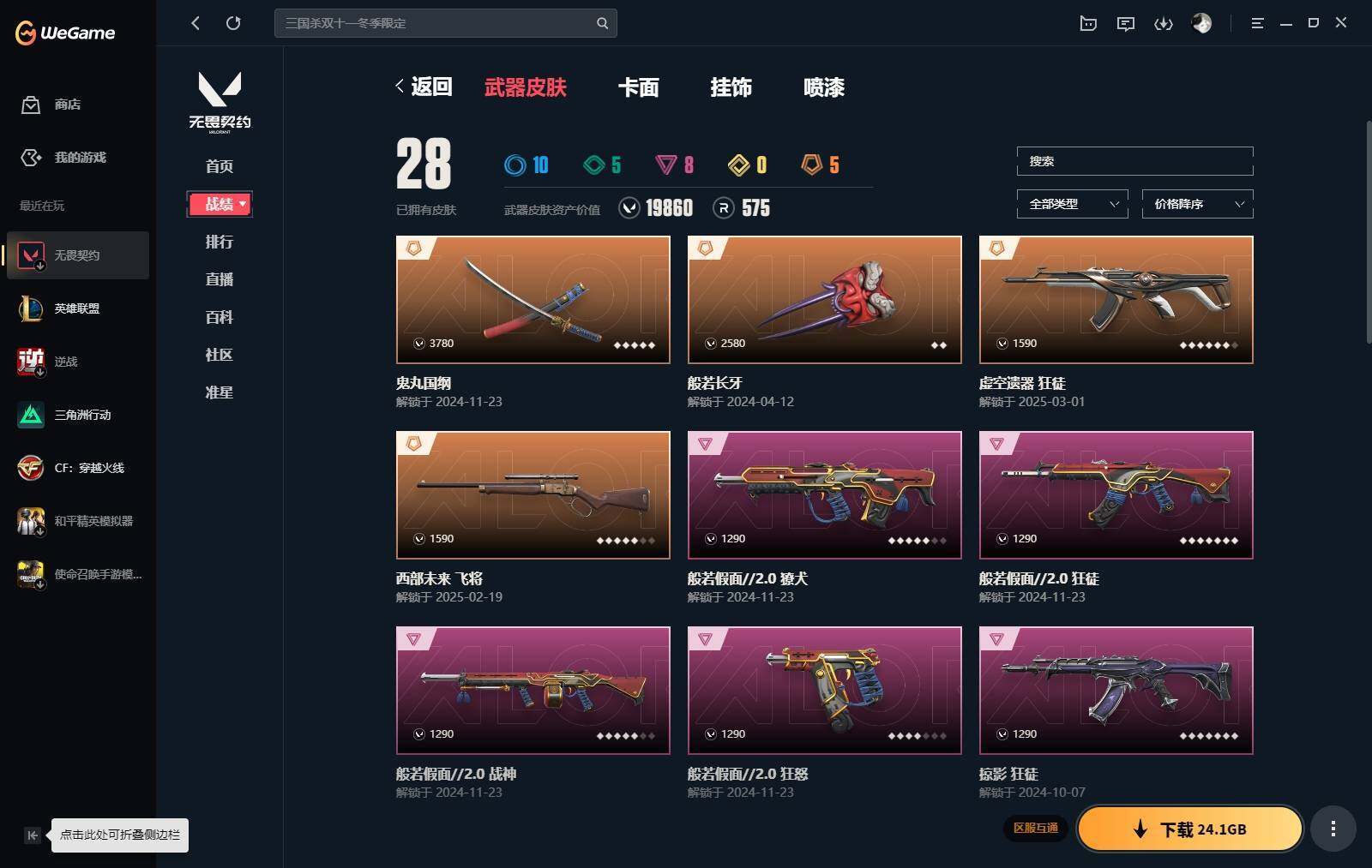 【4】xl 【套装】:般若假面//2.0套装 【英雄】:幻棱,炼狱,维斯,暮蝶,钛狐,壹决,捷风,雷兹,幽影,不死鸟,贤者,猎枭,芮娜,奇乐,尚勃勒,霓虹,斯凯,夜露,k/o,海神 【近战 武器】:近战武器-鬼丸国纲,近战武器-般若长牙,近战武器-神圣领域 战刀 【狂徒】:狂徒-虚空遗器,狂徒-般若假面//2.0,狂徒-堕天遗武,狂徒-掠影,狂徒-紫阙金琅 【幻影】:幻影-神圣领域 【戍卫】:戍卫-月球哨兵 【獠犬】:獠犬-般若假面//2.0,獠犬-神圣领域 【冥驹】:冥驹-星云暗涌 【飞将】:飞将-西部未来 【莽侠】:莽侠-月球哨兵 【战神】:战神-般若假面//2.0,战神-神圣领域 【雄鹿】:雄鹿-月球哨兵 【骇灵】:骇灵-星云暗涌 【蜂刺】:蜂刺-星云暗涌 【正义】:正义-离子武器,正义-纳米打击,正义-月球哨兵 【鬼魅】:鬼魅-流星兵团,鬼魅-灵魂消声者,鬼魅-星云暗涌 【狂怒】:狂怒-般若假面//2.0,狂怒-神圣领域 【卡面】:终章:激斗汉堡 卡面,进入射程 卡面,《双城之战》拥抱 卡面,精灵大战 卡面,欢迎来到底城 卡面,南瓜盛典 卡面,修车达人 卡面,正义的化身 卡面,时间到 卡面,最高舞台 卡面,声感陷阱设计图 卡面,梦幻奶茶 卡面,趁热吃 卡面,源能反应 卡面,零点嗅探设计图 卡面,无畏契约:蝰蛇 卡面,沙雕爆能器 卡面,无畏契约go!第一卷:芮娜 卡面,清除名单 卡面,无畏契约go!第一卷:零 卡面,龍记 卡面,完美调谐 卡面 ,暗呛 卡面,钢锁vs盖可 卡面,别冒尖 卡面,夯实根基 卡面,热烈欢迎 卡面,铁臂设计图 卡面,代号红色 卡面,冰淇淋店 卡面,新兵报到 卡面,友军火力 卡面,v契约 卡面,无畏契约 卡面 【喷漆】:嗨宝南瓜灯 喷漆,嘭! 喷漆,都算到了 喷漆,控场勿近 喷漆,小丑猫 喷漆,熊抱 喷漆,超级粉丝 喷漆,捷风差距 喷漆,拼一呛 喷漆,我觉得不行 喷漆,我的刀呢? 喷漆,喜欢哪种毒? 喷漆,uwu 喷漆,新潮流 喷漆,双击点赞 喷漆,买装还是存钱 喷漆,醒狮贺春 喷漆,关门放狗 喷漆,蕊形灯 喷漆,凌空惊吓 喷漆,老铁困了 喷漆,口袋贤者 喷漆,胜利属于无畏契约 喷漆,glhf 喷漆,无畏契约 喷漆 【挂饰】:终章:猫猫木乃伊 挂饰,悠闲鸡块 挂饰,伞绳 挂饰,《双城之战》小蛋糕 挂饰,第九季//第三幕 纪念币 挂饰,工具腰带 挂饰,熔岩灯 挂饰,第九季//第二幕 纪念币 挂饰,薰衣草之心 挂饰,袖珍捷风 挂饰,迷你浓缩 挂饰,z世代特饮 挂饰,第九季//第一幕 纪念币 挂饰,战术河童 挂饰,荧光棒 挂饰,第八季//第三幕 纪念币 挂饰,传世莲华 挂饰,第八季//第二幕 纪念币 挂饰 ,天外飞客 挂饰,好运福爪 挂饰,瞄这里 挂饰,第八季//第一幕 纪念币 挂饰,第七季:青铜 挂饰,冬日絮语 挂饰,第七季//第三幕 纪念币 挂饰,幸运中国结 挂饰,第七季//第二幕 纪念币 挂饰,无畏契约 纪念币 挂饰