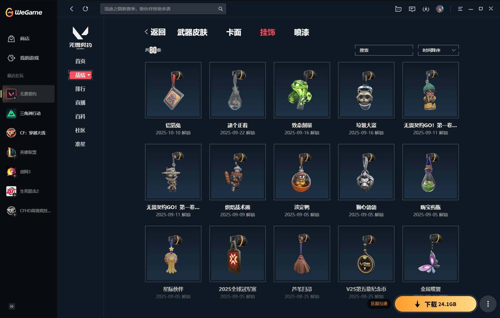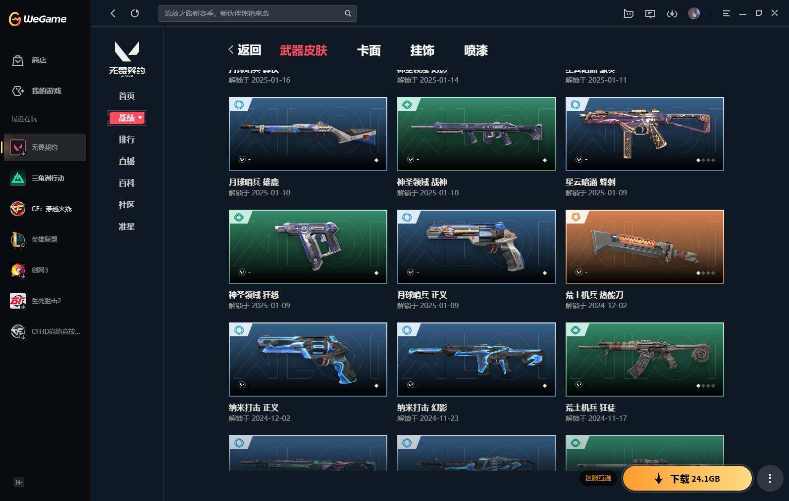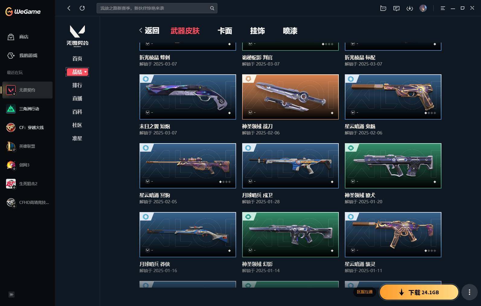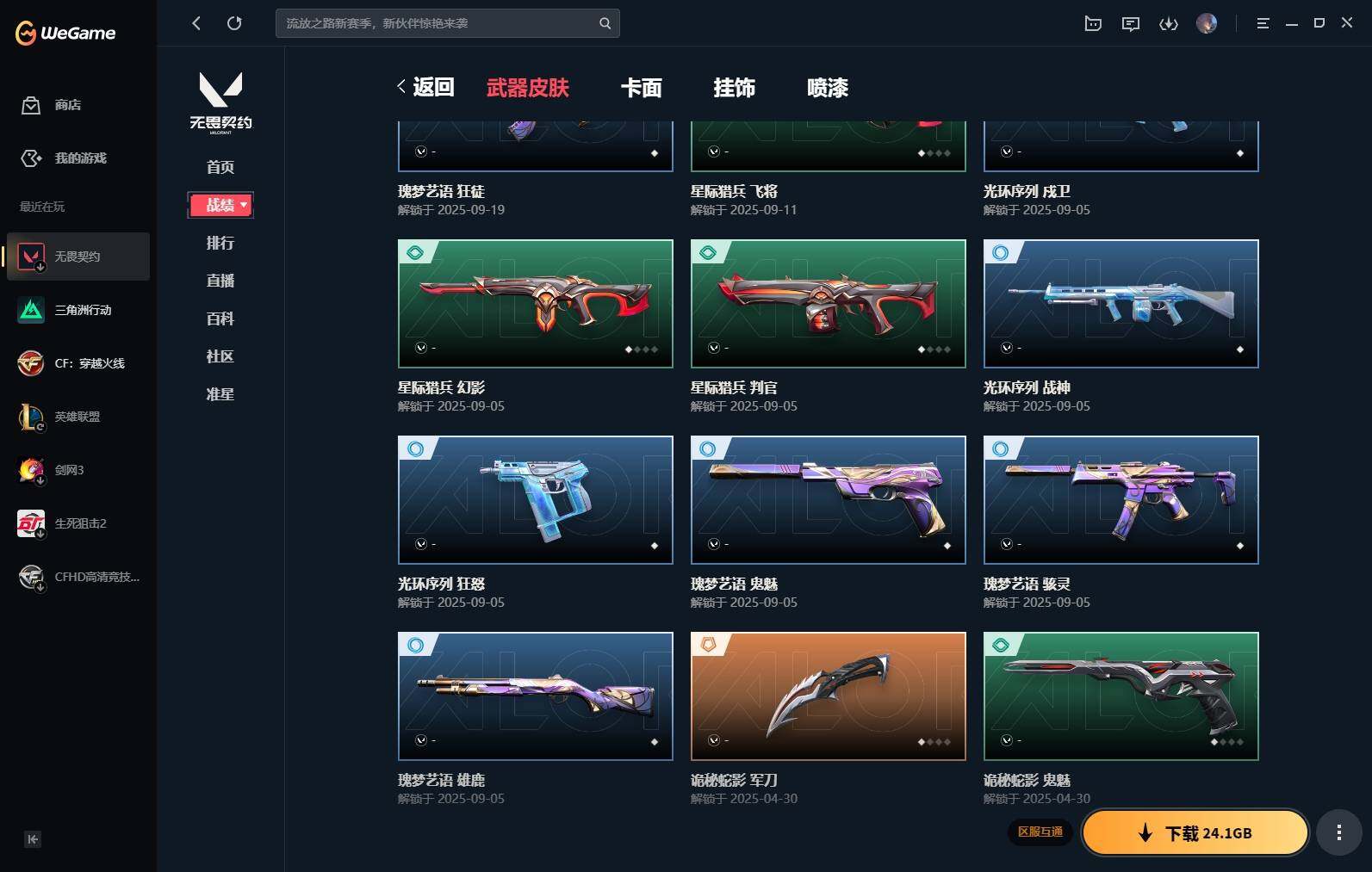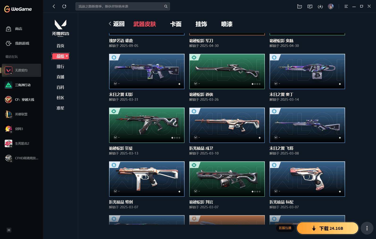 【491】【套装】:2025全球冠军赛套装,vct 2025 赛季套装,西部未来套装,奇点//2.0套装,般若假面//2.0套装 【英雄】:幻棱,炼狱,维斯,暮蝶,钛狐,壹决,铁臂,捷风,雷兹,幽影,不死鸟,贤者,猎枭,蝰蛇,零,芮娜,奇乐,尚勃勒,霓虹,斯凯,夜露,星礈,k/o,海神,盖可,黑梦,钢锁 【近战 武器】:近战武器-2025全球冠军赛 蝴蝶刀,近战武器-奇点//2.0 蝴蝶刀,近战武器-vct 2025 爪刀,近战武器-黑波之刃,近战武器-威龙之刃,近战武器-鬼丸国纲,近战武器-未来开拓者,近战武器-超限闪存 匕首,近战武器-荒土机兵 热能刀,近战武器-诡秘蛇影 军刀,近战武器-神圣领域 战刀 【狂徒】:狂徒-艾沃莉的梦之翼,狂徒-2025全球冠军赛,狂徒-洪荒怒焰,狂徒-奇点//2.0,狂徒-双城之战,狂徒-塑水宗,狂徒-般若假面//2.0,狂徒-堕天遗武,狂徒-盖亚的复仇,狂徒-荒土机兵,狂徒-诡秘蛇影 【幻影】:幻影-西部未来,幻影-末日泡泡,幻影-混沌序曲//2.0,幻影-侦察力量,幻影-超限闪存,幻影-神圣领域,幻影-纳米打击,幻影-末日之翼,幻影-西部未来 【戍卫】:戍卫-掠影,戍卫-浮光跃金,戍卫-逆冲蛮牛,戍卫-月球哨兵,戍卫-折光棱晶 【獠犬】:獠犬-般若假面//2.0,獠犬-神圣领域,獠犬-模拟赫兹,獠犬-逆冲蛮牛 【冥驹】:冥驹-千灵华绽,冥驹-荒土机兵,冥驹-模拟赫兹,冥驹-星云暗涌 【飞将】:飞将-西部未来,飞将-末日之翼 【莽侠】:莽侠-超限闪存,莽侠-诡秘蛇影,莽侠-月球哨兵 【战神】:战神-般若假面//2.0,战神-神圣领域,战神-浮光跃金 【奥丁】:奥丁-西部未来,奥丁-纳米打击,奥丁-末日之翼 【判官】:判官-诡秘蛇影,判官-纳米打击x 【雄鹿】:雄鹿-模拟赫兹,雄鹿-逆冲蛮牛,雄鹿-月球哨兵 【骇灵】:骇灵-荒土机兵,骇灵-无限竞技,骇灵-浮光跃金,骇灵-星云暗涌 【蜂刺】:蜂刺-超限闪存,蜂刺-星云暗涌,蜂刺-折光棱晶 【标配】:标配-紫阙金琅,标配-荒土机兵,标配-浮光跃金,标配-折光棱晶 【正义】:正义-千灵华绽,正义-西部未来,正义-超限闪存,正义-纳米打击,正义-月球哨兵 【鬼魅】:鬼魅-奇点//2.0,鬼魅-诡秘蛇影,鬼魅-模拟赫兹,鬼魅-星云暗涌 【狂怒】:狂怒-般若假面//2.0,狂怒-神圣领域,狂怒-逆冲蛮牛 【短炮】:短炮-末日之翼 【卡面】:终章:激斗汉堡 卡面,进入射程 卡面,分崩离析 卡面,纳米打击 卡面,抑制技术 卡面,激斗汉堡 卡面,瓦娃脸雪糕 p2 卡面,从黄昏到黎明 卡面,荒土机兵 卡面,银弹猎手 卡面,逆冲蛮牛 卡面,《双城之战》拥抱 卡面,精灵大战 卡面,欢迎来到底城 卡面,南瓜盛典 卡面,vct cn首冠 卡面,唱片的故事 卡面,钢弓与箭弦 卡面,无畏契约:暮蝶 卡面,排除故障 卡面,奇点//2.0 卡面,战术桌游 卡面,悠享食光 卡面,修车达人 卡面,热舞环节 卡面,模拟赫兹 卡面,浮光跃金 卡面,超限闪存 卡面,维斯工牌 卡面,正义的化身 卡面,归乡 // 蝰蛇 卡面,无畏契约go!第一卷:芮娜 卡面,无畏契约go!第一卷:零 卡面,《双城之战》金克丝 卡面,铁臂设计图 卡面,代号红色 卡面,新兵报到 卡面,v契约 卡面,无畏契约 卡面 【喷漆】:小小心意 喷漆,战“素”兔 喷漆,宇宙的指引 喷漆,请求重启 喷漆,逆冲蛮牛 喷漆,纳米打击 喷漆,鼻尖上的蝴蝶 喷漆,简笔画黯兽 喷漆,独守蝰腹 喷漆,他们将落荒而逃 喷漆,通缉:战术企鹅 喷漆,荒土机兵 喷漆,别挡我吃球! 喷漆,嗨宝南瓜灯 喷漆,嘭! 喷漆,都算到了 喷漆,控场勿近 喷漆,皮蛋呼呼 喷漆,像素星礈 喷漆,图谋不轨的零 喷漆,伤心心 喷漆,小丑猫 喷漆,模拟赫兹 喷漆,高丽风情小熊 喷漆,奇点//2.0 喷漆,蹲到一个 喷漆,全力集中 喷漆,超限闪存 喷漆,rua一下 喷漆,熊抱 喷漆,蛋糕还是爆能器? 喷漆,高丽风情小虎 喷漆,记在小本本 喷漆,防弹企鹅 喷漆,高丽风情小蛙 喷漆,双击点赞 喷漆,买装还是存钱 喷漆,胜利属于无畏契约 喷漆,glhf 喷漆,无畏契约 喷漆 【挂饰】:v25第三幕:超凡 挂饰,终章:猫猫木乃伊 挂饰,荒土机兵 挂饰,悠闲鸡块 挂饰,猫猫木乃伊 挂饰,水壶 挂饰,纳米打击 挂饰,逆冲蛮牛 挂饰,可爱糖糖 挂饰,伞绳 挂饰,《双城之战》小蛋糕 挂饰,第九季//第三幕 纪念币 挂饰,拳击战术熊 挂饰,工具腰带 挂饰,无畏契约go!第一卷 零 挂饰,暗藏猫腻 挂饰,高丽风情 挂饰,奇点//2.0 挂饰,鱼骨头 挂饰,熔岩灯 挂饰,超限闪存 挂饰,迷你k/o 挂饰,模拟赫兹 挂饰,第九季//第二幕 纪念币 挂饰,z世代特饮 挂饰,动力机箱 挂饰,天外飞客 挂饰,无畏契约 纪念币 挂饰