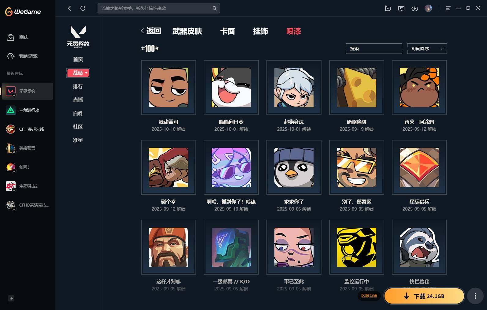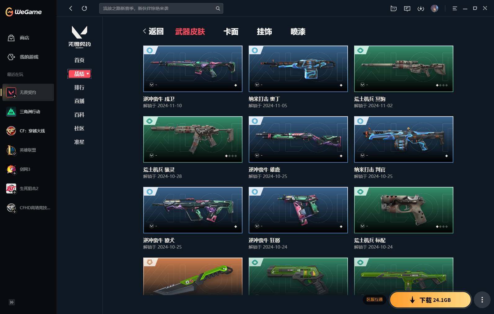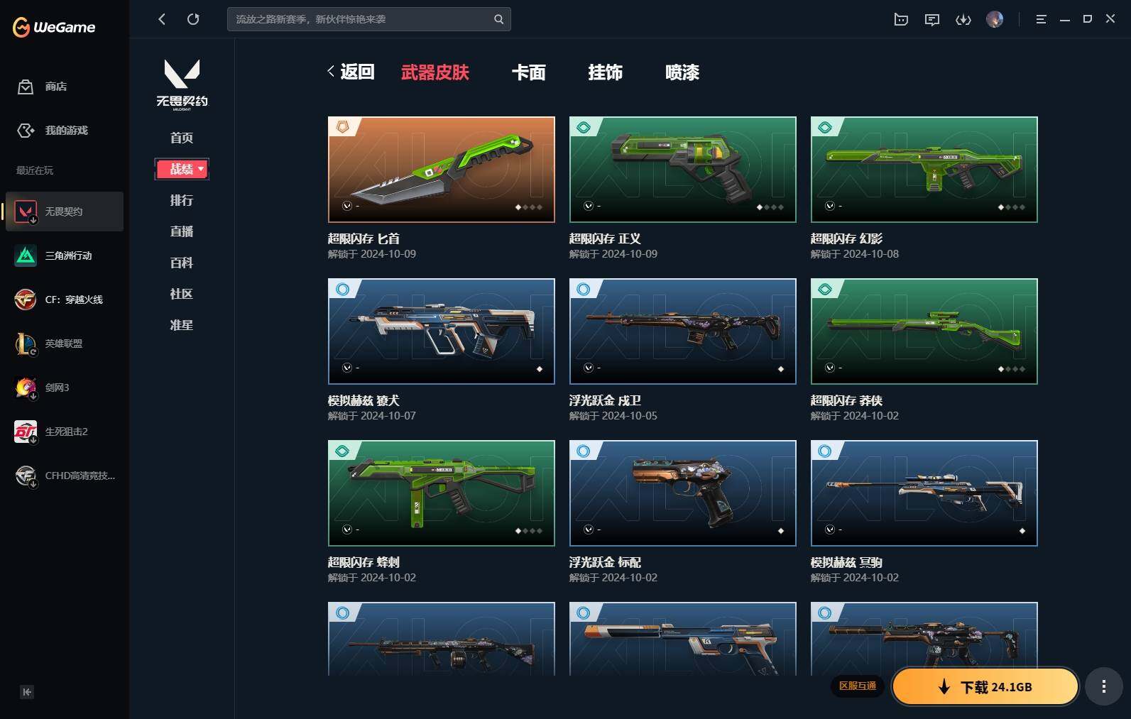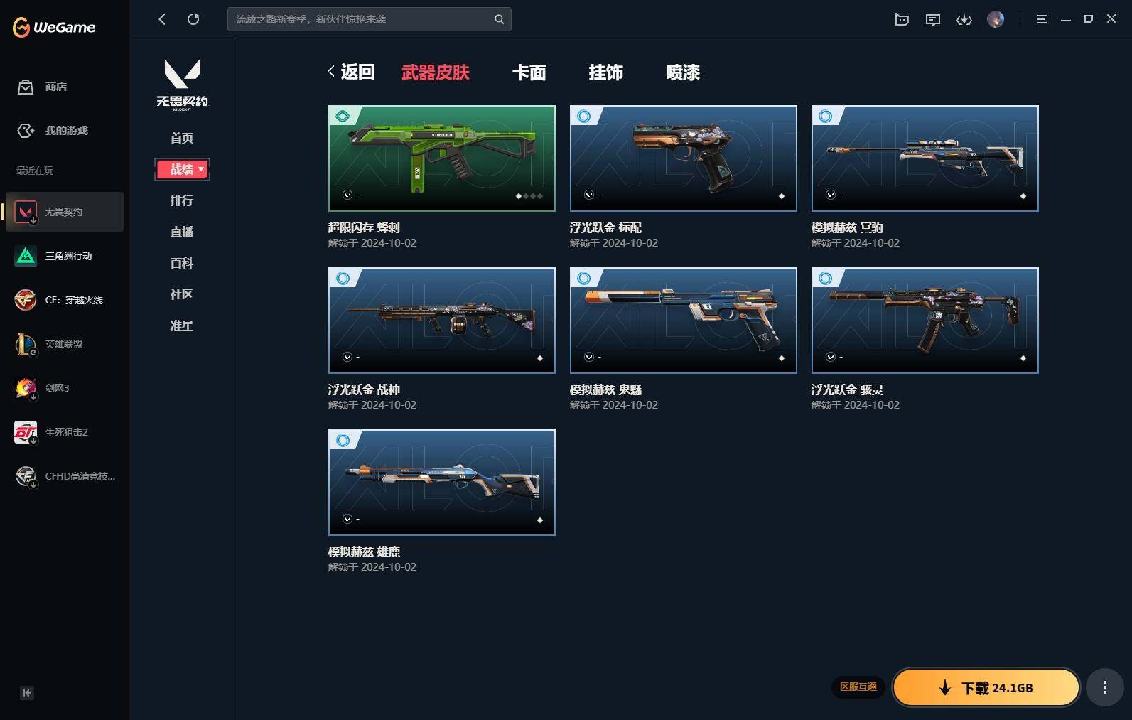 【491】【套装】:2025全球冠军赛套装,vct 2025 赛季套装,西部未来套装,奇点//2.0套装,般若假面//2.0套装 【英雄】:幻棱,炼狱,维斯,暮蝶,钛狐,壹决,铁臂,捷风,雷兹,幽影,不死鸟,贤者,猎枭,蝰蛇,零,芮娜,奇乐,尚勃勒,霓虹,斯凯,夜露,星礈,k/o,海神,盖可,黑梦,钢锁 【近战 武器】:近战武器-2025全球冠军赛 蝴蝶刀,近战武器-奇点//2.0 蝴蝶刀,近战武器-vct 2025 爪刀,近战武器-黑波之刃,近战武器-威龙之刃,近战武器-鬼丸国纲,近战武器-未来开拓者,近战武器-超限闪存 匕首,近战武器-荒土机兵 热能刀,近战武器-诡秘蛇影 军刀,近战武器-神圣领域 战刀 【狂徒】:狂徒-艾沃莉的梦之翼,狂徒-2025全球冠军赛,狂徒-洪荒怒焰,狂徒-奇点//2.0,狂徒-双城之战,狂徒-塑水宗,狂徒-般若假面//2.0,狂徒-堕天遗武,狂徒-盖亚的复仇,狂徒-荒土机兵,狂徒-诡秘蛇影 【幻影】:幻影-西部未来,幻影-末日泡泡,幻影-混沌序曲//2.0,幻影-侦察力量,幻影-超限闪存,幻影-神圣领域,幻影-纳米打击,幻影-末日之翼,幻影-西部未来 【戍卫】:戍卫-掠影,戍卫-浮光跃金,戍卫-逆冲蛮牛,戍卫-月球哨兵,戍卫-折光棱晶 【獠犬】:獠犬-般若假面//2.0,獠犬-神圣领域,獠犬-模拟赫兹,獠犬-逆冲蛮牛 【冥驹】:冥驹-千灵华绽,冥驹-荒土机兵,冥驹-模拟赫兹,冥驹-星云暗涌 【飞将】:飞将-西部未来,飞将-末日之翼 【莽侠】:莽侠-超限闪存,莽侠-诡秘蛇影,莽侠-月球哨兵 【战神】:战神-般若假面//2.0,战神-神圣领域,战神-浮光跃金 【奥丁】:奥丁-西部未来,奥丁-纳米打击,奥丁-末日之翼 【判官】:判官-诡秘蛇影,判官-纳米打击x 【雄鹿】:雄鹿-模拟赫兹,雄鹿-逆冲蛮牛,雄鹿-月球哨兵 【骇灵】:骇灵-荒土机兵,骇灵-无限竞技,骇灵-浮光跃金,骇灵-星云暗涌 【蜂刺】:蜂刺-超限闪存,蜂刺-星云暗涌,蜂刺-折光棱晶 【标配】:标配-紫阙金琅,标配-荒土机兵,标配-浮光跃金,标配-折光棱晶 【正义】:正义-千灵华绽,正义-西部未来,正义-超限闪存,正义-纳米打击,正义-月球哨兵 【鬼魅】:鬼魅-奇点//2.0,鬼魅-诡秘蛇影,鬼魅-模拟赫兹,鬼魅-星云暗涌 【狂怒】:狂怒-般若假面//2.0,狂怒-神圣领域,狂怒-逆冲蛮牛 【短炮】:短炮-末日之翼 【卡面】:终章:激斗汉堡 卡面,进入射程 卡面,分崩离析 卡面,纳米打击 卡面,抑制技术 卡面,激斗汉堡 卡面,瓦娃脸雪糕 p2 卡面,从黄昏到黎明 卡面,荒土机兵 卡面,银弹猎手 卡面,逆冲蛮牛 卡面,《双城之战》拥抱 卡面,精灵大战 卡面,欢迎来到底城 卡面,南瓜盛典 卡面,vct cn首冠 卡面,唱片的故事 卡面,钢弓与箭弦 卡面,无畏契约:暮蝶 卡面,排除故障 卡面,奇点//2.0 卡面,战术桌游 卡面,悠享食光 卡面,修车达人 卡面,热舞环节 卡面,模拟赫兹 卡面,浮光跃金 卡面,超限闪存 卡面,维斯工牌 卡面,正义的化身 卡面,归乡 // 蝰蛇 卡面,无畏契约go!第一卷:芮娜 卡面,无畏契约go!第一卷:零 卡面,《双城之战》金克丝 卡面,铁臂设计图 卡面,代号红色 卡面,新兵报到 卡面,v契约 卡面,无畏契约 卡面 【喷漆】:小小心意 喷漆,战“素”兔 喷漆,宇宙的指引 喷漆,请求重启 喷漆,逆冲蛮牛 喷漆,纳米打击 喷漆,鼻尖上的蝴蝶 喷漆,简笔画黯兽 喷漆,独守蝰腹 喷漆,他们将落荒而逃 喷漆,通缉:战术企鹅 喷漆,荒土机兵 喷漆,别挡我吃球! 喷漆,嗨宝南瓜灯 喷漆,嘭! 喷漆,都算到了 喷漆,控场勿近 喷漆,皮蛋呼呼 喷漆,像素星礈 喷漆,图谋不轨的零 喷漆,伤心心 喷漆,小丑猫 喷漆,模拟赫兹 喷漆,高丽风情小熊 喷漆,奇点//2.0 喷漆,蹲到一个 喷漆,全力集中 喷漆,超限闪存 喷漆,rua一下 喷漆,熊抱 喷漆,蛋糕还是爆能器? 喷漆,高丽风情小虎 喷漆,记在小本本 喷漆,防弹企鹅 喷漆,高丽风情小蛙 喷漆,双击点赞 喷漆,买装还是存钱 喷漆,胜利属于无畏契约 喷漆,glhf 喷漆,无畏契约 喷漆 【挂饰】:v25第三幕:超凡 挂饰,终章:猫猫木乃伊 挂饰,荒土机兵 挂饰,悠闲鸡块 挂饰,猫猫木乃伊 挂饰,水壶 挂饰,纳米打击 挂饰,逆冲蛮牛 挂饰,可爱糖糖 挂饰,伞绳 挂饰,《双城之战》小蛋糕 挂饰,第九季//第三幕 纪念币 挂饰,拳击战术熊 挂饰,工具腰带 挂饰,无畏契约go!第一卷 零 挂饰,暗藏猫腻 挂饰,高丽风情 挂饰,奇点//2.0 挂饰,鱼骨头 挂饰,熔岩灯 挂饰,超限闪存 挂饰,迷你k/o 挂饰,模拟赫兹 挂饰,第九季//第二幕 纪念币 挂饰,z世代特饮 挂饰,动力机箱 挂饰,天外飞客 挂饰,无畏契约 纪念币 挂饰