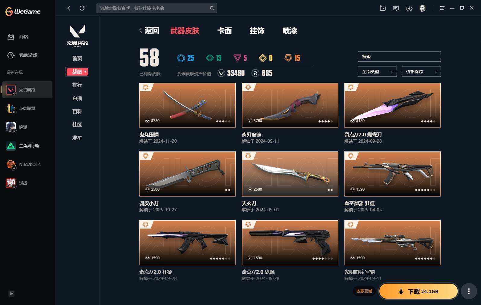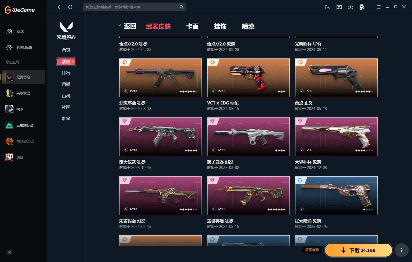 【485】【套装】:奇点//2.0套装,vctxedg 队伍套装 【英雄】:幻棱,炼狱,维斯,暮蝶,钛狐,壹决,铁臂,捷风,雷兹,幽影,不死鸟,贤者,猎枭,蝰蛇,零,芮娜,奇乐,尚勃勒,霓虹,斯凯,夜露,星礈,k/o,海神,盖可,黑梦,钢锁 【近战 武器】:近战武器-剥皮小刀,近战武器-奇点//2.0 蝴蝶刀,近战武器-鬼丸国纲,近战武器-流星兵团 短剑,近战武器-超限闪存 匕首,近战武器-荒土机兵 热能刀,近战武器-天玄刀,近战武器-夜刃诡镰 【狂徒】:狂徒-混沌序曲,狂徒-奇点//2.0,狂徒-虚空遗器,狂徒-堕天遗武,狂徒-盖世英雄,狂徒-荒土机兵,狂徒-流星兵团 【幻影】:幻影-般若假面,幻影-离子武器,幻影-超限闪存,幻影-纳米打击 【戍卫】:戍卫-浮光跃金,戍卫-逆冲蛮牛,戍卫-战术熊与伙伴们 【獠犬】:獠犬-模拟赫兹,獠犬-逆冲蛮牛 【冥驹】:冥驹-光明哨兵,冥驹-荒土机兵,冥驹-模拟赫兹 【飞将】:飞将-战术熊与伙伴们 【莽侠】:莽侠-超限闪存,莽侠-纤云弄巧 【战神】:战神-浮光跃金 【奥丁】:奥丁-流星兵团,奥丁-纳米打击 【判官】:判官-纳米打击x 【雄鹿】:雄鹿-模拟赫兹,雄鹿-逆冲蛮牛 【骇灵】:骇灵-荒土机兵,骇灵-流星兵团,骇灵-浮光跃金 【蜂刺】:蜂刺-超限闪存,蜂刺-纤云弄巧 【标配】:标配-超能偶像,标配-荒土机兵,标配-浮光跃金,标配-战术熊与伙伴们 【vct手呛】:标配-vct x edg 【正义】:正义-奇点,正义-超限闪存,正义-纳米打击,正义-纤云弄巧 【鬼魅】:鬼魅-奇点//2.0,鬼魅-天界神兵,鬼魅-流星兵团,鬼魅-模拟赫兹,鬼魅-星云暗涌 【狂怒】:狂怒-逆冲蛮牛,狂怒-战术熊与伙伴们 【短炮】:短炮-纤云弄巧 【卡面】:进入射程 卡面,分崩离析 卡面,纳米打击 卡面,抑制技术 卡面,激斗汉堡 卡面,瓦娃脸雪糕 p2 卡面,从黄昏到黎明 卡面,荒土机兵 卡面,银弹猎手 卡面,逆冲蛮牛 卡面,《双城之战》拥抱 卡面,精灵大战 卡面,欢迎来到底城 卡面,南瓜盛典 卡面,唱片的故事 卡面,钢弓与箭弦 卡面,排除故障 卡面,奇点//2.0 卡面,战术桌游 卡面,悠享食光 卡面,修车达人 卡面,模拟赫兹 卡面,浮光跃金 卡面,超限闪存 卡面,维斯工牌 卡面,正义的化身 卡面,铁之华 卡面,时间到 卡面,最高舞台 卡面,声感陷阱设计图 卡面,红鳞松叶 卡面,霓帧牛蛙 卡面,梦幻奶茶 卡面,终章:打造专属狂徒 卡面,趁热吃 卡面,西装暴徒 卡面,失控边缘 卡面,哨卫者之领域 卡面,暮蝶工牌 卡面,战术熊与伙伴们 卡面,源能反应 卡面,流星兵团 卡面,纤云弄巧 卡面,暂别喧嚣 卡面,打造专属狂徒 卡面,零点嗅探设计图 卡面,无畏契约go!第一卷:芮娜 卡面,清除名单 卡面,无畏契约go!第一卷:零 卡面,无垠星环 卡面,无畏契约go!第一卷:贤者 卡面,代号红色 卡面,新兵报到 卡面,v契约 卡面,无畏契约 卡面 【喷漆】:小小心意 喷漆,战“素”兔 喷漆,宇宙的指引 喷漆,请求重启 喷漆,逆冲蛮牛 喷漆,纳米打击 喷漆,鼻尖上的蝴蝶 喷漆,简笔画黯兽 喷漆,独守蝰腹 喷漆,他们将落荒而逃 喷漆,通缉:战术企鹅 喷漆,荒土机兵 喷漆,别挡我吃球! 喷漆,嗨宝南瓜灯 喷漆,嘭! 喷漆,都算到了 喷漆,控场勿近 喷漆,皮蛋呼呼 喷漆,像素星礈 喷漆,图谋不轨的零 喷漆,小丑猫 喷漆,模拟赫兹 喷漆,高丽风情小熊 喷漆,奇点//2.0 喷漆,蹲到一个 喷漆,全力集中 喷漆,超限闪存 喷漆,rua一下 喷漆,熊抱 喷漆,高丽风情小虎 喷漆,记在小本本 喷漆,防弹企鹅 喷漆,高丽风情小蛙 喷漆,超级粉丝 喷漆,捷风差距 喷漆,惊声尖叫 喷漆,拼一呛 喷漆,加油!加油! 喷漆,开心到爆炸 喷漆,皮蛋萌舞 喷漆,我觉得不行 喷漆,头号粉丝 喷漆,吸一口快乐 喷漆,永远的答案 喷漆,再来一次? 喷漆,别挡我的路! 喷漆,我的刀呢? 喷漆,当然可以 喷漆,流星兵团 喷漆,战术熊与伙伴们 喷漆,禁止喷漆 喷漆,纤云弄巧 喷漆,买装还是存钱 喷漆,胜利属于无畏契约 喷漆,glhf 喷漆,无畏契约 喷漆 【挂饰】:第九季:超凡 挂饰,第八季:超凡 挂饰,荒土机兵 挂饰,悠闲鸡块 挂饰,猫猫木乃伊 挂饰,水壶 挂饰,纳米打击 挂饰,逆冲蛮牛 挂饰,可爱糖糖 挂饰,伞绳 挂饰,《双城之战》小蛋糕 挂饰,第九季//第三幕 纪念币 挂饰,拳击战术熊 挂饰,工具腰带 挂饰,无畏契约go!第一卷 芮娜 挂饰,无畏契约go!第一卷 零 挂饰,暗藏猫腻 挂饰,高丽风情 挂饰,奇点//2.0 挂饰,熔岩灯 挂饰,超限闪存 挂饰,迷你k/o 挂饰,模拟赫兹 挂饰,第九季//第二幕 纪念币 挂饰,薰衣草之心 挂饰,糖葫芦 挂饰,袖珍捷风 挂饰,迷你浓缩 挂饰,动力机箱 挂饰,第九季//第一幕 纪念币 挂饰,终章:迷你机甲 挂饰,犯困的布鲁诺 挂饰,战术河童 挂饰,招财猫熊 挂饰,迷你机甲 挂饰,荧光棒 挂饰,vct x edg 挂饰,章鱼烧先生 挂饰,流星兵团 挂饰,云开见日 挂饰,第八季//第三幕 纪念币 挂饰,第八季//第二幕 纪念币 挂饰 ,天外飞客 挂饰,《双城之战》魄罗 挂饰,无畏契约 纪念币 挂饰
