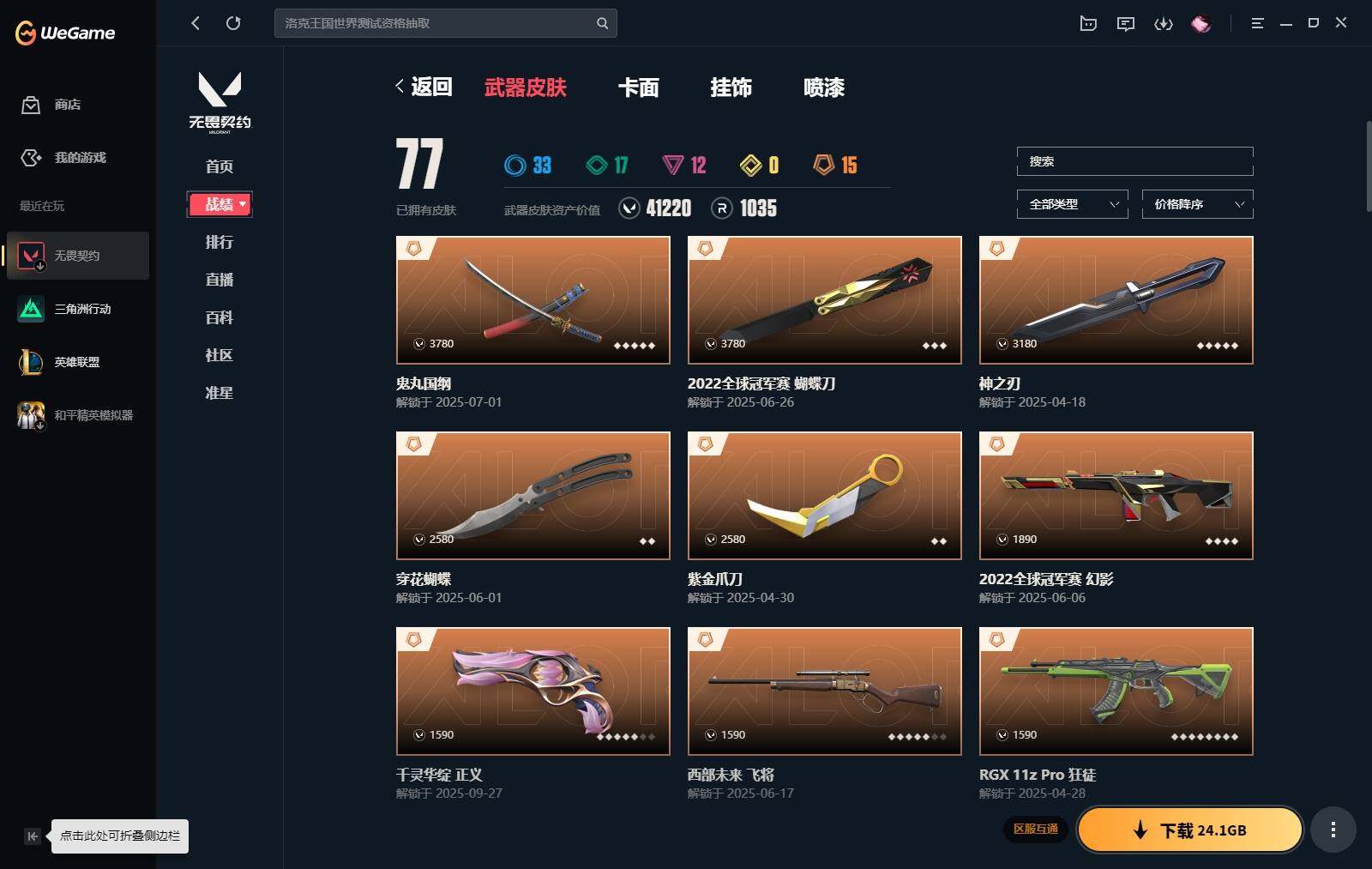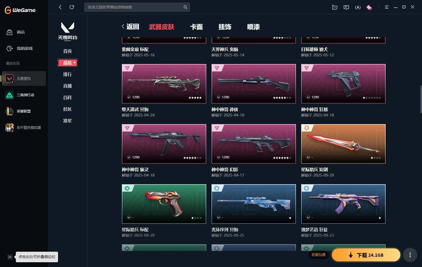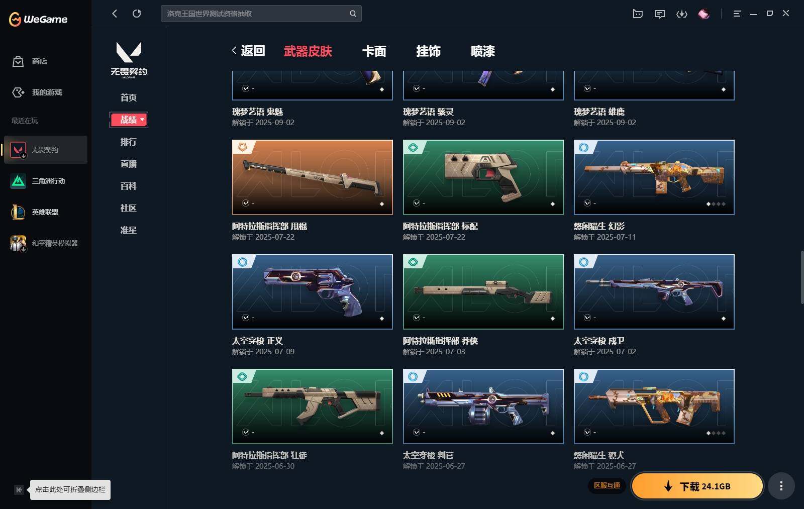 【364】【套装】:2022全球冠军赛套装,神中神罚套装 【英雄】:炼狱,维斯,暮蝶,壹决,捷风,雷兹,幽影,不死鸟,贤者,猎枭,蝰蛇,零,芮娜,奇乐,尚勃勒,霓虹,斯凯,夜露,星礈,k/o,黑梦 【近战 武器】:近战武器-2022全球冠军赛 蝴蝶刀,近战武器-神之刃,近战武器-穿花蝴蝶,近战武器-紫金爪刀,近战武器-鬼丸国纲,近战武器-诡秘蛇影 军刀,近战武器-日耀风暴 遗器,近战武器-阿特拉斯指挥部 甩棍,近战武器-星际猎兵 短剑 【狂徒】:狂徒-奇点//2.0,狂徒-偃月苍龙,狂徒-rgx 11z pro,狂徒-盖亚的复仇,狂徒-诡秘蛇影 【幻影】:幻影-2022全球冠军赛,幻影-异鳞魔蛇,幻影-神中神罚,幻影-末日之翼 【戍卫】:戍卫-般若假面,戍卫-折光棱晶 【獠犬】:獠犬-日冕雄师 【冥驹】:冥驹-堕天遗武 【飞将】:飞将-西部未来,飞将-末日之翼 【莽侠】:莽侠-神中神罚,莽侠-诡秘蛇影 【奥丁】:奥丁-末日之翼 【判官】:判官-诡秘蛇影 【骇灵】:骇灵-神中神罚 【蜂刺】:蜂刺-折光棱晶 【标配】:标配-堕天遗武,标配-紫阙金琅,标配-折光棱晶 【正义】:正义-千灵华绽,正义-超限闪存,正义-纳米打击 【鬼魅】:鬼魅-天界神兵,鬼魅-诡秘蛇影,鬼魅-宿怨 【狂怒】:狂怒-神中神罚 【短炮】:短炮-末日之翼 【卡面】:终章:激斗汉堡 卡面,进入射程 卡面,《双城之战》拥抱 卡面,精灵大战 卡面,欢迎来到底城 卡面,南瓜盛典 卡面,修车达人 卡面,正义的化身 卡面,时间到 卡面,最高舞台 卡面,声感陷阱设计图 卡面,梦幻奶茶 卡面,纤云弄巧 卡面,无畏契约go!第一卷:芮娜 卡面,无畏契约go!第一卷:零 卡面,代号红色 卡面,冰淇淋店 卡面,新兵报到 卡面,友军火力 卡面,v契约 卡面,无畏契约 卡面 【喷漆】:嗨宝南瓜灯 喷漆,嘭! 喷漆,都算到了 喷漆,控场勿近 喷漆,小丑猫 喷漆,熊抱 喷漆,超级粉丝 喷漆,捷风差距 喷漆,惊声尖叫 喷漆,拼一呛 喷漆,新潮流 喷漆,买装还是存钱 喷漆,胜利属于无畏契约 喷漆,glhf 喷漆,无畏契约 喷漆 【挂饰】:终章:猫猫木乃伊 挂饰,悠闲鸡块 挂饰,伞绳 挂饰,《双城之战》小蛋糕 挂饰,第九季//第三幕 纪念币 挂饰,工具腰带 挂饰,奇点//2.0 挂饰,熔岩灯 挂饰,第九季//第二幕 纪念币 挂饰,袖珍捷风 挂饰,迷你浓缩 挂饰,z世代特饮 挂饰,第九季//第一幕 纪念币 挂饰,天外飞客 挂饰,针织蜜蜂 挂饰,无畏契约 纪念币 挂饰
