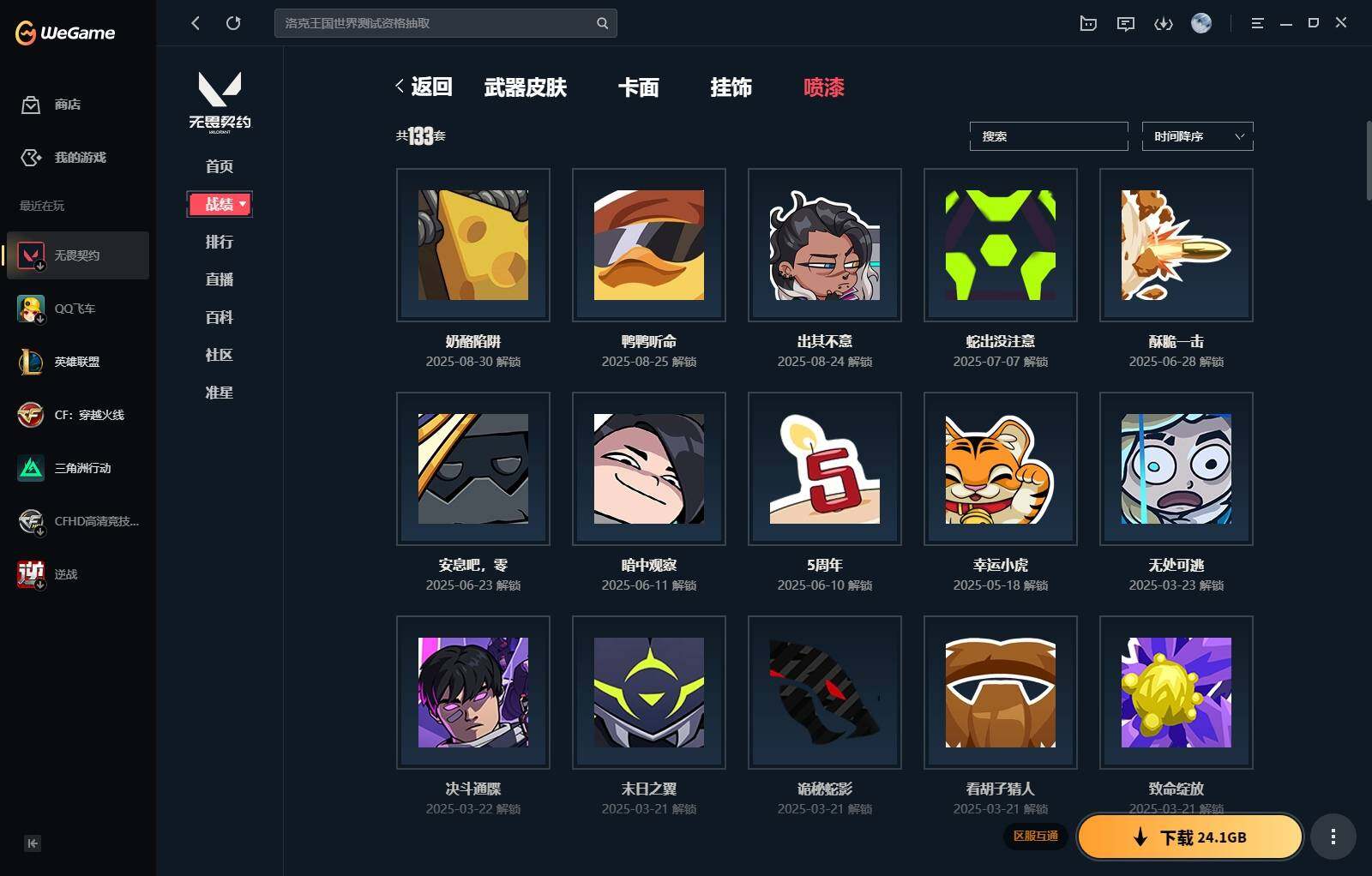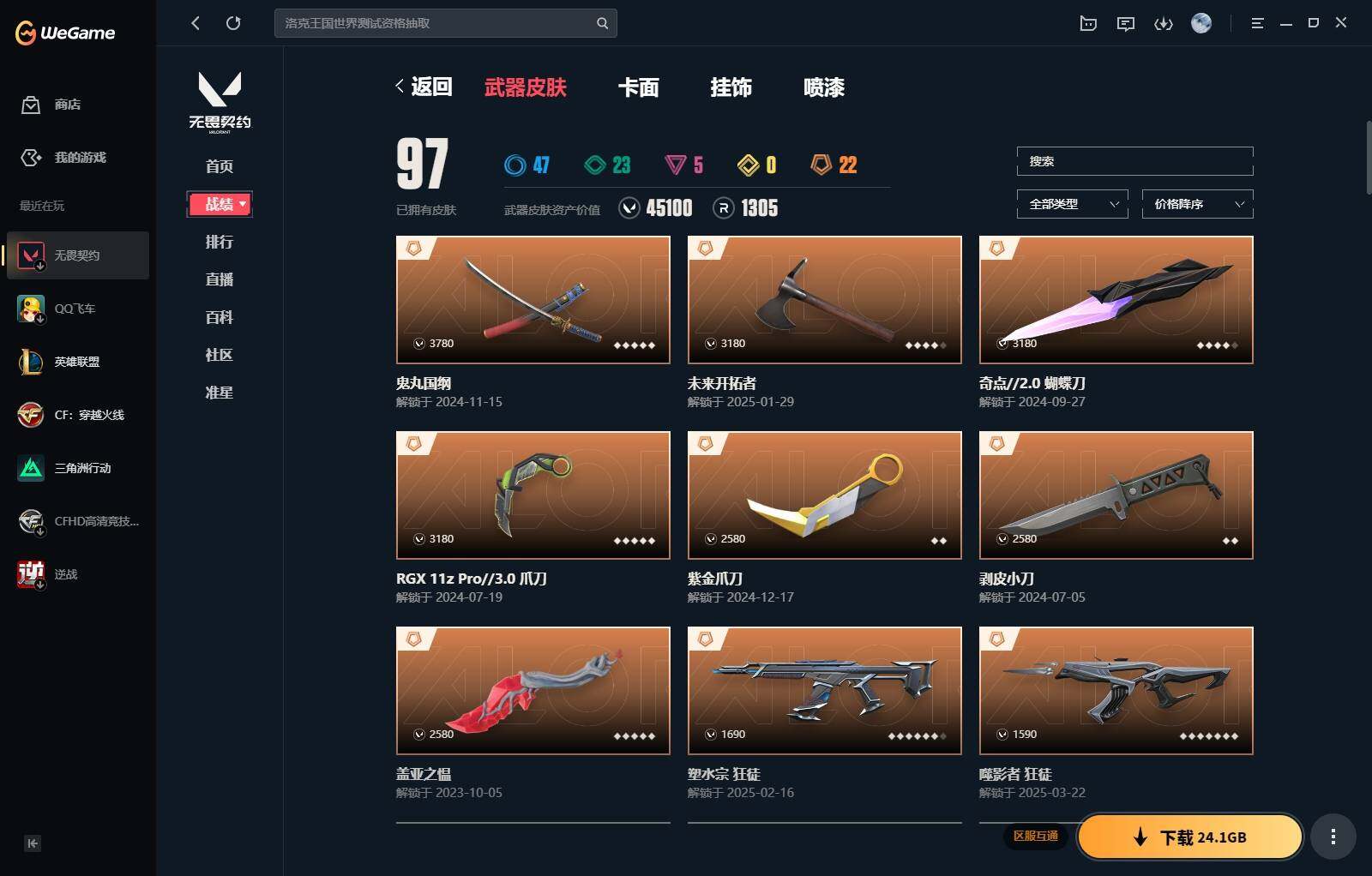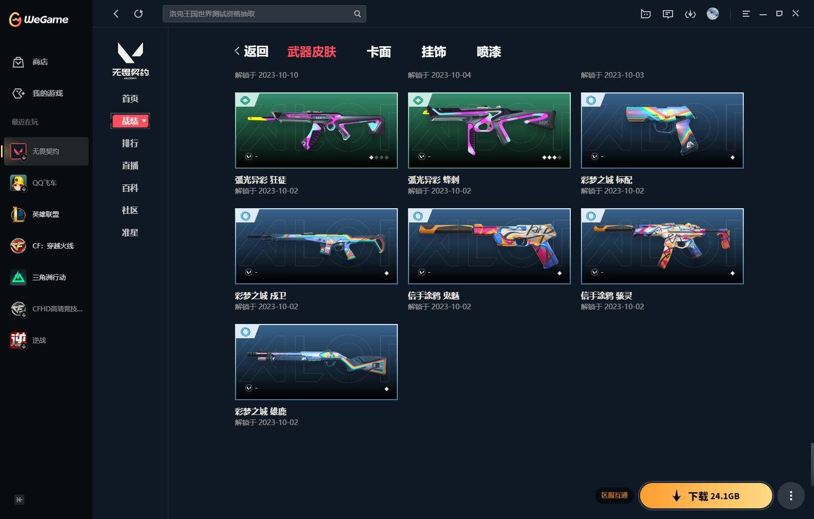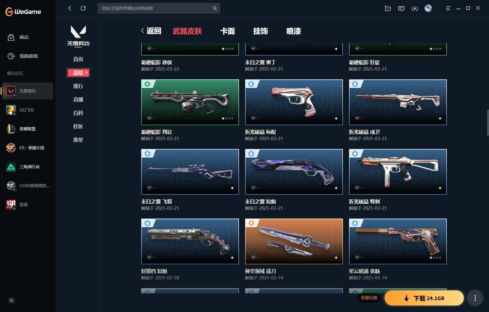 【340】【套装】:西部未来套装,rgx 11z pro//3.0套装,奇点//2.0套装 【英雄】:幻棱,炼狱,维斯,暮蝶,钛狐,壹决,铁臂,捷风,雷兹,幽影,不死鸟,贤者,猎枭,零,芮娜,奇乐,尚勃勒,霓虹,斯凯,夜露,k/o,海神,盖可,钢锁 【近战 武器】:近战武器-剥皮小刀,近战武器-奇点//2.0 蝴蝶刀,近战武器-紫金爪刀,近战武器-rgx 11z pro//3.0 爪刀,近战武器-鬼丸国纲,近战武器-未来开拓者,近战武器-超能偶像 应援棒,近战武器-超限闪存 匕首,近战武器-盖亚之愠,近战武器-荒土机兵 热能刀,近战武器-神圣领域 战刀 【狂徒】:狂徒-混沌序曲,狂徒-奇点//2.0,狂徒-塑水宗,狂徒-噬影者,狂徒-盖亚的复仇,狂徒-紫阙金琅,狂徒-超能偶像,狂徒-弧光异彩,狂徒-荒土机兵,狂徒-诡秘蛇影 【幻影】:幻影-西部未来,幻影-般若假面,幻影-侦察力量,幻影-超限闪存,幻影-神圣领域,幻影-聚合之力,幻影-纳米打击,幻影-西部未来 【戍卫】:戍卫-超能偶像,戍卫-彩梦之城,戍卫-浮光跃金,戍卫-逆冲蛮牛,戍卫-月球哨兵,戍卫-折光棱晶 【獠犬】:獠犬-弧光异彩,獠犬-神圣领域,獠犬-采蜜小蜂队,獠犬-模拟赫兹,獠犬-逆冲蛮牛 【冥驹】:冥驹-起源,冥驹-荒土机兵,冥驹-模拟赫兹,冥驹-星云暗涌 【飞将】:飞将-西部未来,飞将-聚合之力,飞将-信手涂鸦,飞将-末日之翼 【莽侠】:莽侠-rgx 11z pro//3.0,莽侠-超限闪存,莽侠-诡秘蛇影,莽侠-月球哨兵 【战神】:战神-神圣领域,战神-采蜜小蜂队,战神-浮光跃金 【奥丁】:奥丁-西部未来,奥丁-纳米打击,奥丁-信手涂鸦,奥丁-末日之翼 【判官】:判官-超能偶像,判官-诡秘蛇影,判官-采蜜小蜂队,判官-纳米打击x 【雄鹿】:雄鹿-彩梦之城,雄鹿-模拟赫兹,雄鹿-逆冲蛮牛,雄鹿-月球哨兵 【骇灵】:骇灵-荒土机兵,骇灵-浮光跃金,骇灵-信手涂鸦,骇灵-星云暗涌 【蜂刺】:蜂刺-超限闪存,蜂刺-弧光异彩,蜂刺-聚合之力,蜂刺-星云暗涌,蜂刺-折光棱晶 【标配】:标配-超能偶像,标配-荒土机兵,标配-彩梦之城,标配-浮光跃金,标配-折光棱晶 【正义】:正义-rgx 11z pro//3.0,正义-西部未来,正义-超限闪存,正义-纳米打击,正义-月球哨兵 【鬼魅】:鬼魅-奇点//2.0,鬼魅-采蜜小蜂队,鬼魅-模拟赫兹,鬼魅-宿怨,鬼魅-信手涂鸦,鬼魅-星云暗涌 【狂怒】:狂怒-神圣领域,狂怒-聚合之力,狂怒-逆冲蛮牛 【短炮】:短炮-好搭档,短炮-末日之翼 【卡面】:终章:激斗汉堡 卡面,进入射程 卡面,分崩离析 卡面,纳米打击 卡面,抑制技术 卡面,激斗汉堡 卡面,瓦娃脸雪糕 p2 卡面,从黄昏到黎明 卡面,荒土机兵 卡面,银弹猎手 卡面,逆冲蛮牛 卡面,《双城之战》拥抱 卡面,精灵大战 卡面,欢迎来到底城 卡面,南瓜盛典 卡面,vct cn首冠 卡面,唱片的故事 卡面,钢弓与箭弦 卡面,无畏契约:暮蝶 卡面,排除故障 卡面,奇点//2.0 卡面,战术桌游 卡面,悠享食光 卡面,修车达人 卡面,热舞环节 卡面,模拟赫兹 卡面,浮光跃金 卡面,超限闪存 卡面,维斯工牌 卡面,正义的化身 卡面,终章:生意人麦宝 卡面,铁之华 卡面,失而复得 卡面,时间到 卡面,最高舞台 卡面,复活专家 卡面,归乡 // 蝰蛇 卡面,rgx 11z pro//3.0 卡面,超能偶像 卡面,生意人麦宝 卡面,音熊登场 卡面,树懒大作战 卡面,声感陷阱设计图 卡面,红鳞松叶 卡面,钢锁工牌 卡面,战术小伙伴的夏日 卡面,采蜜小蜂队 卡面,聚合之力 卡面,梦幻奶茶 卡面,源能反应 卡面,零点嗅探设计图 卡面,无畏契约:蝰蛇 卡面,沙雕爆能器 卡面,无畏契约go!第一卷:芮娜 卡面,清除名单 卡面,无畏契约go!第一卷:零 卡面,龍记 卡面,《双城之战》金克丝 卡面,完美调谐 卡面 ,暗呛 卡面,夯实根基 卡面,"luie" 卡面,热烈欢迎 卡面,铁臂设计图 卡面,代号红色 卡面,冰淇淋店 卡面,新兵报到 卡面,友军火力 卡面,v契约 卡面,无畏契约 卡面 【喷漆】:小小心意 喷漆,战“素”兔 喷漆,宇宙的指引 喷漆,请求重启 喷漆,逆冲蛮牛 喷漆,纳米打击 喷漆,鼻尖上的蝴蝶 喷漆,简笔画黯兽 喷漆,独守蝰腹 喷漆,他们将落荒而逃 喷漆,通缉:战术企鹅 喷漆,荒土机兵 喷漆,别挡我吃球! 喷漆,嗨宝南瓜灯 喷漆,嘭! 喷漆,都算到了 喷漆,控场勿近 喷漆,皮蛋呼呼 喷漆,像素星礈 喷漆,图谋不轨的零 喷漆,伤心心 喷漆,小丑猫 喷漆,模拟赫兹 喷漆,高丽风情小熊 喷漆,奇点//2.0 喷漆,蹲到一个 喷漆,全力集中 喷漆,超限闪存 喷漆,rua一下 喷漆,熊抱 喷漆,蛋糕还是爆能器? 喷漆,高丽风情小虎 喷漆,记在小本本 喷漆,防弹企鹅 喷漆,高丽风情小蛙 喷漆,又被闪了 喷漆,终极羞辱 喷漆,超级粉丝 喷漆,黯兽卖萌 喷漆,捷风差距 喷漆,惊声尖叫 喷漆,2021冠军巡回赛花火 喷漆,五人成星 喷漆,超能偶像 喷漆,rgx 11z pro//3.0 喷漆,放我出去 喷漆,战术熊的巴拉莱卡琴 喷漆,掩护我 喷漆,大佬发呛 喷漆,边缘试探 喷漆,拼一呛 喷漆,聚合之力 喷漆,采蜜小蜂队 喷漆,梦幻小队 喷漆,五个全都齐了 喷漆,我觉得不行 喷漆,我的刀呢? 喷漆,喜欢哪种毒? 喷漆,双击点赞 喷漆,买装还是存钱 喷漆,醒狮贺春 喷漆,红鳞 喷漆,松叶 喷漆,旅行小熊 喷漆,蕊形灯 喷漆,凌空惊吓 喷漆,老铁困了 喷漆,口袋贤者 喷漆,胜利属于无畏契约 喷漆,glhf 喷漆,无畏契约 喷漆 【挂饰】:v25第三幕:超凡 挂饰,终章:猫猫木乃伊 挂饰,荒土机兵 挂饰,悠闲鸡块 挂饰,猫猫木乃伊 挂饰,水壶 挂饰,纳米打击 挂饰,逆冲蛮牛 挂饰,可爱糖糖 挂饰,伞绳 挂饰,《双城之战》小蛋糕 挂饰,第九季//第三幕 纪念币 挂饰,拳击战术熊 挂饰,工具腰带 挂饰,无