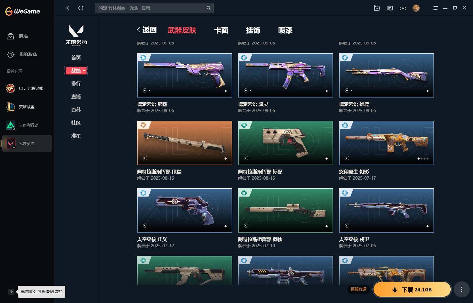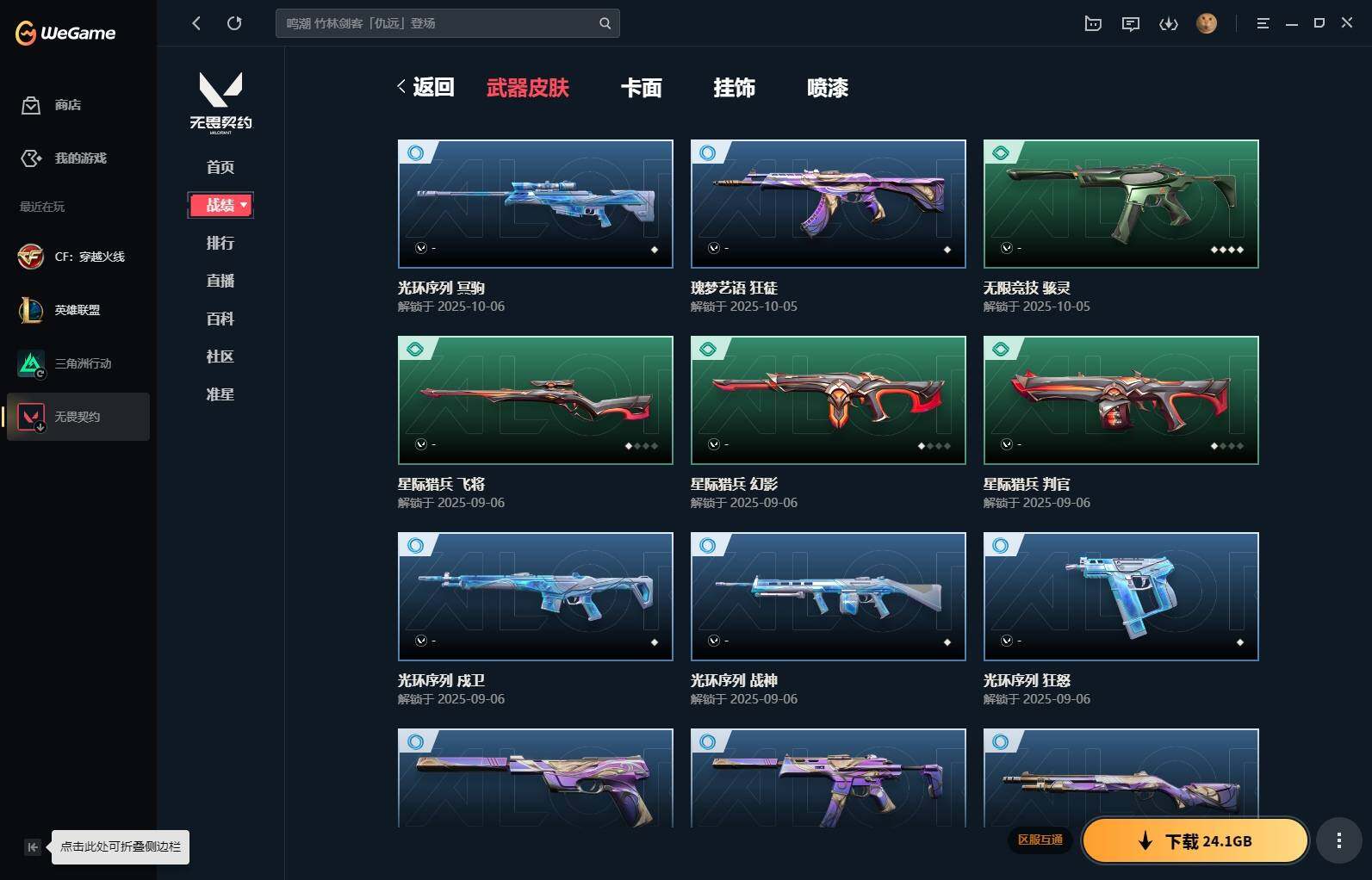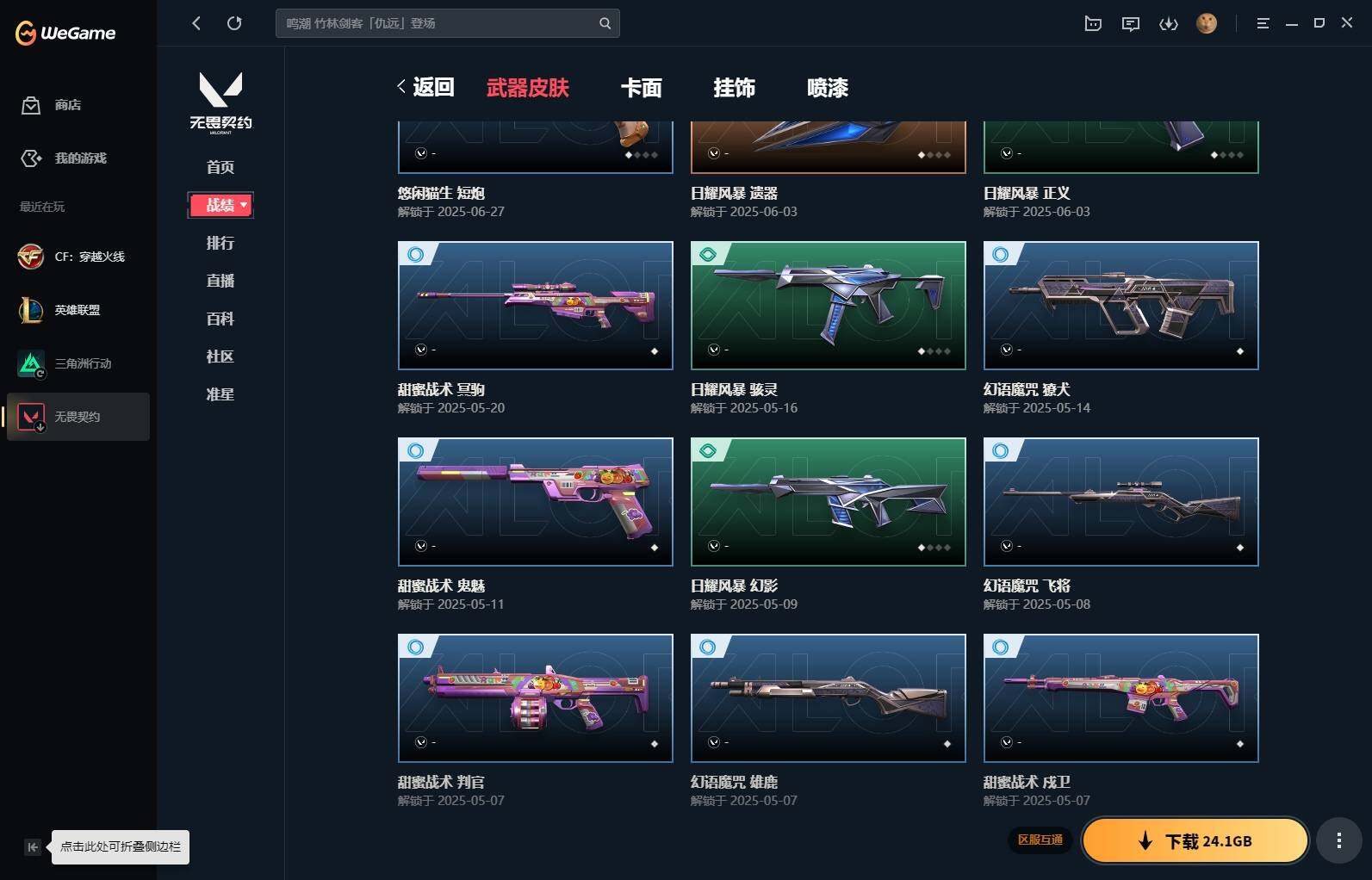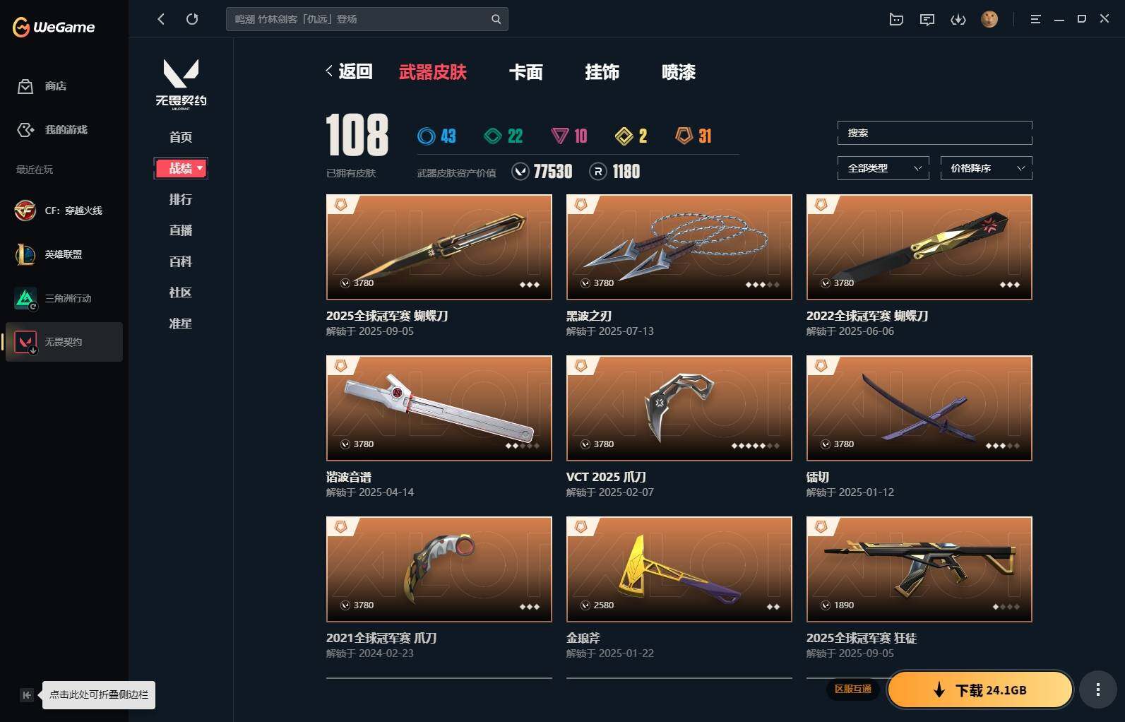 【269】【套装】:2025全球冠军赛套装,2022全球冠军赛套装,2021全球冠军赛套装,电音光谱套装,vct 2025 赛季套装,创·纪元套装 【英雄】:幻棱,炼狱,暮蝶,钛狐,捷风,雷兹,幽影,不死鸟,贤者,猎枭,蝰蛇,零,芮娜,奇乐,尚勃勒,霓虹,斯凯,k/o,盖可,黑梦 【近战 武器】:近战武器-2025全球冠军赛 蝴蝶刀,近战武器-2022全球冠军赛 蝴蝶刀,近战武器-2021全球冠军赛 爪刀,近战武器-谐波音谱,近战武器-vct 2025 爪刀,近战武器-黑波之刃,近战武器-镭切,近战武器-金琅斧,近战武器-诡秘蛇影 军刀,近战武器-神圣领域 战刀 【狂徒】:狂徒-艾沃莉的梦之翼,狂徒-2025全球冠军赛,狂徒-2021全球冠军赛,狂徒-归零者,狂徒-混沌序曲,狂徒-创·纪元,狂徒-虚空遗器,狂徒-rgx 11z pro,狂徒-光荣异象,狂徒-盖亚的复仇,狂徒-日冕雄师,狂徒-诡秘蛇影,狂徒-极简主义//2.0 【幻影】:幻影-2022全球冠军赛,幻影-全息波普//2.0,幻影-电音光谱,幻影-般若假面,幻影-侦察力量,幻影-紫阙金琅//2.0,幻影-异鳞魔蛇,幻影-海洋之星//2.0,幻影-神圣领域,幻影-末日之翼,幻影-电音光谱 【戍卫】:戍卫-电音光谱,戍卫-月球哨兵,戍卫-折光棱晶,戍卫-电音光谱 【獠犬】:獠犬-电音光谱,獠犬-神圣领域,獠犬-电音光谱 【冥驹】:冥驹-堕天遗武,冥驹-星云暗涌 【飞将】:飞将-末日之翼 【莽侠】:莽侠-创·纪元,莽侠-诡秘蛇影,莽侠-月球哨兵 【战神】:战神-神圣领域 【奥丁】:奥丁-末日之翼 【判官】:判官-诡秘蛇影 【雄鹿】:雄鹿-月球哨兵 【骇灵】:骇灵-创·纪元,骇灵-无限竞技,骇灵-星云暗涌 【蜂刺】:蜂刺-星云暗涌,蜂刺-折光棱晶 【标配】:标配-电音光谱,标配-折光棱晶,标配-电音光谱 【vct手呛】:标配-vct25 x edg 【正义】:正义-创·纪元,正义-离子武器,正义-月球哨兵 【鬼魅】:鬼魅-超时空卫队,鬼魅-盖世英雄,鬼魅-诡秘蛇影,鬼魅-星云暗涌 【狂怒】:狂怒-神圣领域 【短炮】:短炮-末日之翼 【卡面】:《双城之战》拥抱 卡面,精灵大战 卡面,欢迎来到底城 卡面,南瓜盛典 卡面,无畏契约:暮蝶 卡面,热舞环节 卡面,树懒大作战 卡面,红鳞松叶 卡面,梦幻奶茶 卡面,源能反应 卡面,零点嗅探设计图 卡面,沙雕爆能器 卡面,无畏契约go!第一卷:芮娜 卡面,清除名单 卡面,无畏契约go!第一卷:零 卡面,龍记 卡面,完美调谐 卡面 ,暗呛 卡面,无畏契约go!第一卷:贤者 卡面,钢锁vs盖可 卡面,代号红色 卡面,新兵报到 卡面,v契约 卡面,无畏契约 卡面 【喷漆】:嘭! 喷漆,都算到了 喷漆,控场勿近 喷漆,伤心心 喷漆,审判之爪 喷漆,我的刀呢? 喷漆,霓光四射 喷漆,新潮流 喷漆,双击点赞 喷漆,买装还是存钱 喷漆,醒狮贺春 喷漆,酷熊冲浪 喷漆,无畏契约go!第一卷:芮娜 喷漆,无畏契约go!第一卷:贤者 喷漆,松叶 喷漆,无畏契约go!第一卷:奇乐 喷漆,蕊形灯 喷漆,胜利属于无畏契约 喷漆,glhf 喷漆,无畏契约 喷漆 【挂饰】:伞绳 挂饰,《双城之战》小蛋糕 挂饰,第九季//第三幕 纪念币 挂饰,无畏契约go!第一卷 芮娜 挂饰,无畏契约go!第一卷 零 挂饰,薰衣草之心 挂饰,z世代特饮 挂饰,第八季:白银 挂饰,vct x edg 挂饰,第八季//第三幕 纪念币 挂饰,传世莲华 挂饰,第八季//第二幕 纪念币 挂饰 ,天外飞客 挂饰,好运福爪 挂饰,《双城之战》魄罗 挂饰,瞄这里 挂饰,第八季//第一幕 纪念币 挂饰,无畏契约 纪念币 挂饰