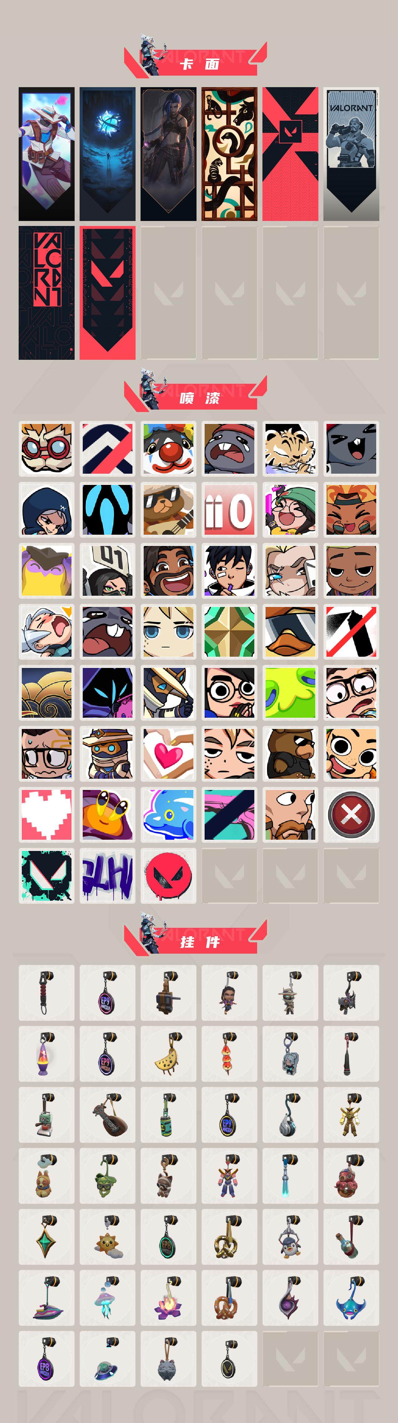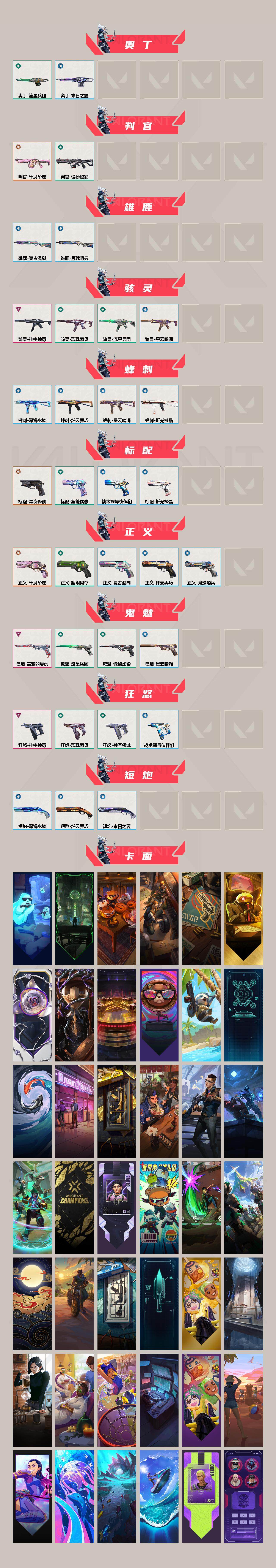 【239】【套装】:千灵华绽套装,神中神罚套装 【英雄】:幻棱,炼狱,维斯,暮蝶,钛狐,壹决,铁臂,捷风,雷兹,幽影,不死鸟,贤者,猎枭,蝰蛇,零,芮娜,奇乐,尚勃勒,霓虹,斯凯,夜露,星礈,k/o,海神,盖可,黑梦,钢锁 【近战 武器】:近战武器-神之刃,近战武器-紫金爪刀,近战武器-落英飞旋,近战武器-珍珠棘贝 短剑,近战武器-流星兵团 短剑,近战武器-诡秘蛇影 军刀,近战武器-神圣领域 战刀 【狂徒】:狂徒-混沌序曲,狂徒-塑水宗,狂徒-噬影者,狂徒-光荣异象,狂徒-掠影,狂徒-盖亚的复仇,狂徒-日冕雄师,狂徒-流星兵团,狂徒-诡秘蛇影 【幻影】:幻影-千灵华绽,幻影-神中神罚,幻影-珍珠棘贝,幻影-神圣领域,幻影-末日之翼 【戍卫】:戍卫-紫阙金琅,戍卫-珍珠棘贝,戍卫-战术熊与伙伴们,戍卫-月球哨兵,戍卫-折光棱晶 【獠犬】:獠犬-神圣领域,獠犬-复古浪潮 【冥驹】:冥驹-千灵华绽,冥驹-复古浪潮,冥驹-星云暗涌 【飞将】:飞将-战术熊与伙伴们,飞将-末日之翼 【莽侠】:莽侠-神中神罚,莽侠-诡秘蛇影,莽侠-深海水族,莽侠-纤云弄巧,莽侠-月球哨兵 【战神】:战神-神圣领域,战神-深海水族 【奥丁】:奥丁-流星兵团,奥丁-末日之翼 【判官】:判官-千灵华绽,判官-诡秘蛇影 【雄鹿】:雄鹿-复古浪潮,雄鹿-月球哨兵 【骇灵】:骇灵-神中神罚,骇灵-流星兵团,骇灵-珍珠棘贝,骇灵-星云暗涌 【蜂刺】:蜂刺-深海水族,蜂刺-纤云弄巧,蜂刺-星云暗涌,蜂刺-折光棱晶 【标配】:标配-黯夜怪谈,标配-超能偶像,标配-战术熊与伙伴们,标配-折光棱晶 【正义】:正义-千灵华绽,正义-超限闪存,正义-复古浪潮,正义-纤云弄巧,正义-月球哨兵 【鬼魅】:鬼魅-盖亚的复仇,鬼魅-流星兵团,鬼魅-诡秘蛇影,鬼魅-星云暗涌 【狂怒】:狂怒-神中神罚,狂怒-珍珠棘贝,狂怒-神圣领域,狂怒-战术熊与伙伴们 【短炮】:短炮-深海水族,短炮-纤云弄巧,短炮-末日之翼 【卡面】:精灵大战 卡面,欢迎来到底城 卡面,南瓜盛典 卡面,修车达人 卡面,正义的化身 卡面,终章:生意人麦宝 卡面,铁之华 卡面,时间到 卡面,最高舞台 卡面,音熊登场 卡面,树懒大作战 卡面,声感陷阱设计图 卡面,红鳞松叶 卡面,梦幻奶茶 卡面,终章:打造专属狂徒 卡面,趁热吃 卡面,西装暴徒 卡面,失控边缘 卡面,哨卫者之领域 卡面,艺无止境//全球冠军赛 卡面,暮蝶工牌 卡面,战术熊与伙伴们 卡面,源能反应 卡面,流星兵团 卡面,纤云弄巧 卡面,暂别喧嚣 卡面,打造专属狂徒 卡面,零点嗅探设计图 卡面,终章:瓦娃脸雪糕 卡面,表象之下 卡面,虹吸式咖啡壶 卡面,源能者美容 卡面,脚踝终结者 卡面 ,夜班 卡面,瓦娃脸雪糕 卡面 ,沙雕爆能器 卡面,无畏契约go!第一卷:芮娜 卡面,深海水族 卡面,珍珠棘贝 卡面,复古浪潮 卡面,盖可工牌 卡面,清除名单 卡面,无畏契约go!第一卷:零 卡面,无垠星环 卡面,《双城之战》金克丝 卡面,萌彩剪影 卡面,代号红色 卡面,新兵报到 卡面,v契约 卡面,无畏契约 卡面,拯救宽体奇乐 卡面 【喷漆】:都算到了 喷漆,控场勿近 喷漆,小丑猫 喷漆,熊抱 喷漆,高丽风情小虎 喷漆,超级粉丝 喷漆,捷风差距 喷漆,惊声尖叫 喷漆,战术熊的巴拉莱卡琴 喷漆,拼一呛 喷漆,加油!加油! 喷漆,开心到爆炸 喷漆,皮蛋萌舞 喷漆,我觉得不行 喷漆,头号粉丝 喷漆,吸一口快乐 喷漆,永远的答案 喷漆,再来一次? 喷漆,别挡我的路! 喷漆,我的刀呢? 喷漆,当然可以 喷漆,流星兵团 喷漆,战术熊与伙伴们 喷漆,禁止喷漆 喷漆,纤云弄巧 喷漆,情绪控制 喷漆,哨卫滑步 喷漆,倒吸一口凉气 喷漆,uwu 喷漆,新潮流 喷漆,逮到一个 喷漆,一个人的孤岛 喷漆,双人比心 喷漆,不予置评 喷漆,三熊合一 喷漆,要喝完噢! 喷漆,双击点赞 喷漆,珍珠棘贝 喷漆,深海水族 喷漆,禁止标配 喷漆 ,铁臂尴尬 喷漆,买装还是存钱 喷漆,胜利属于无畏契约 喷漆,glhf 喷漆,无畏契约 喷漆 【挂饰】:伞绳 挂饰,第九季//第三幕 纪念币 挂饰,工具腰带 挂饰,无畏契约go!第一卷 芮娜 挂饰,无畏契约go!第一卷 零 挂饰,鱼骨头 挂饰,熔岩灯 挂饰,第九季//第二幕 纪念币 挂饰,终章:这瓜保熟 挂饰,糖葫芦 挂饰,袖珍捷风 挂饰,丢麦 挂饰,迷你浓缩 挂饰,尤克里里 挂饰,z世代特饮 挂饰,第九季//第一幕 纪念币 挂饰,聚合之力 挂饰,终章:迷你机甲 挂饰,犯困的布鲁诺 挂饰,战术河童 挂饰,招财猫熊 挂饰,迷你机甲 挂饰,荧光棒 挂饰,章鱼烧先生 挂饰,流星兵团 挂饰,云开见日 挂饰,第八季//第三幕 纪念币 挂饰,终章:扭结饼干 挂饰 ,战术抓娃娃:阿丹 挂饰 ,瓶中信 挂饰,复古浪潮 挂饰,深海水母 挂饰,传世莲华 挂饰,扭结饼干 挂饰 ,珍珠棘贝 挂饰,深海水族 挂饰 ,第八季//第二幕 纪念币 挂饰 ,天外飞客 挂饰,《双城之战》魄罗 挂饰,无畏契约 纪念币 挂饰
