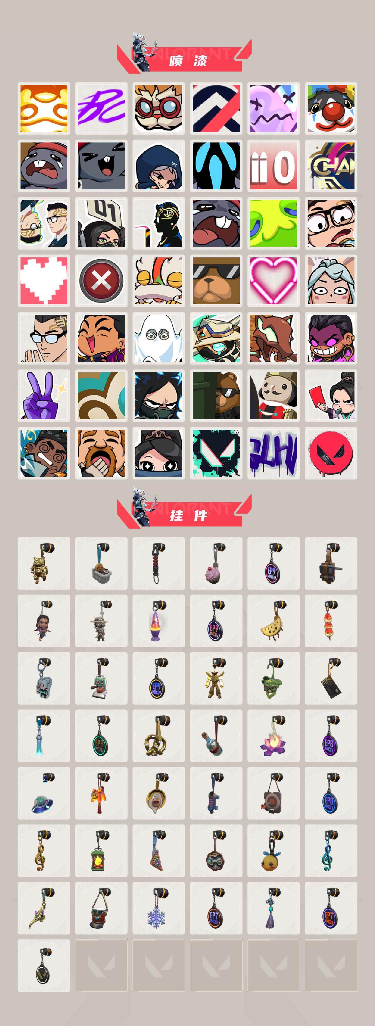 【208】【英雄】:幻棱,炼狱,维斯,暮蝶,钛狐,壹决,铁臂,捷风,雷兹,幽影,不死鸟,贤者,猎枭,蝰蛇,零,芮娜,奇乐,尚勃勒,霓虹,斯凯,夜露,星礈,k/o,海神,盖可,黑梦,钢锁 【近战 武器】:近战武器-穿花蝴蝶,近战武器-紫金爪刀,近战武器-rgx 11z pro//3.0 爪刀,近战武器-未来开拓者,近战武器-巨神铁甲 短剑,近战武器-弧光异彩 军刀,近战武器-沙尘幻旅 匕首,近战武器-天御刀 【狂徒】:狂徒-光明哨兵,狂徒-归零者,狂徒-堕天遗武,狂徒-盖亚的复仇,狂徒-弧光异彩,狂徒-沙尘幻旅 【幻影】:幻影-噬源兽防卫工程 【戍卫】:戍卫-彩梦之城,戍卫-萌彩剪影,戍卫-沙场老兵 【獠犬】:獠犬-归零者,獠犬-弧光异彩,獠犬-胡桃狂想 【冥驹】:冥驹-归零者,冥驹-冰点凝冻,冥驹-堕天遗武,冥驹-胡桃狂想 【飞将】:飞将-天界神兵,飞将-沙尘幻旅,飞将-信手涂鸦 【战神】:战神-萌彩剪影 【奥丁】:奥丁-信手涂鸦 【判官】:判官-萌彩剪影 【雄鹿】:雄鹿-彩梦之城 【骇灵】:骇灵-沙尘幻旅,骇灵-信手涂鸦 【蜂刺】:蜂刺-弧光异彩,蜂刺-胡桃狂想 【标配】:标配-超能偶像,标配-彩梦之城,标配-艺高胆大 【正义】:正义-掠影,正义-超限闪存,正义-沙尘幻旅,正义-传奇制造,正义-复古浪潮,正义-纳米打击 【鬼魅】:鬼魅-流星兵团,鬼魅-诡秘蛇影,鬼魅-光导纤维,鬼魅-胡桃狂想,鬼魅-灵魂消声者,鬼魅-扑棱扑棱,鬼魅-信手涂鸦,鬼魅-星云暗涌 【狂怒】:狂怒-萌彩剪影 【短炮】:短炮-弧光异彩 【卡面】:终章:激斗汉堡 卡面,进入射程 卡面,《双城之战》拥抱 卡面,精灵大战 卡面,欢迎来到底城 卡面,南瓜盛典 卡面,无畏契约:暮蝶 卡面,修车达人 卡面,正义的化身 卡面,终章:生意人麦宝 卡面,铁之华 卡面,时间到 卡面,最高舞台 卡面,声感陷阱设计图 卡面,风险合作 卡面,梦幻奶茶 卡面,终章:打造专属狂徒 卡面,趁热吃 卡面,无畏契约:尚勃勒 卡面,源能反应 卡面,零点嗅探设计图 卡面,终章:瓦娃脸雪糕 卡面,表象之下 卡面,沙雕爆能器 卡面,无畏契约go!第一卷:芮娜 卡面,清除名单 卡面,无畏契约go!第一卷:零 卡面,终章:同步耍酷 卡面,龍记 卡面,化茧成蝶 卡面,完美调谐 卡面 ,暗呛 卡面,终章:黑影先生的咖啡! 卡面,铁臂vs雷兹 卡面,纪念照 p2 卡面,一击全倒 卡面,黑影先生的咖啡! 卡面,天台狂欢 卡面,胡桃狂想 卡面,沙尘幻旅 卡面,壹决工牌 卡面,萌彩剪影 卡面,势不可挡//k/o 卡面,夯实根基 卡面,"luie" 卡面,热烈欢迎 卡面,铁臂设计图 卡面,代号红色 卡面,冰淇淋店 卡面,新兵报到 卡面,友军火力 卡面,v契约 卡面,无畏契约 卡面 【喷漆】:嗨宝南瓜灯 喷漆,嘭! 喷漆,都算到了 喷漆,控场勿近 喷漆,伤心心 喷漆,小丑猫 喷漆,熊抱 喷漆,超级粉丝 喷漆,捷风差距 喷漆,惊声尖叫 喷漆,拼一呛 喷漆,尚勃勒 喷漆,分身有术 喷漆,我觉得不行 喷漆,致命优雅 喷漆,我的刀呢? 喷漆,uwu 喷漆,新潮流 喷漆,双击点赞 喷漆,买装还是存钱 喷漆,醒狮贺春 喷漆,旅行小熊 喷漆,蕊形灯 喷漆,这招不行了 喷漆,真相只有一个 喷漆,自信满满 喷漆,凌空惊吓 喷漆,再吃最后一口 喷漆,我一个滑铲 喷漆,放手一搏 喷漆,沙尘幻旅 喷漆,萌彩剪影 喷漆,电烫 喷漆,暗中偷瞄 喷漆,胡桃狂想 喷漆,红牌退场 喷漆,爆泉领域 喷漆,老铁困了 喷漆,口袋贤者 喷漆,胜利属于无畏契约 喷漆,glhf 喷漆,无畏契约 喷漆 【挂饰】:终章:猫猫木乃伊 挂饰,悠闲鸡块 挂饰,伞绳 挂饰,《双城之战》小蛋糕 挂饰,第九季//第三幕 纪念币 挂饰,工具腰带 挂饰,无畏契约go!第一卷 芮娜 挂饰,无畏契约go!第一卷 零 挂饰,熔岩灯 挂饰,第九季//第二幕 纪念币 挂饰,终章:这瓜保熟 挂饰,糖葫芦 挂饰,袖珍捷风 挂饰,迷你浓缩 挂饰,第九季//第一幕 纪念币 挂饰,终章:迷你机甲 挂饰,战术河童 挂饰,有事联系 挂饰,荧光棒 挂饰,第八季//第三幕 纪念币 挂饰,终章:扭结饼干 挂饰 ,瓶中信 挂饰,传世莲华 挂饰,第八季//第二幕 纪念币 挂饰 ,天外飞客 挂饰,好运福爪 挂饰,终章:晒出笑脸 挂饰,酷闪轮滑 挂饰,瞄这里 挂饰,第八季//第一幕 纪念币 挂饰,终章:高音谱号 挂饰,再烧一会 挂饰,彩糖面包 挂饰,萌彩剪影 挂饰,针织蜜蜂 挂饰,高音谱号 挂饰,沙尘幻旅 挂饰,胡桃狂想 挂饰,冬日絮语 挂饰,第七季//第三幕 纪念币 挂饰,幸运中国结 挂饰,第七季//第二幕 纪念币 挂饰,无畏契约 纪念币 挂饰