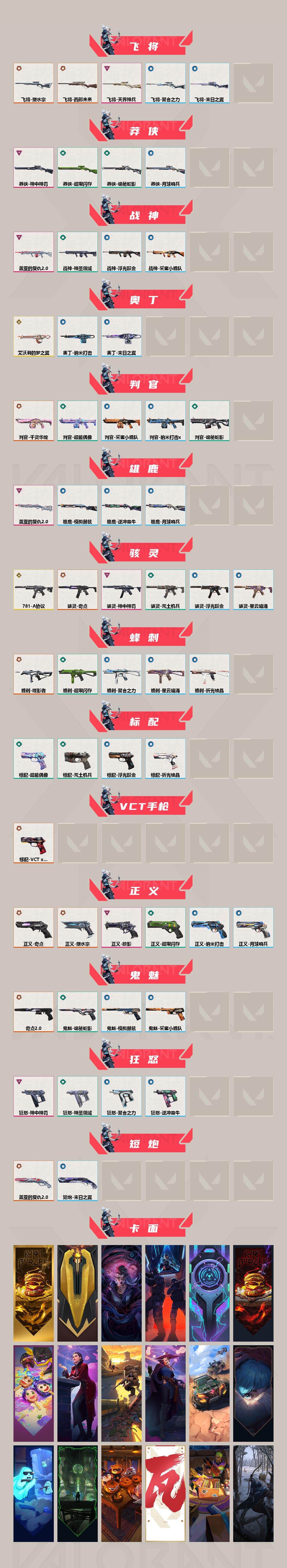 【189】【套装】:2024全球冠军赛套装,奇点//2.0套装,vctxedg 队伍套装,回火礼包:奇点套装,掠影套装,神中神罚套装 【英雄】:幻棱,炼狱,维斯,暮蝶,钛狐,壹决,铁臂,捷风,雷兹,幽影,不死鸟,贤者,猎枭,蝰蛇,零,芮娜,奇乐,尚勃勒,霓虹,斯凯,夜露,星礈,k/o,海神,盖可,黑梦,钢锁 【近战 武器】:近战武器-2024全球冠军赛 战刀,近战武器-神之刃,近战武器-侦察力量 蝴蝶刀,近战武器-剥皮小刀,近战武器-奇点//2.0 蝴蝶刀,近战武器-rgx 11z pro//3.0 爪刀,近战武器-落英飞旋,近战武器-噬影者 簇刃,近战武器-超能偶像 应援棒,近战武器-超限闪存 匕首,近战武器-荒土机兵 热能刀,近战武器-白日幻梦 撬棍,近战武器-影刃,近战武器-诡秘蛇影 军刀 【狂徒】:狂徒-艾沃莉的梦之翼,狂徒-光明哨兵,狂徒-混沌序曲,狂徒-奇点//2.0,狂徒-全息波普//2.0,狂徒-塑水宗,狂徒-掠影,狂徒-盖亚的复仇,狂徒-耀鳞威龙,狂徒-紫阙金琅,狂徒-离子武器//2.0,狂徒-超能偶像,狂徒-荒土机兵,狂徒-诡秘蛇影,狂徒-彩虹魔力小白马 【幻影】:幻影-2024全球冠军赛,幻影-奇点,幻影-千灵华绽,幻影-神中神罚,幻影-超限闪存,幻影-神圣领域,幻影-聚合之力,幻影-纳米打击,幻影-末日之翼 【戍卫】:戍卫-掠影,戍卫-超能偶像,戍卫-浮光跃金,戍卫-逆冲蛮牛,戍卫-折光棱晶 【獠犬】:獠犬-781-a协议,獠犬-神圣领域,獠犬-采蜜小蜂队,獠犬-模拟赫兹,獠犬-逆冲蛮牛 【冥驹】:冥驹-堕天遗武,冥驹-掠影,冥驹-荒土机兵,冥驹-模拟赫兹 【飞将】:飞将-塑水宗,飞将-西部未来,飞将-天界神兵,飞将-聚合之力,飞将-末日之翼 【莽侠】:莽侠-神中神罚,莽侠-超限闪存,莽侠-诡秘蛇影,莽侠-月球哨兵 【战神】:战神-盖亚的复仇//2.0,战神-神圣领域,战神-采蜜小蜂队,战神-浮光跃金 【奥丁】:奥丁-艾沃莉的梦之翼,奥丁-纳米打击,奥丁-末日之翼 【判官】:判官-千灵华绽,判官-超能偶像,判官-诡秘蛇影,判官-采蜜小蜂队,判官-纳米打击x 【雄鹿】:雄鹿-盖亚的复仇//2.0,雄鹿-模拟赫兹,雄鹿-逆冲蛮牛,雄鹿-月球哨兵 【骇灵】:骇灵-781-a协议,骇灵-奇点,骇灵-神中神罚,骇灵-荒土机兵,骇灵-浮光跃金,骇灵-星云暗涌 【蜂刺】:蜂刺-噬影者,蜂刺-超限闪存,蜂刺-聚合之力,蜂刺-星云暗涌,蜂刺-折光棱晶 【标配】:标配-超能偶像,标配-荒土机兵,标配-浮光跃金,标配-折光棱晶 【vct手呛】:标配-vct x edg 【正义】:正义-奇点,正义-塑水宗,正义-掠影,正义-超限闪存,正义-纳米打击,正义-月球哨兵 【鬼魅】:鬼魅-奇点//2.0,鬼魅-诡秘蛇影,鬼魅-采蜜小蜂队,鬼魅-模拟赫兹 【狂怒】:狂怒-神中神罚,狂怒-神圣领域,狂怒-聚合之力,狂怒-逆冲蛮牛 【短炮】:短炮-盖亚的复仇//2.0,短炮-末日之翼 【卡面】:终章:激斗汉堡 卡面,进入射程 卡面,分崩离析 卡面,纳米打击 卡面,抑制技术 卡面,激斗汉堡 卡面,瓦娃脸雪糕 p2 卡面,从黄昏到黎明 卡面,荒土机兵 卡面,银弹猎手 卡面,逆冲蛮牛 卡面,《双城之战》拥抱 卡面,精灵大战 卡面,欢迎来到底城 卡面,南瓜盛典 卡面,vct cn首冠 卡面,唱片的故事 卡面,钢弓与箭弦 卡面,排除故障 卡面,奇点//2.0 卡面,战术桌游 卡面,悠享食光 卡面,修车达人 卡面,热舞环节 卡面,模拟赫兹 卡面,浮光跃金 卡面,超限闪存 卡面,维斯工牌 卡面,正义的化身 卡面,铁之华 卡面,2024全球冠军赛 卡面,失而复得 卡面,时间到 卡面,最高舞台 卡面,复活专家 卡面,归乡 // 蝰蛇 卡面,超能偶像 卡面,生意人麦宝 卡面,声感陷阱设计图 卡面,钢锁工牌 卡面,战术小伙伴的夏日 卡面,采蜜小蜂队 卡面,聚合之力 卡面,梦幻奶茶 卡面,无畏契约go!第一卷:芮娜 卡面,清除名单 卡面,无畏契约go!第一卷:零 卡面,钢锁vs盖可 卡面,代号红色 卡面,冰淇淋店 卡面,新兵报到 卡面,v契约 卡面,无畏契约 卡面 【喷漆】:小小心意 喷漆,战“素”兔 喷漆,宇宙的指引 喷漆,请求重启 喷漆,逆冲蛮牛 喷漆,纳米打击 喷漆,鼻尖上的蝴蝶 喷漆,简笔画黯兽 喷漆,独守蝰腹 喷漆,他们将落荒而逃 喷漆,通缉:战术企鹅 喷漆,荒土机兵 喷漆,别挡我吃球! 喷漆,嗨宝南瓜灯 喷漆,嘭! 喷漆,都算到了 喷漆,控场勿近 喷漆,皮蛋呼呼 喷漆,像素星礈 喷漆,图谋不轨的零 喷漆,小丑猫 喷漆,模拟赫兹 喷漆,高丽风情小熊 喷漆,奇点//2.0 喷漆,蹲到一个 喷漆,全力集中 喷漆,超限闪存 喷漆,rua一下 喷漆,熊抱 喷漆,蛋糕还是爆能器? 喷漆,高丽风情小虎 喷漆,记在小本本 喷漆,防弹企鹅 喷漆,高丽风情小蛙 喷漆,2024全球冠军赛 喷漆,又被闪了 喷漆,终极羞辱 喷漆,超级粉丝 喷漆,黯兽卖萌 喷漆,捷风差距 喷漆,惊声尖叫 喷漆,2021冠军巡回赛花火 喷漆,五人成星 喷漆,超能偶像 喷漆,放我出去 喷漆,掩护我 喷漆,大佬发呛 喷漆,边缘试探 喷漆,拼一呛 喷漆,聚合之力 喷漆,采蜜小蜂队 喷漆,梦幻小队 喷漆,五个全都齐了 喷漆,买装还是存钱 喷漆,酷熊冲浪 喷漆,无畏契约go!第一卷:捷风 喷漆,真相只有一个 喷漆,自信满满 喷漆,胜利属于无畏契约 喷漆,glhf 喷漆,无畏契约 喷漆 【挂饰】:终章:猫猫木乃伊 挂饰,荒土机兵 挂饰,悠闲鸡块 挂饰,猫猫木乃伊 挂饰,水壶 挂饰,纳米打击 挂饰,逆冲蛮牛 挂饰,可爱糖糖 挂饰,伞绳 挂饰,《双城之战》小蛋糕 挂饰,第九季//第三幕 纪念币 挂饰,拳击战术熊 挂饰,工具腰带 挂饰,无畏契约go!第一卷 芮娜 挂饰,无畏契约go!第一卷 零 挂饰,暗藏猫腻 挂饰,高丽风情 挂饰,奇点//2.0 挂饰,鱼骨头 挂饰,熔岩灯 挂饰,超限闪