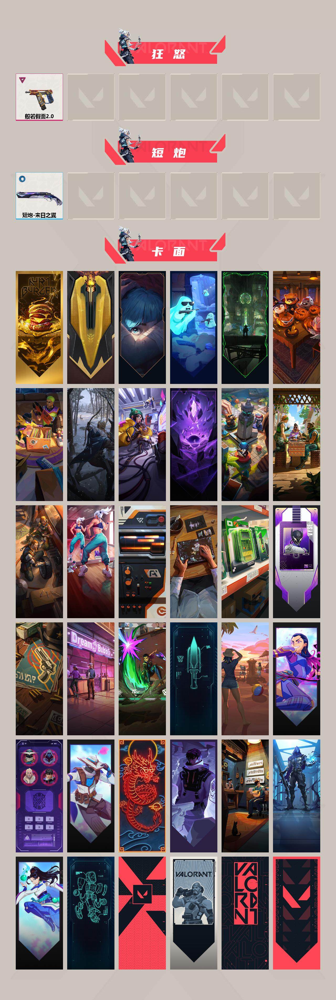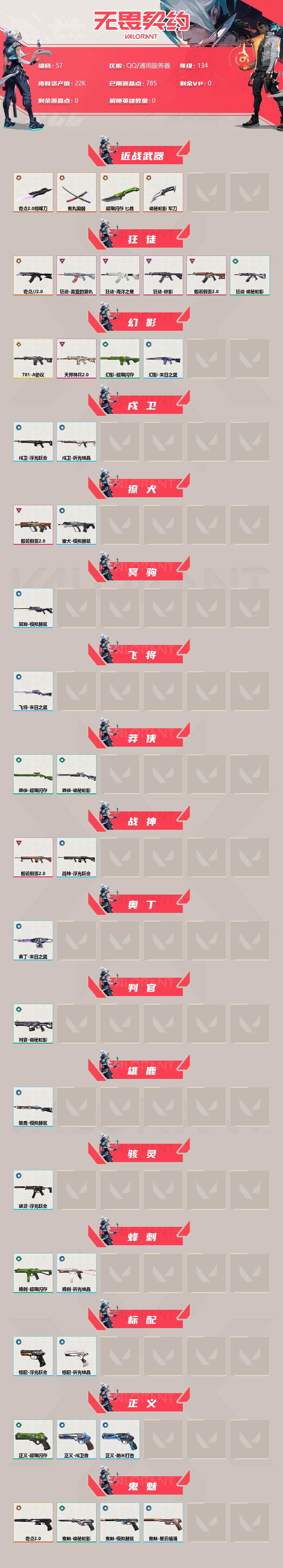 【57】【套装】:奇点//2.0套装,般若假面//2.0套装 【英雄】:幻棱,炼狱,维斯,暮蝶,钛狐,壹决,铁臂,捷风,雷兹,幽影,不死鸟,贤者,猎枭,蝰蛇,零,芮娜,奇乐,尚勃勒,霓虹,斯凯,夜露,星礈,k/o,海神,盖可,黑梦,钢锁 【近战 武器】:近战武器-奇点//2.0 蝴蝶刀,近战武器-鬼丸国纲,近战武器-超限闪存 匕首,近战武器-诡秘蛇影 军刀 【狂徒】:狂徒-奇点//2.0,狂徒-般若假面//2.0,狂徒-掠影,狂徒-盖亚的复仇,狂徒-海洋之星,狂徒-诡秘蛇影 【幻影】:幻影-781-a协议,幻影-天界神兵//2.0,幻影-超限闪存,幻影-末日之翼 【戍卫】:戍卫-浮光跃金,戍卫-折光棱晶 【獠犬】:獠犬-般若假面//2.0,獠犬-模拟赫兹 【冥驹】:冥驹-模拟赫兹 【飞将】:飞将-末日之翼 【莽侠】:莽侠-超限闪存,莽侠-诡秘蛇影 【战神】:战神-般若假面//2.0,战神-浮光跃金 【奥丁】:奥丁-末日之翼 【判官】:判官-诡秘蛇影 【雄鹿】:雄鹿-模拟赫兹 【骇灵】:骇灵-浮光跃金 【蜂刺】:蜂刺-超限闪存,蜂刺-折光棱晶 【标配】:标配-浮光跃金,标配-折光棱晶 【正义】:正义-超限闪存,正义-纳米打击,正义-戍卫者 【鬼魅】:鬼魅-奇点//2.0,鬼魅-诡秘蛇影,鬼魅-模拟赫兹,鬼魅-星云暗涌 【狂怒】:狂怒-般若假面//2.0 【短炮】:短炮-末日之翼 【卡面】:终章:激斗汉堡 卡面,进入射程 卡面,《双城之战》拥抱 卡面,精灵大战 卡面,欢迎来到底城 卡面,南瓜盛典 卡面,唱片的故事 卡面,钢弓与箭弦 卡面,排除故障 卡面,奇点//2.0 卡面,战术桌游 卡面,悠享食光 卡面,修车达人 卡面,热舞环节 卡面,模拟赫兹 卡面,浮光跃金 卡面,超限闪存 卡面,维斯工牌 卡面,正义的化身 卡面,梦幻奶茶 卡面,源能反应 卡面,零点嗅探设计图 卡面,沙雕爆能器 卡面,无畏契约go!第一卷:芮娜 卡面,清除名单 卡面,无畏契约go!第一卷:零 卡面,龍记 卡面,逆向独行 卡面 ,完美调谐 卡面 ,暗呛 卡面,无畏契约go!第一卷:贤者 卡面,铁臂设计图 卡面,代号红色 卡面,新兵报到 卡面,v契约 卡面,无畏契约 卡面 【喷漆】:嗨宝南瓜灯 喷漆,嘭! 喷漆,都算到了 喷漆,控场勿近 喷漆,皮蛋呼呼 喷漆,像素星礈 喷漆,图谋不轨的零 喷漆,小丑猫 喷漆,模拟赫兹 喷漆,高丽风情小熊 喷漆,奇点//2.0 喷漆,蹲到一个 喷漆,全力集中 喷漆,超限闪存 喷漆,rua一下 喷漆,熊抱 喷漆,高丽风情小虎 喷漆,记在小本本 喷漆,防弹企鹅 喷漆,高丽风情小蛙 喷漆,超级粉丝 喷漆,捷风差距 喷漆,我觉得不行 喷漆,我的刀呢? 喷漆,霓光四射 喷漆,uwu 喷漆,新潮流 喷漆,双击点赞 喷漆,买装还是存钱 喷漆,醒狮贺春 喷漆,旅行小熊 喷漆,蕊形灯 喷漆,放下武器 喷漆,老铁困了 喷漆,胜利属于无畏契约 喷漆,glhf 喷漆,无畏契约 喷漆 【挂饰】:终章:猫猫木乃伊 挂饰,悠闲鸡块 挂饰,伞绳 挂饰,《双城之战》小蛋糕 挂饰,第九季//第三幕 纪念币 挂饰,拳击战术熊 挂饰,工具腰带 挂饰,无畏契约go!第一卷 芮娜 挂饰,无畏契约go!第一卷 零 挂饰,暗藏猫腻 挂饰,高丽风情 挂饰,奇点//2.0 挂饰,熔岩灯 挂饰,超限闪存 挂饰,迷你k/o 挂饰,模拟赫兹 挂饰,第九季//第二幕 纪念币 挂饰,袖珍捷风 挂饰,第九季//第一幕 纪念币 挂饰,战术河童 挂饰,荧光棒 挂饰,第八季//第三幕 纪念币 挂饰,瓶中信 挂饰,传世莲华 挂饰,第八季//第二幕 纪念币 挂饰 ,天外飞客 挂饰,好运福爪 挂饰,酷闪轮滑 挂饰,瞄这里 挂饰,第八季//第一幕 纪念币 挂饰,第七季//第三幕 纪念币 挂饰,无畏契约 纪念币 挂饰