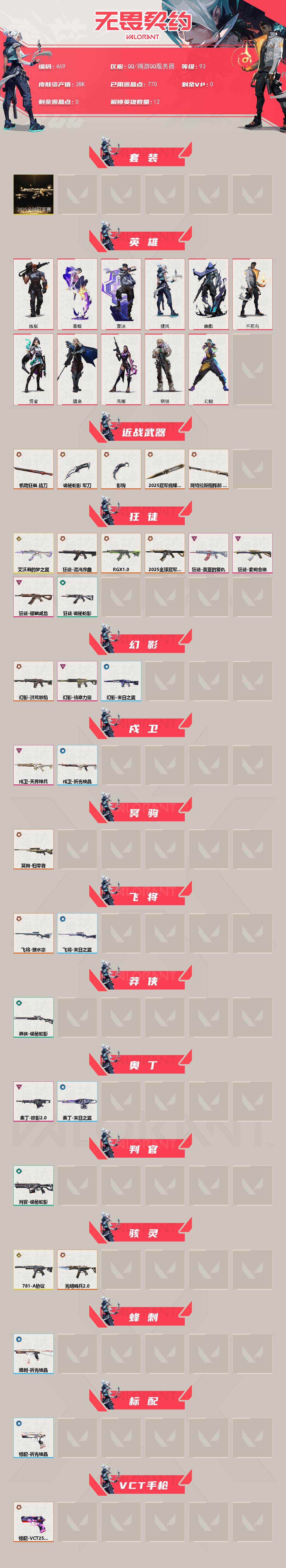 [14254036]【套装】:2025全球冠军赛套装 【英雄】:幻棱,炼狱,暮蝶,壹决,捷风,幽影,不死鸟,贤者,猎枭,芮娜,钢锁 【近战 武器】:近战武器-2025全球冠军赛 蝴蝶刀,近战武器-影钩,近战武器-机动狂飙 战刀,近战武器-诡秘蛇影 军刀,近战武器-阿特拉斯指挥部 甩棍 【狂徒】:狂徒-艾沃莉的梦之翼,狂徒-2025全球冠军赛,狂徒-混沌序曲,狂徒-rgx 11z pro,狂徒-盖亚的复仇,狂徒-耀鳞威龙,狂徒-紫阙金琅,狂徒-诡秘蛇影 【幻影】:幻影-洪荒怒焰,幻影-侦察力量,幻影-末日之翼 【戍卫】:戍卫-天界神兵,戍卫-折光棱晶 【冥驹】:冥驹-归零者 【飞将】:飞将-塑水宗,飞将-末日之翼 【莽侠】:莽侠-诡秘蛇影 【奥丁】:奥丁-掠影//2.0,奥丁-末日之翼 【判官】:判官-诡秘蛇影 【骇灵】:骇灵-781-a协议,骇灵-光明哨兵//2.0 【蜂刺】:蜂刺-折光棱晶 【标配】:标配-折光棱晶 【vct手呛】:标配-vct25 x prx 【正义】:正义-塑水宗 【鬼魅】:鬼魅-超时空卫队,鬼魅-诡秘蛇影 【短炮】:短炮-末日之翼 【卡面】:无畏契约go!第一卷:芮娜 卡面,无畏契约go!第一卷:零 卡面,代号红色 卡面,新兵报到 卡面,v契约 卡面,无畏契约 卡面 【喷漆】:黯兽卖萌 喷漆,边缘试探 喷漆,霓光四射 喷漆,情绪控制 喷漆,铁臂尴尬 喷漆,买装还是存钱 喷漆,松叶 喷漆,旅行小熊 喷漆,胜利属于无畏契约 喷漆,glhf 喷漆,无畏契约 喷漆 【挂饰】:无畏契约go!第一卷 芮娜 挂饰,无畏契约go!第一卷 零 挂饰,薰衣草之心 挂饰,z世代特饮 挂饰,天外飞客 挂饰,海豹的认可 挂饰,无畏契约 纪念币 挂饰