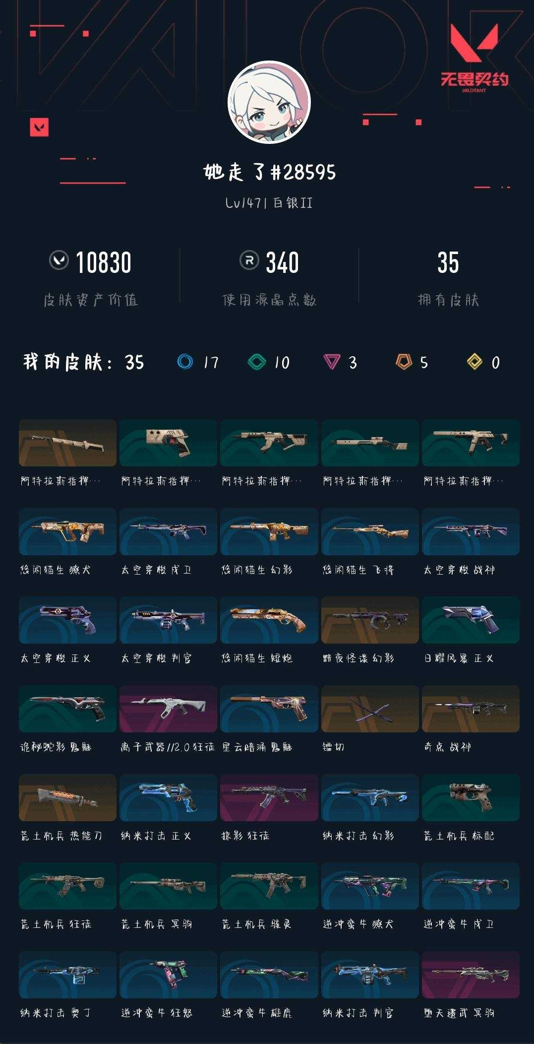 【无畏契约】【yhwww6659】等级:147,已用无畏点10830,已用源晶点340,橙皮:幻影-黯夜怪谈|战神-奇点|近战-荒土机兵 热能刀|近战-镭切|近战-阿特拉斯指挥部 甩棍__紫皮:冥驹-堕天遗武|狂徒-掠影|狂徒-离子武器2.0__段位:白银__蓝皮:判官-纳米打击|正义-纳米打击|奥丁-纳米打击|幻影-纳米打击|雄鹿-逆冲蛮牛|狂怒-逆冲蛮牛|戍卫-逆冲蛮牛|獠犬-逆冲蛮牛|鬼魅-星云暗涌|正义-太空穿梭|战神-太空穿梭|判官-太空穿梭|戍卫-太空穿梭|骇灵-阿特拉斯指挥部|莽侠-阿特拉斯指挥部|标配-阿特拉斯指挥部|狂徒-阿特拉斯指挥部__绿皮:狂徒-荒土机兵|标配-荒土机兵|骇灵-荒土机兵|冥驹-荒土机兵|鬼魅-诡秘蛇影|正义-日耀风暴|短炮-悠闲猫生|飞将-悠闲猫生|幻影-悠闲猫生|獠犬-悠闲猫生__英雄:暮蝶|盖可|霓虹|壹决|k/o|夜露|海神|炼狱|铁臂|贤者|猎枭|钛狐|芮娜|零|捷风|不死鸟|幻棱