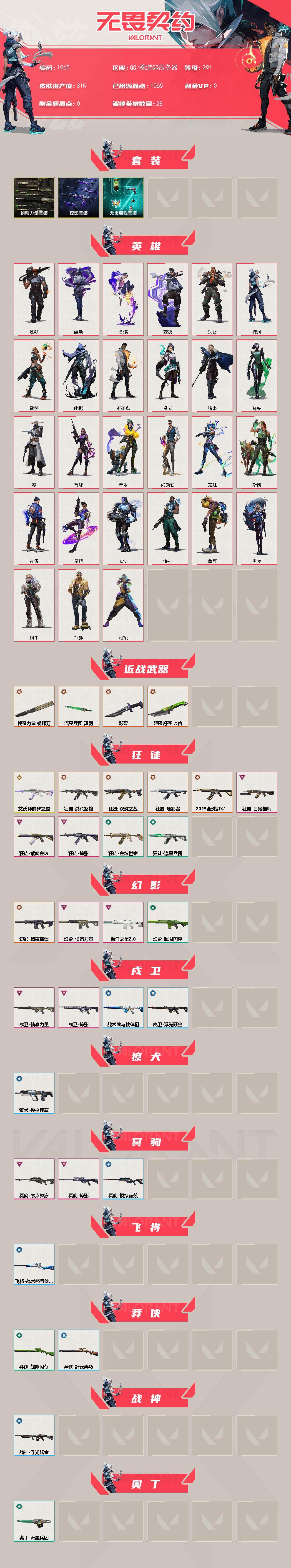 【1065】xq27706 【套装】:掠影套装,侦察力量套装,无畏启程套装 【英雄】:幻棱,炼狱,维斯,暮蝶,钛狐,壹决,铁臂,捷风,雷兹,幽影,不死鸟,贤者,猎枭,蝰蛇,零,芮娜,奇乐,尚勃勒,霓虹,斯凯,夜露,星礈,k/o,海神,盖可,黑梦,钢锁 【近战 武器】:近战武器-侦察力量 蝴蝶刀,近战武器-流星兵团 短剑,近战武器-超限闪存 匕首,近战武器-影刃 【狂徒】:狂徒-艾沃莉的梦之翼,狂徒-2025全球冠军赛,狂徒-洪荒怒焰,狂徒-双城之战,狂徒-噬影者,狂徒-掠影,狂徒-日冕雄师,狂徒-紫阙金琅,狂徒-金纹世家,狂徒-流星兵团 【幻影】:幻影-黯夜怪谈,幻影-侦察力量,幻影-海洋之星//2.0,幻影-超限闪存 【戍卫】:戍卫-掠影,戍卫-侦察力量,戍卫-浮光跃金,戍卫-战术熊与伙伴们 【獠犬】:獠犬-模拟赫兹 【冥驹】:冥驹-冰点凝冻,冥驹-掠影,冥驹-模拟赫兹 【飞将】:飞将-战术熊与伙伴们 【莽侠】:莽侠-超限闪存,莽侠-纤云弄巧 【战神】:战神-浮光跃金 【奥丁】:奥丁-流星兵团 【雄鹿】:雄鹿-模拟赫兹 【骇灵】:骇灵-侦察力量,骇灵-流星兵团,骇灵-浮光跃金 【蜂刺】:蜂刺-超限闪存,蜂刺-纤云弄巧 【标配】:标配-超能偶像,标配-超能冲撞,标配-浮光跃金,标配-战术熊与伙伴们 【vct手呛】:标配-vct x f 【正义】:正义-掠影,正义-超限闪存,正义-复古浪潮,正义-纳米打击,正义-纤云弄巧 【鬼魅】:鬼魅-侦察力量,鬼魅-流星兵团,鬼魅-诡秘蛇影,鬼魅-模拟赫兹,鬼魅-数码咒术,鬼魅-星云暗涌 【狂怒】:狂怒-战术熊与伙伴们 【短炮】:短炮-弧光异彩,短炮-纤云弄巧 【卡面】:终章:激斗汉堡 卡面,进入射程 卡面,银弹猎手 卡面,《双城之战》拥抱 卡面,精灵大战 卡面,欢迎来到底城 卡面,南瓜盛典 卡面,唱片的故事 卡面,钢弓与箭弦 卡面,排除故障 卡面,战术桌游 卡面,悠享食光 卡面,修车达人 卡面,模拟赫兹 卡面,浮光跃金 卡面,超限闪存 卡面,维斯工牌 卡面,正义的化身 卡面,终章:生意人麦宝 卡面,铁之华 卡面,时间到 卡面,最高舞台 卡面,声感陷阱设计图 卡面,梦幻奶茶 卡面,终章:打造专属狂徒 卡面,趁热吃 卡面,西装暴徒 卡面,失控边缘 卡面,哨卫者之领域 卡面,艺无止境//全球冠军赛 卡面,暮蝶工牌 卡面,战术熊与伙伴们 卡面,源能反应 卡面,流星兵团 卡面,纤云弄巧 卡面,暂别喧嚣 卡面,打造专属狂徒 卡面,零点嗅探设计图 卡面,终章:瓦娃脸雪糕 卡面,表象之下 卡面,沙雕爆能器 卡面,无畏契约go!第一卷:芮娜 卡面,清除名单 卡面,无畏契约go!第一卷:零 卡面,龍记 卡面,无垠星环 卡面,《双城之战》金克丝 卡面,完美调谐 卡面 ,暗呛 卡面,纪念照 p2 卡面,夯实根基 卡面,"luie" 卡面,热烈欢迎 卡面,铁臂设计图 卡面,代号红色 卡面,冰淇淋店 卡面,新兵报到 卡面,友军火力 卡面,v契约 卡面,无畏契约 卡面 【喷漆】:嗨宝南瓜灯 喷漆,嘭! 喷漆,都算到了 喷漆,控场勿近 喷漆,皮蛋呼呼 喷漆,像素星礈 喷漆,图谋不轨的零 喷漆,小丑猫 喷漆,模拟赫兹 喷漆,高丽风情小熊 喷漆,蹲到一个 喷漆,全力集中 喷漆,超限闪存 喷漆,rua一下 喷漆,熊抱 喷漆,高丽风情小虎 喷漆,记在小本本 喷漆,防弹企鹅 喷漆,高丽风情小蛙 喷漆,超级粉丝 喷漆,捷风差距 喷漆,惊声尖叫 喷漆,拼一呛 喷漆,加油!加油! 喷漆,开心到爆炸 喷漆,皮蛋萌舞 喷漆,我觉得不行 喷漆,头号粉丝 喷漆,吸一口快乐 喷漆,永远的答案 喷漆,再来一次? 喷漆,别挡我的路! 喷漆,我的刀呢? 喷漆,当然可以 喷漆,流星兵团 喷漆,战术熊与伙伴们 喷漆,禁止喷漆 喷漆,纤云弄巧 喷漆,uwu 喷漆,新潮流 喷漆,双人比心 喷漆,双击点赞 喷漆,买装还是存钱 喷漆,醒狮贺春 喷漆,酷熊冲浪 喷漆,无畏契约go!第一卷:捷风 喷漆,旅行小熊 喷漆,静电火花 喷漆 ,蕊形灯 喷漆,凌空惊吓 喷漆,老铁困了 喷漆,口袋贤者 喷漆,胜利属于无畏契约 喷漆,glhf 喷漆,无畏契约 喷漆 【挂饰】:v25第三幕:超凡 挂饰,终章:猫猫木乃伊 挂饰,悠闲鸡块 挂饰,伞绳 挂饰,《双城之战》小蛋糕 挂饰,第九季//第三幕 纪念币 挂饰,拳击战术熊 挂饰,工具腰带 挂饰,无畏契约go!第一卷 芮娜 挂饰,无畏契约go!第一卷 零 挂饰,暗藏猫腻 挂饰,高丽风情 挂饰,熔岩灯 挂饰,超限闪存 挂饰,迷你k/o 挂饰,模拟赫兹 挂饰,第九季//第二幕 纪念币 挂饰,薰衣草之心 挂饰,终章:这瓜保熟 挂饰,糖葫芦 挂饰,袖珍捷风 挂饰,迷你浓缩 挂饰,z世代特饮 挂饰,第九季//第一幕 纪念币 挂饰,终章:迷你机甲 挂饰,犯困的布鲁诺 挂饰,战术河童 挂饰,改变者全球冠军赛奖杯 挂饰,招财猫熊 挂饰,迷你机甲 挂饰,荧光棒 挂饰,章鱼烧先生 挂饰,流星兵团 挂饰,云开见日 挂饰,第八季//第三幕 纪念币 挂饰,终章:扭结饼干 挂饰 ,瓶中信 挂饰,传世莲华 挂饰,第八季//第二幕 纪念币 挂饰 ,天外飞客 挂饰,好运福爪 挂饰,《双城之战》魄罗 挂饰,酷闪轮滑 挂饰,瞄这里 挂饰,第八季//第一幕 纪念币 挂饰,彩糖面包 挂饰,冬日絮语 挂饰,第七季//第三幕 纪念币 挂饰,幸运中国结 挂饰,第七季//第二幕 纪念币 挂饰,无畏契约 纪念币 挂饰