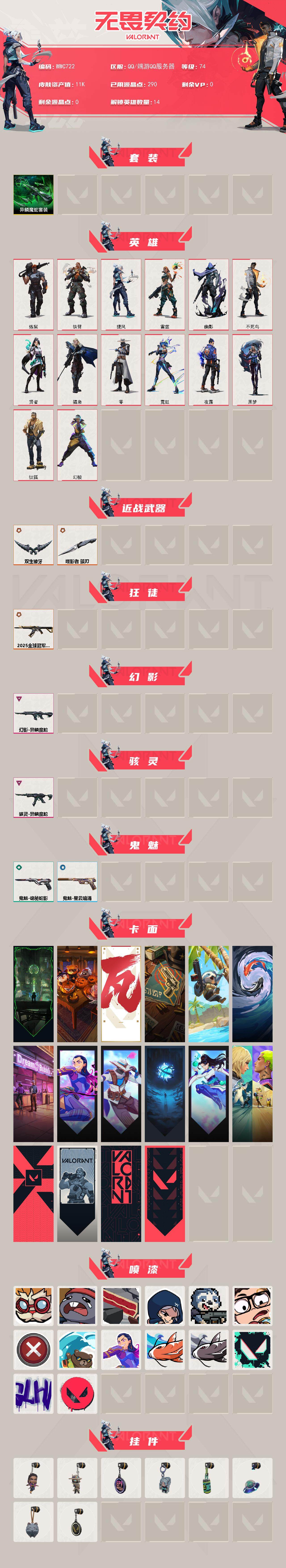 【wwc722】终极3/卓越2/皮肤10/等级74/段位:未定级/异鳞魔蛇/幻棱/炼狱/钛狐/铁臂/捷风/雷兹/幽影/不死鸟/贤者/猎枭/零/霓虹/夜露/黑梦/噬影者簇刃/双生獠牙/狂徒-2025全球冠军赛/异鳞魔蛇-幻影/异鳞魔蛇-骇灵/鬼魅-诡秘蛇影/鬼魅-星云暗涌/欢迎来到底城 卡面/南瓜盛典 卡面/vct cn首冠 卡面/正义的化身 卡面/树懒大作战 卡面/红鳞松叶 卡面/梦幻