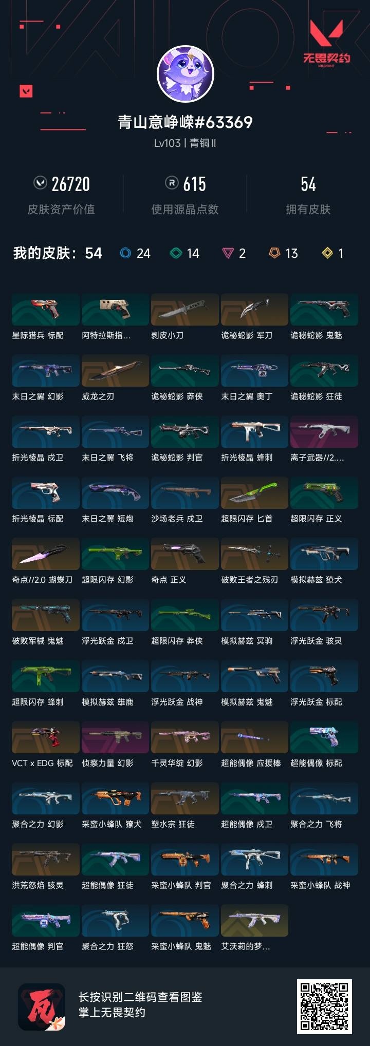 [14266810]13橙皮 1金皮 2紫皮 54皮肤 21英雄 85卡面 615已用源晶 青铜段位 【近战武器皮肤】:诡秘蛇影蝴蝶刀-奇点//2.0匕首-超限闪存剥皮小刀威龙之刃破败王者之残刃超能偶像 应援棒 【佩呛皮肤】:正义-奇点鬼魅-破败军械标配-vctxedg 【冲锋呛皮