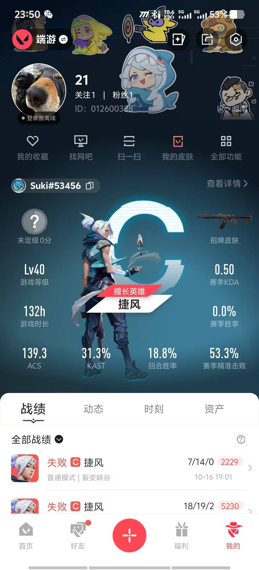 [14267080]8橙皮 2紫皮 23皮肤 14英雄 41卡面 315已用源晶 未定级段位 【亮点皮肤】:幻影-2022全球冠军赛蝴蝶刀-2022全球冠军赛 【套装】:2022全球冠军赛 【近战武器皮肤】:未来开拓者 【佩呛皮肤】:标配-vct25xlev 【步呛皮肤】:狂徒-混沌序曲狂徒-