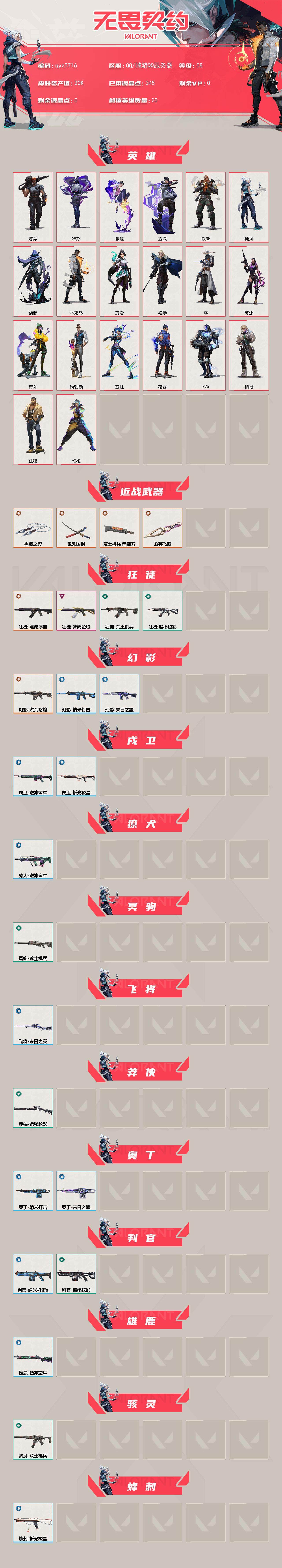 黑波-恶鬼-落英-混沌ak-qyz7716-近战武器皮肤:-黑波之刃落英飞旋荒土机兵热能刀鬼丸国纲-步呛皮肤:-狂徒-紫阙金琅幻影-洪荒怒焰狂徒-混沌序曲-佩呛皮肤:-鬼魅-破败军械正义-塑水宗标配-电音光谱-亮点:-【qyz7716】【英雄】:幻棱,炼狱,维斯,暮蝶,钛狐,壹决,铁臂,捷风,幽影,不死鸟,贤者,猎枭,零,芮娜,奇乐,尚勃勒,霓虹,夜露,k/o,钢锁【近战-武器】:近战武器-黑波之刃,近战武器-落英飞旋,近战武器-鬼丸国纲,近战武器-荒土机兵-热能刀【狂徒】:狂徒-混沌序曲,狂徒-紫阙金琅,狂徒-荒土机兵,狂徒-诡秘蛇影【幻影】:幻影-洪荒怒焰,幻影-纳米打击,幻影-末日之翼【戍卫】:戍卫-逆冲蛮牛,戍卫-折光棱晶【獠犬】:獠犬-逆冲蛮牛【冥驹】:冥驹-荒土机兵【飞将】:飞将-末日之翼【莽侠】:莽侠-诡秘蛇影【奥丁】:奥丁-纳米打击,奥丁-末日之翼【判官】:判官-诡秘蛇影,判官-纳米打击x【雄鹿】:雄鹿-逆冲蛮牛【骇灵】:骇灵-荒土机兵【蜂刺】:蜂刺-折光棱晶【标配】:标配-电音光谱,标配-荒土机兵,标配-折光棱晶,标配-电音光谱【正义】:正义-塑水宗,正义-纳米打击【鬼魅】:鬼魅-破败军械【狂怒】:狂怒-逆冲蛮牛【短炮】:短炮-末日之翼【卡面】:终章:激斗汉堡-卡面,进入射程-卡面,分崩离析-卡面,纳米打击-卡面,抑制技术-卡面,激斗汉堡-卡面,瓦娃脸雪糕-p2-卡面,从黄昏到黎明-卡面,荒土机兵-卡面,银弹猎手-卡面,逆冲蛮牛-卡面,《双城之战》拥抱-卡面,精灵大战-卡面,欢迎来到底城-卡面,南瓜盛典-卡面,正义的化身-卡面,代号红色-卡面,冰淇淋店-卡面,新兵报到-卡面,v契约-卡面,无畏契约-卡面【喷漆】:小小心意-喷漆,战“素”兔-喷漆,宇宙的指引-喷漆,请求重启-喷漆,逆冲蛮牛-喷漆,纳米打击-喷漆,鼻尖上的蝴蝶-喷漆,简笔画黯兽-喷漆,独守蝰腹-喷漆,他们将落荒而逃-喷漆,通缉:战术企鹅-喷漆,荒土机兵-喷漆,别挡我吃球!-喷漆,嗨宝南瓜灯-喷漆,嘭!-喷漆,都算到了-喷漆,控场勿近-喷漆,胜利属于无畏契约-喷漆,glhf-喷漆,无畏契约-喷漆【挂饰】:终章:猫猫木乃伊-挂饰,荒土机兵-挂饰,悠闲鸡块-挂饰,猫猫木乃伊-挂饰,水壶-挂饰,纳米打击-挂饰,逆冲蛮牛-挂饰,可爱糖糖-挂饰,伞绳-挂饰,《双城