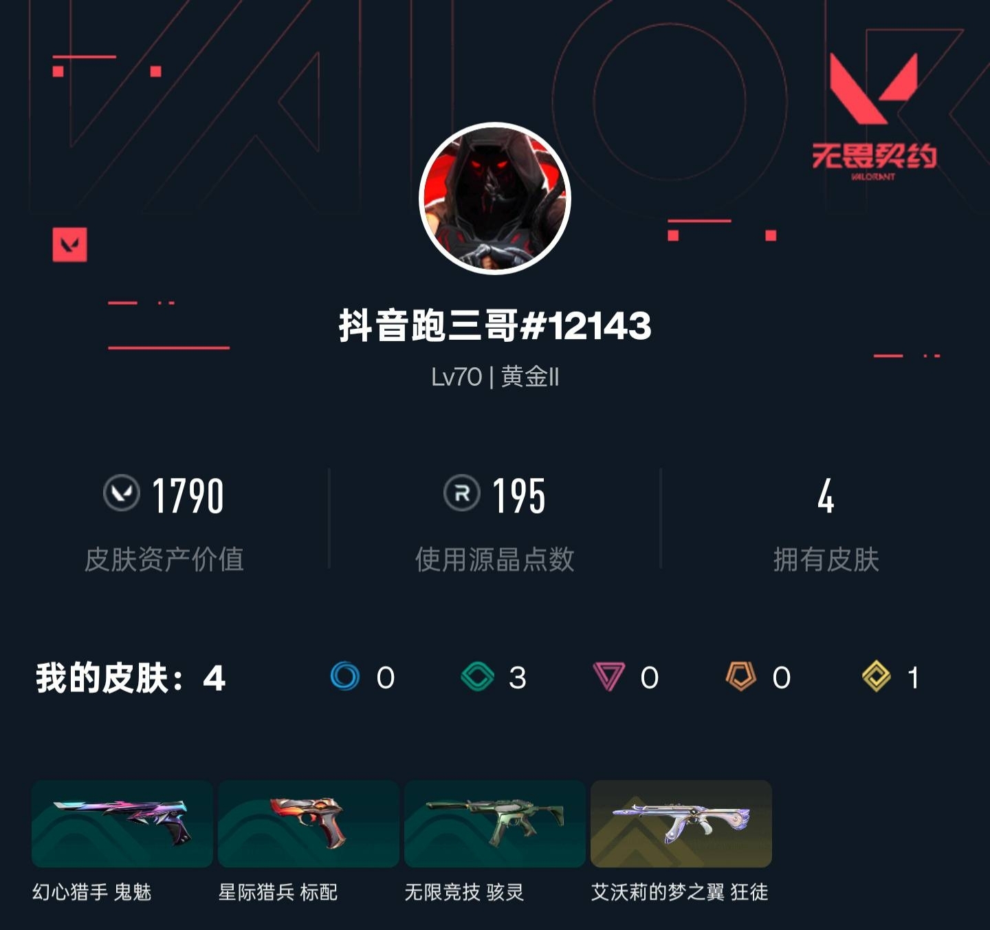【无畏契约】【yhwww6692】等级:70,已用无畏点1790,已用源晶点195,金皮:狂徒-艾沃莉的梦之翼__段位:黄金__绿皮:骇灵-无限竞技|标配-星际猎兵|鬼魅-幻心猎手__英雄:尚勃勒|黑梦|斯凯|暮蝶|盖可|霓虹|壹决|k/o|幽影|夜露|奇乐|炼狱|铁臂|贤者|猎枭|钛狐|芮娜|零|捷风|不死鸟|幻棱|雷兹|禁灭