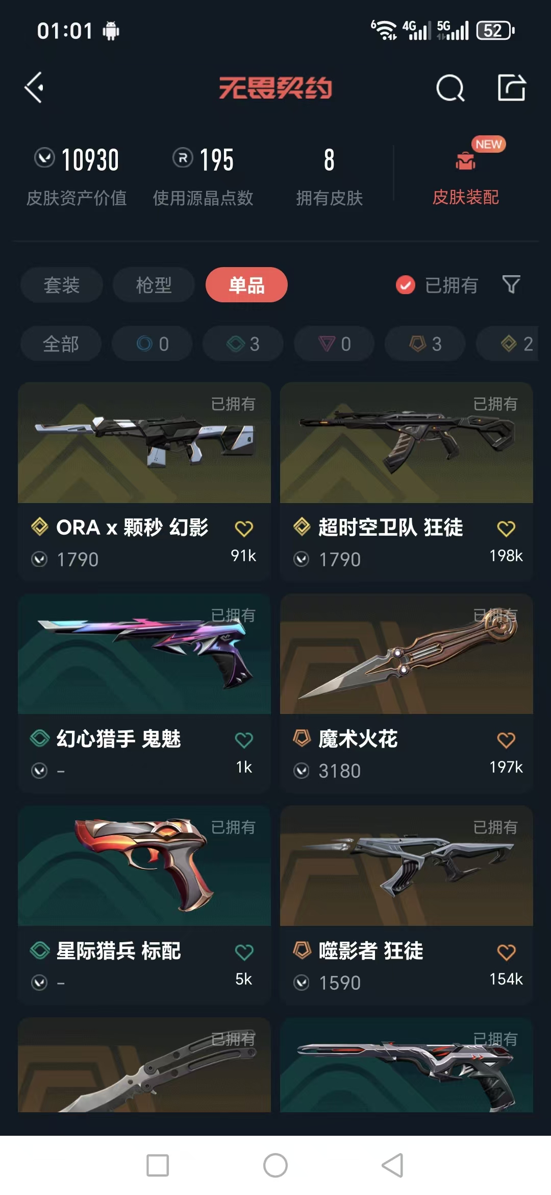 【游戏等级】lv82 【段位】 白银ii 【r点】195 【皮肤总价值】10930 【英雄数量】14 【皮肤数量】8 【挂饰数量】31 【卡面数量】45 【喷漆数量】31 【幻影】幻影-ax颗秒 【狂徒】狂徒-超时空卫队 狂徒-噬影者 【鬼魅】鬼魅-幻心猎手 鬼魅-诡秘蛇影 【近战武器】近战武器-魔术火花 近战武器-穿花蝴蝶 【标配】标配-星际猎兵 "