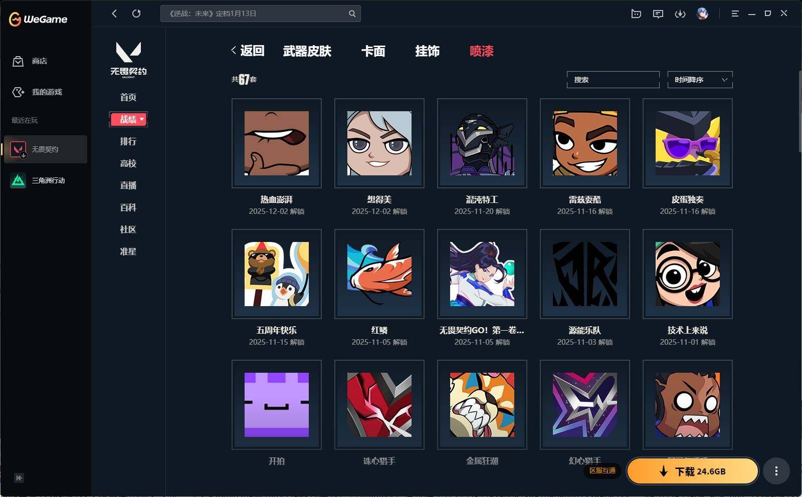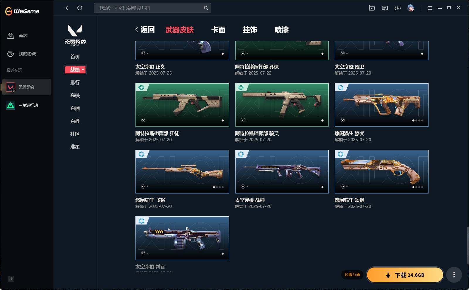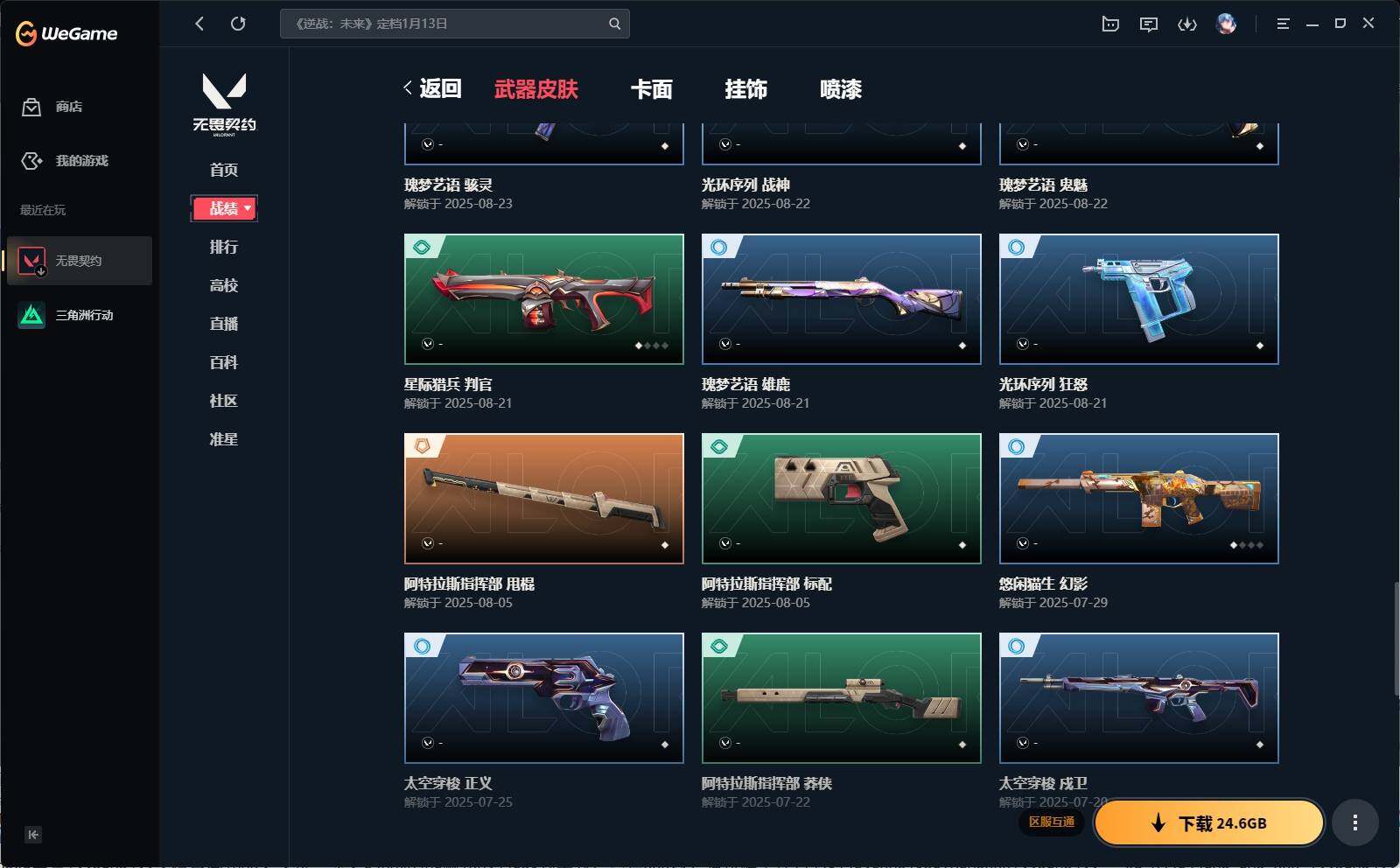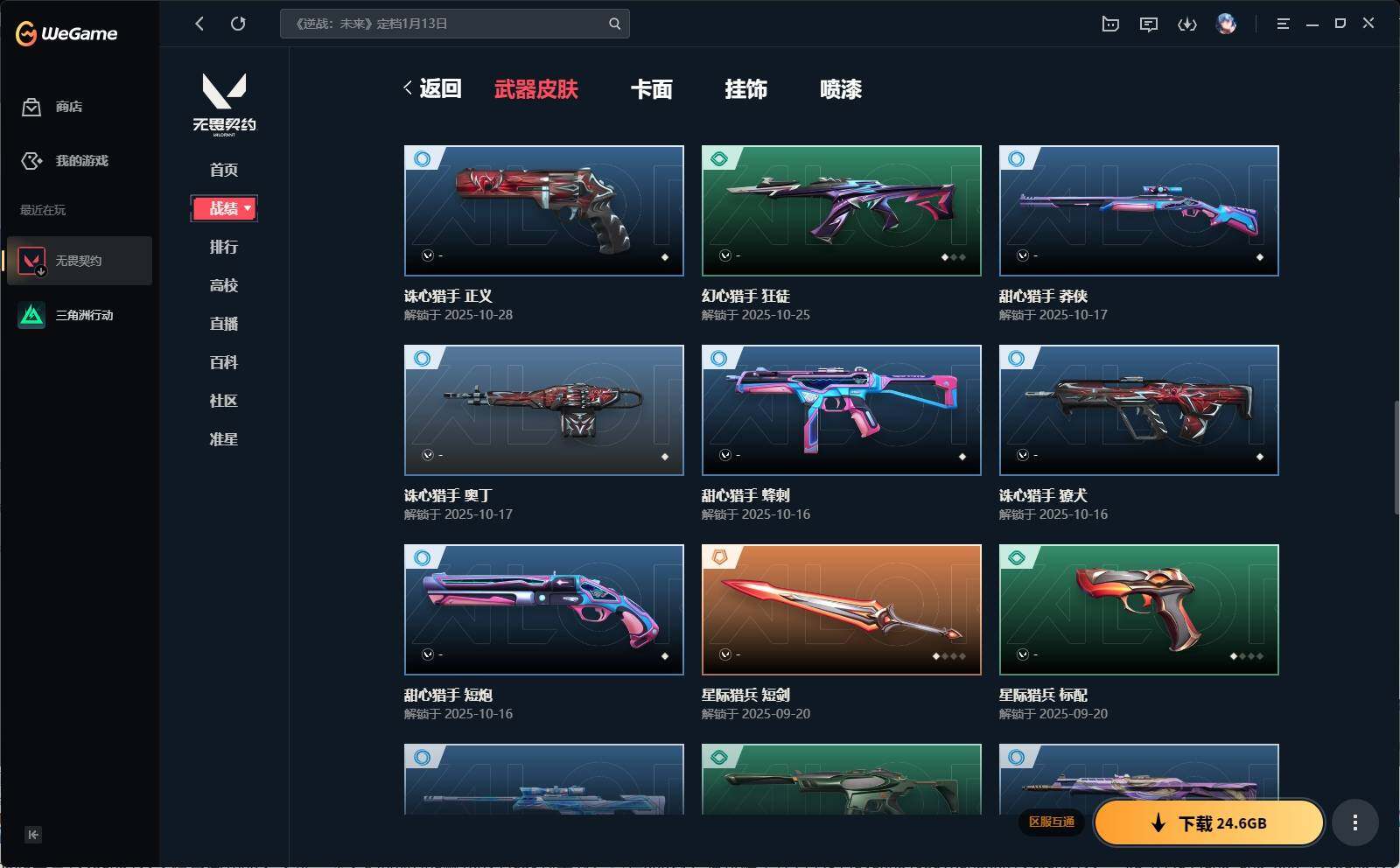 【1077】xq31738 【套装】:2025全球冠军赛套装,掠影//2.0套装 【英雄】:炼狱,暮蝶,壹决,捷风,雷兹,幽影,不死鸟,贤者,猎枭,蝰蛇,零,芮娜,尚勃勒,霓虹,斯凯,夜露,盖可,黑梦 【近战 武器】:近战武器-2025全球冠军赛 蝴蝶刀,近战武器-a x 颗秒 军刀,近战武器-影钩,近战武器-阿特拉斯指挥部 甩棍,近战武器-星际猎兵 短剑 【狂徒】:狂徒-艾沃莉的梦之翼,狂徒-2025全球冠军赛,狂徒-混沌序曲,狂徒-光荣异象,狂徒-盖亚的复仇 【幻影】:幻影-黯夜怪谈,幻影-掠影//2.0 【冥驹】:冥驹-千灵华绽,冥驹-起源 【莽侠】:莽侠-rgx 11z pro//3.0 【奥丁】:奥丁-掠影//2.0 【骇灵】:骇灵-掠影//2.0,骇灵-无限竞技 【vct手呛】:标配-vct25 x blg 【正义】:正义-千灵华绽,正义-末日泡泡 【鬼魅】:鬼魅-掠影//2.0 【卡面】:从黄昏到黎明 卡面,热舞环节 卡面,树懒大作战 卡面,红鳞松叶 卡面,clutch 卡面,无畏契约:尚勃勒 卡面,无畏契约go!第一卷:芮娜 卡面,无畏契约go!第一卷:零 卡面,无垠星环 卡面,《双城之战》金克丝 卡面,钢锁vs盖可 卡面,代号红色 卡面,新兵报到 卡面,v契约 卡面,无畏契约 卡面 【喷漆】:分身有术 喷漆,致命优雅 喷漆,买装还是存钱 喷漆,酷熊冲浪 喷漆,红鳞 喷漆,无畏契约go!第一卷:零 喷漆,无畏契约go!第一卷:贤者 喷漆,胜利属于无畏契约 喷漆,glhf 喷漆,无畏契约 喷漆 【挂饰】:无畏契约go!第一卷 零 挂饰,鱼骨头 挂饰,有事联系 挂饰,天外飞客 挂饰,红鳞松叶 挂饰,无畏契约 纪念币 挂饰