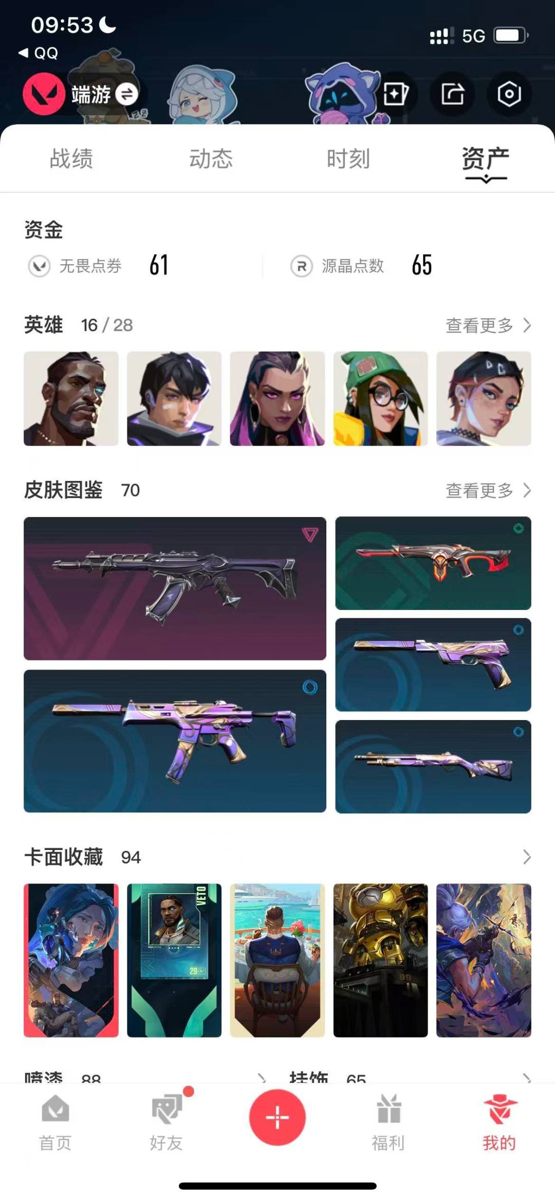 12橙皮 1金皮 9紫皮 70皮肤 16英雄 94卡面 820已用源晶 白银段位 【套装】:掠影2.0套装 【近战武器皮肤】:神之刃阿特拉斯指挥部rgx 11z pro//2.0 蝴蝶刀鬼丸国纲诡秘蛇影星际猎兵 短剑影钩 【佩呛皮肤】:鬼魅-掠影2.0正义-西部未来 【冲锋呛皮肤】: