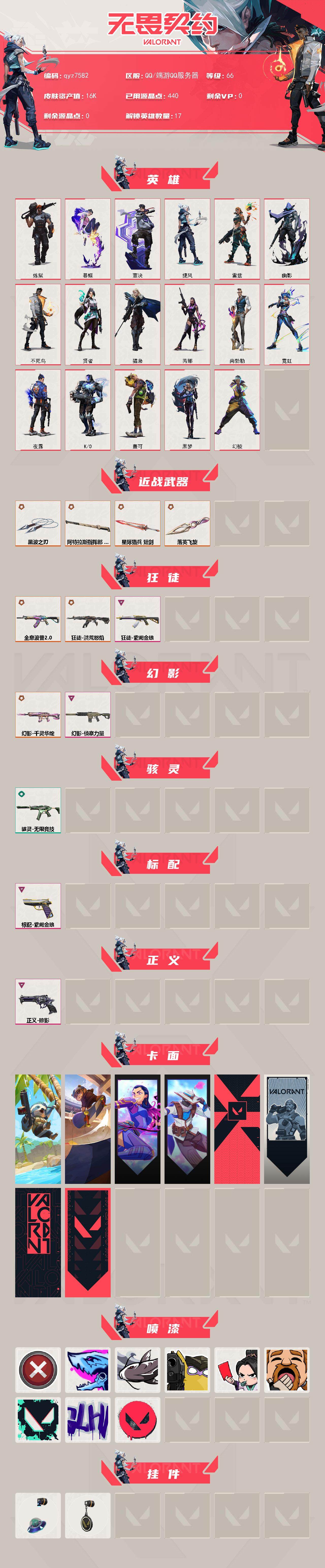 洪荒狂徒-紫金标配-侦查幻影-千灵幻影-掠影正义-全息狂徒-落英飞旋-黑波之刃-紫金狂徒-qyz7582-近战武器皮肤:-黑波之刃落英飞旋-步呛皮肤:-狂徒-紫阙金琅幻影-侦察力量狂徒-洪荒怒焰幻影-千灵华绽狂徒-全息波普//20-佩呛皮肤:-标配-紫阙金琅正义-掠影-亮点:-【qyz7582】洪荒狂徒紫金标配侦查幻影千灵幻影掠影正义-全息狂徒落英飞旋黑波之刃-紫金狂徒-qyz7582-近战武器皮肤:-黑波之刃落英飞旋-步呛皮肤:-狂徒-紫阙金琅幻影-侦察力量狂徒-洪荒怒焰幻影-千灵华绽狂徒-全息波普//20-佩呛皮肤:-标配-紫阙金琅正义-掠影-亮点:-【qyz7582】【英雄】:幻棱,炼狱,暮蝶,壹决,捷风,雷兹,幽影,不死鸟,贤者,猎枭,芮娜,尚勃勒,霓虹,夜露,k/o,盖可,黑梦【近战-武器】:近战武器-黑波之刃,近战武器-落英飞旋,近战武器-阿特拉斯指挥部-甩棍,近战武器-星际猎兵-短剑【狂徒】:狂徒-洪荒怒焰,狂徒-全息波普//20,狂徒-紫阙金琅【幻影】:幻影-千灵华绽,幻影-侦察力量【骇灵】:骇灵-无限竞技【标配】:标配-紫阙金琅【正义】:正义-掠影【卡面】:树懒大作战-卡面,clutch-卡面,无畏契约go!第一卷:芮娜-卡面,无畏契约go!第一卷:零-卡面,代号红色-卡面,新兵报到-卡面,v契约-卡面,无畏契约-卡面【喷漆】:买装还是存钱-喷漆,暴走萝莉-喷漆,松叶-喷漆,放下武器-喷漆,红牌退场-喷漆,老铁困了-喷漆,胜利属于无畏契约-喷漆,glhf-喷漆,无畏契约-喷漆【挂饰】:天外飞客-挂饰,无畏契约-纪念币-挂饰