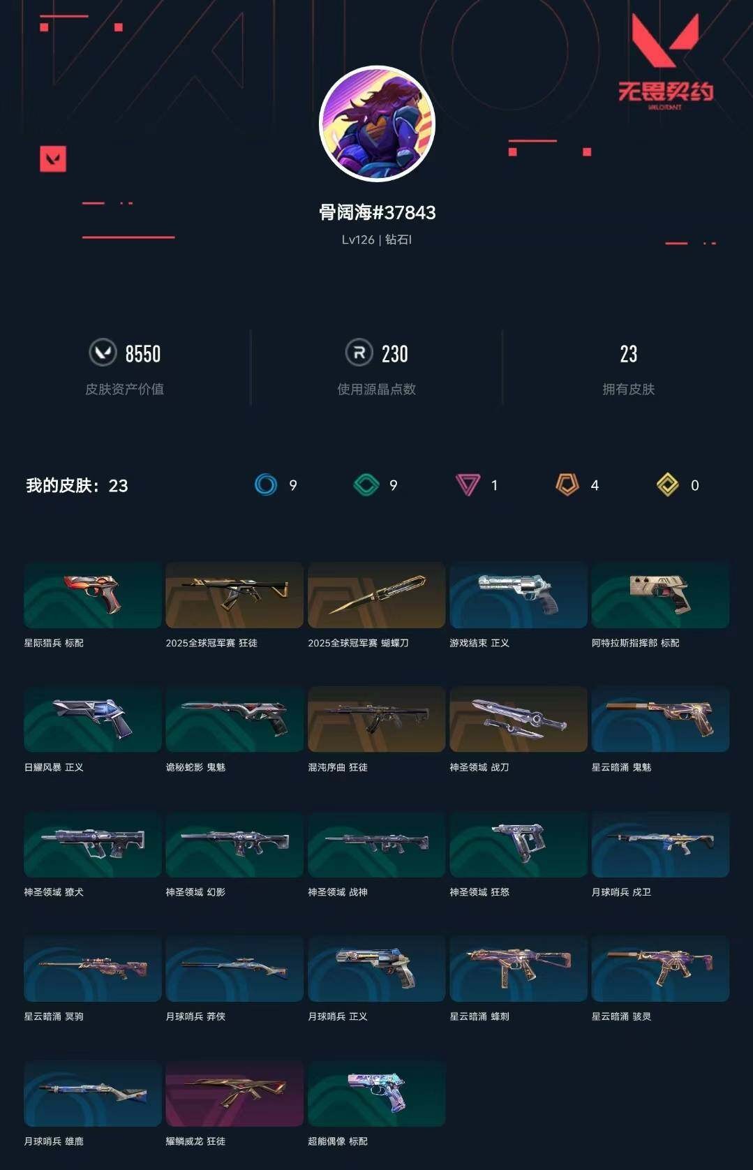 [14350448]【套装】:2025全球冠军赛套装 【英雄】:幻棱,炼狱,维斯,暮蝶,钛狐,壹决,铁臂,捷风,雷兹,幽影,不死鸟,贤者,猎枭,蝰蛇,零,芮娜,奇乐,尚勃勒,霓虹,斯凯,夜露,星礈,k/o,海神,盖可,黑梦,钢锁 【近战 武器】:近战武器-2025全球冠军赛 蝴蝶刀,近战武器-神圣领域 战刀 【狂徒】:狂徒-2025全球冠军赛,狂徒-混沌序曲,狂徒-耀鳞威龙 【幻影】:幻影-神圣领域 【戍卫】:戍卫-月球哨兵 【獠犬】:獠犬-神圣领域 【冥驹】:冥驹-星云暗涌 【莽侠】:莽侠-月球哨兵 【战神】:战神-神圣领域 【雄鹿】:雄鹿-月球哨兵 【骇灵】:骇灵-星云暗涌 【蜂刺】:蜂刺-星云暗涌 【标配】:标配-超能偶像 【正义】:正义-游戏结束,正义-月球哨兵 【鬼魅】:鬼魅-诡秘蛇影,鬼魅-星云暗涌 【狂怒】:狂怒-神圣领域 【卡面】:《双城之战》拥抱 卡面,精灵大战 卡面,欢迎来到底城 卡面,南瓜盛典 卡面,修车达人 卡面,热舞环节 卡面,正义的化身 卡面,终章:生意人麦宝 卡面,铁之华 卡面,时间到 卡面,最高舞台 卡面,声感陷阱设计图 卡面,红鳞松叶 卡面,clutch 卡面,梦幻奶茶 卡面,瓦娃脸雪糕 卡面 ,无畏契约go!第一卷:芮娜 卡面,无畏契约go!第一卷:零 卡面,《双城之战》金克丝 卡面,无畏契约go!第一卷:贤者 卡面,夯实根基 卡面,代号红色 卡面,新兵报到 卡面,v契约 卡面,无畏契约 卡面 【喷漆】:嘭! 喷漆,都算到了 喷漆,控场勿近 喷漆,小丑猫 喷漆,熊抱 喷漆,超级粉丝 喷漆,捷风差距 喷漆,惊声尖叫 喷漆,拼一呛 喷漆,买装还是存钱 喷漆,凌空惊吓 喷漆,胜利属于无畏契约 喷漆,glhf 喷漆,无畏契约 喷漆 【挂饰】:伞绳 挂饰,《双城之战》小蛋糕 挂饰,第九季//第三幕 纪念币 挂饰,工具腰带 挂饰,无畏契约go!第一卷 芮娜 挂饰,无畏契约go!第一卷 零 挂饰,鱼骨头 挂饰,熔岩灯 挂饰,第九季//第二幕 纪念币 挂饰,终章:这瓜保熟 挂饰,糖葫芦 挂饰,袖珍捷风 挂饰,迷你浓缩 挂饰,第九季//第一幕 纪念币 挂饰,天外飞客 挂饰,《双城之战》魄罗 挂饰,无畏契约 纪念币 挂饰