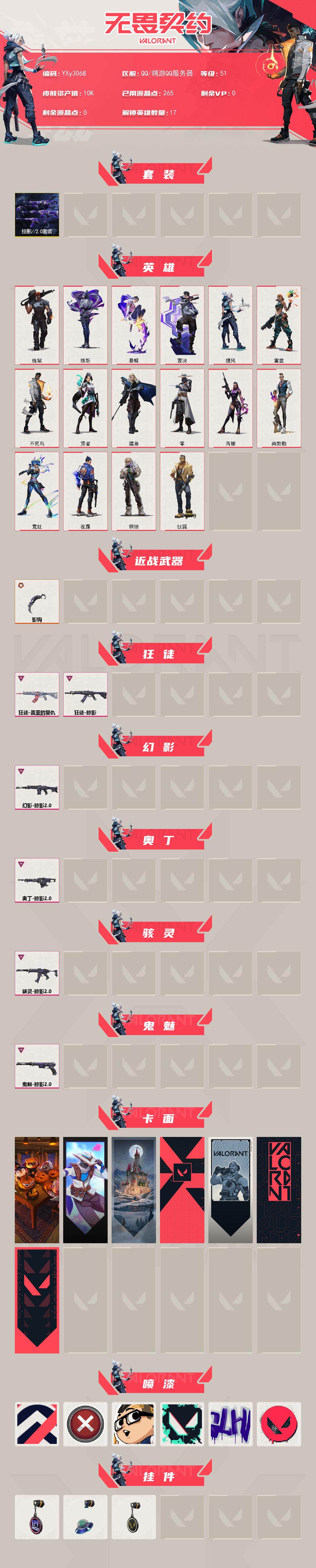 【套装】:掠影//2.0套装 【英雄】:炼狱,维斯,暮蝶,钛狐,壹决,捷风,雷兹,不死鸟,贤者,猎枭,零,芮娜,尚勃勒,霓虹,夜露,钢锁 【近战 武器】:近战武器-影钩 【狂徒】:狂徒-掠影,狂徒-盖亚的复仇 【幻影】:幻影-掠影//2.0 【奥丁】:奥丁-掠影//2.0 【骇灵】:骇灵-掠影//2.0 【鬼魅】:鬼魅-掠影//2.0 【卡面】:南瓜盛典 卡面,无畏契约go!第一卷:零 卡面,