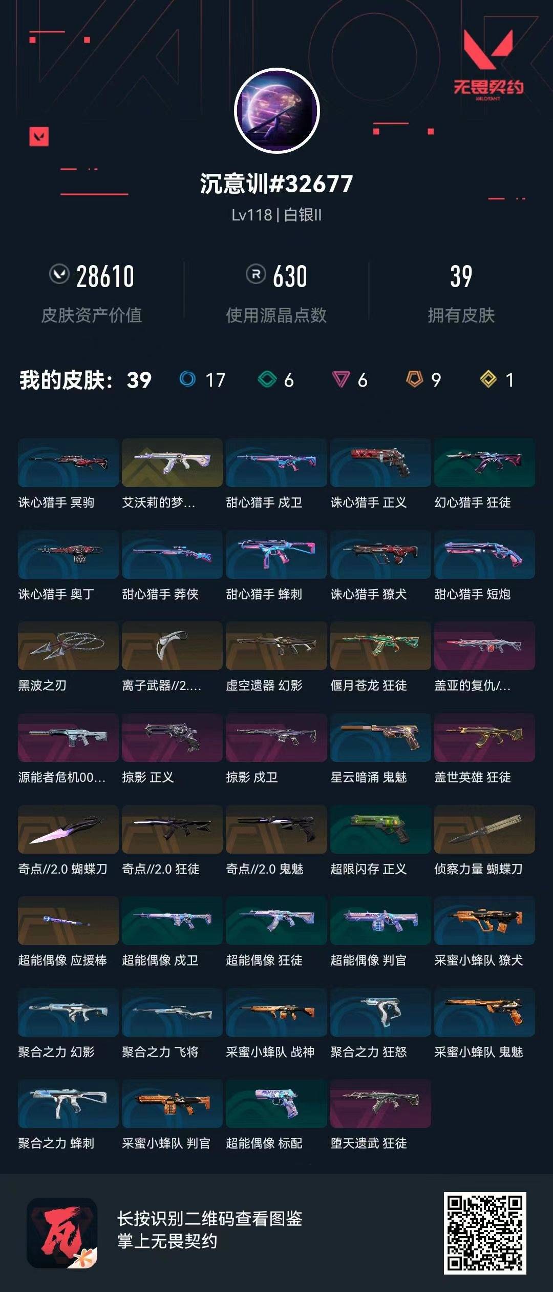 [14400157]9橙皮 1金皮 6紫皮 39皮肤 24英雄 76卡面 630已用源晶 白银段位 【套装】:奇点//2.0套装 【近战武器皮肤】:蝴蝶刀-奇点//2.0离子武器2.0 爪刀黑波之刃蝴蝶刀-侦察力量超能偶像 应援棒 【佩呛皮肤】:鬼魅-奇点//2.0正义-掠影 【步呛皮肤】:幻影-虚空遗器狂徒-奇点//2.0戍卫-掠影狂徒-艾沃莉的梦之翼狂徒-偃月苍龙狂徒-盖世英雄狂徒-堕天遗武幻影-源能者危机001 【机呛皮肤】:战神-盖亚的复仇2.0 【挂饰】:超能偶像挂饰袖珍捷风挂饰双城之战小蛋糕挂饰神中神挂饰奇点2.0挂饰糖葫芦挂饰终章ko小金人挂饰
