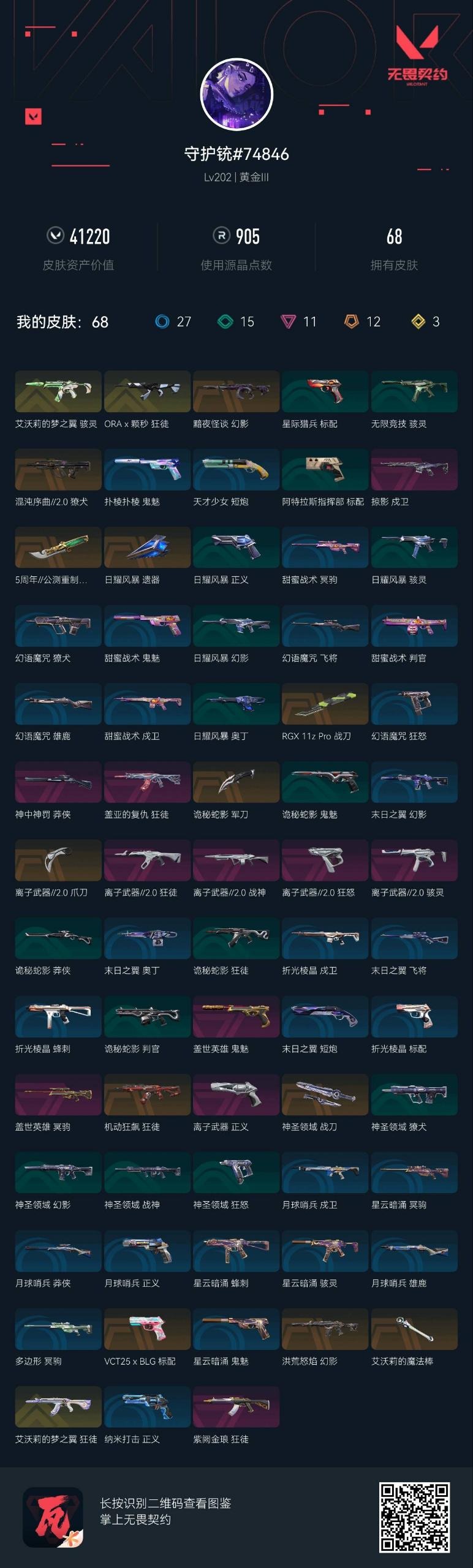[14400953]12橙皮 3金皮 11紫皮 68皮肤 27英雄 98卡面 905已用源晶 黄金段位 【套装】:离子武器2.0 【近战武器皮肤】:rgx 11z pro 战刀苍龙之刃神圣领域 战刀离子武器2.0 爪刀诡秘蛇影艾沃莉的魔法棒 【佩呛皮肤】:标配-vct25xblg狂怒-离子武器2.0正义-离子武器鬼魅-盖世英雄 【冲锋呛皮肤】:骇灵-离子武器2.0骇灵-艾沃莉的梦之翼 【步呛皮肤】:狂徒-ax颗秒狂徒-离子武器2.0幻影-黯夜怪谈戍卫-掠影獠犬-混沌序曲2.0狂徒-紫阙金琅狂徒-盖亚的复仇狂徒-艾沃莉的梦之翼狂徒-机动狂飙幻影-洪荒怒焰 【狙击呛皮肤】:莽侠-神中神罚冥驹-盖世英雄 【机呛皮肤】:战神-离子武器2.0 【挂饰】:薰衣草之心挂饰金属蝶翼挂饰神中神挂饰vctxblg挂饰云开见日挂饰