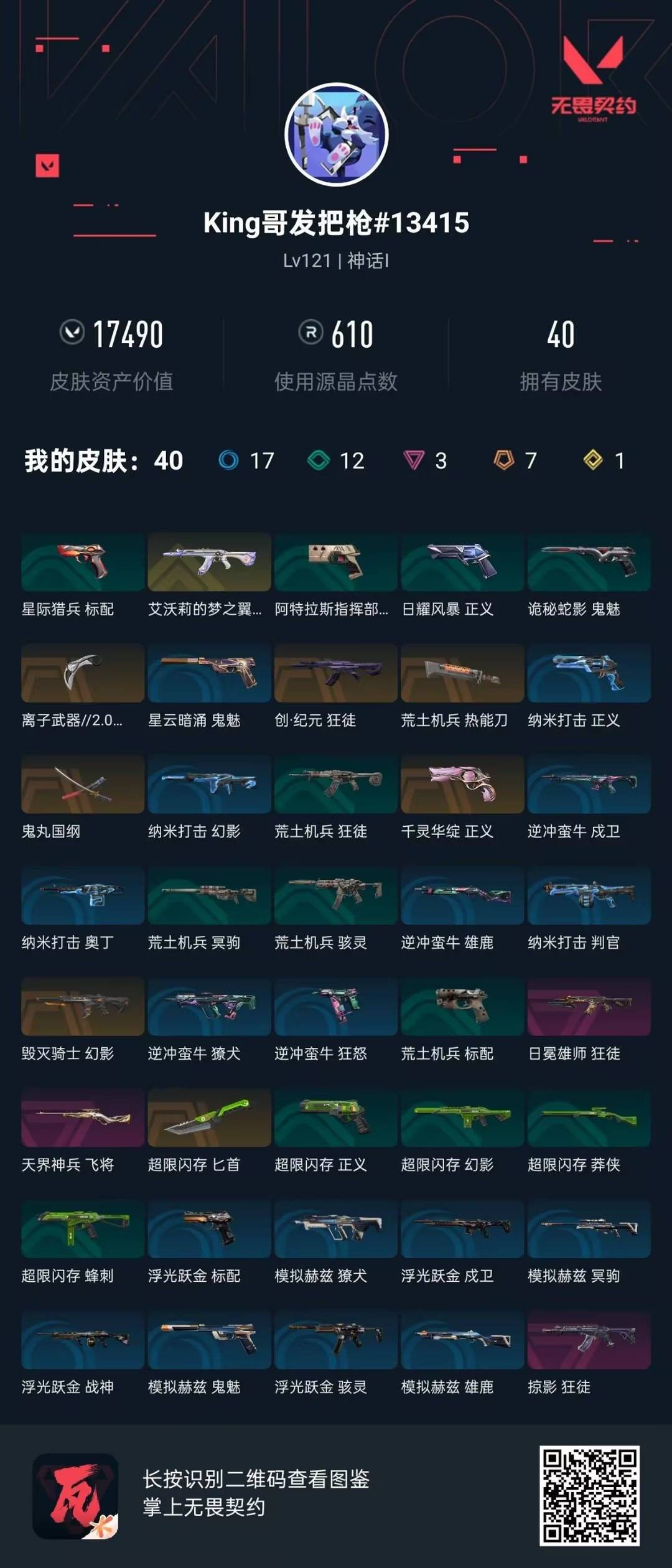 [14402697]7橙皮 1金皮 3紫皮 40皮肤 23英雄 79卡面 610已用源晶 神话段位 【近战武器皮肤】:匕首-超限闪存离子武器2.0 爪刀鬼丸国纲荒土机兵热能刀 【佩呛皮肤】:正义-千灵华绽 【步呛皮肤】:狂徒-创·纪元幻影-毁灭骑士狂徒-掠影狂徒-艾沃莉的梦之翼狂徒-