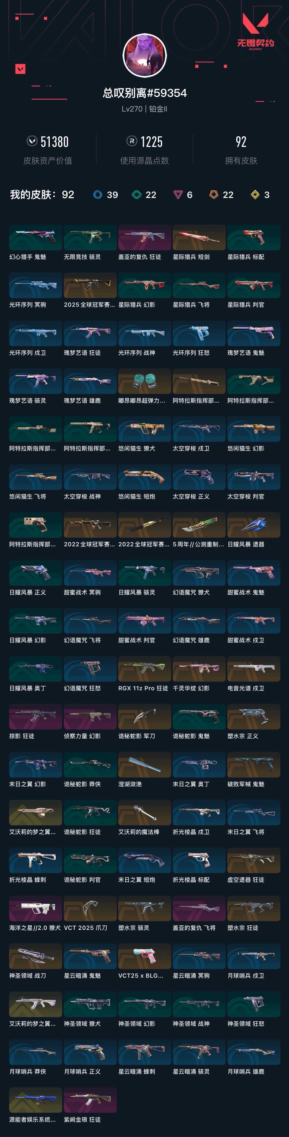 【无畏契约】【yhwww6860】等级:270,已用无畏点51380,已用源晶点1225,金皮:奥丁-艾沃莉的梦之翼|狂徒-艾沃莉的梦之翼|幻影-源能者娱乐系统__橙皮:鬼魅-破败军械|幻影-千灵华绽|骇灵-塑水宗|近战-艾沃莉的魔法棒|近战-澄湖潋滟|狂徒-塑水宗|正义-塑水宗|近战-神圣领域 战刀|标配-vct25 x blg|近战-vct 2025 爪刀|狂徒-虚空遗器|近战-诡秘蛇影 军刀|戍卫-电音光谱|近战-5周年公测重制版 苍龙之刃|近战-日耀风暴 遗器|狂徒-rgx 11z pro|近战-2022全球冠军赛 蝴蝶刀|幻影-2022全球冠军赛|近战-阿特拉斯指挥部 甩棍|近战-嘟昂嘟昂超弹力水球拳套|近战-星际猎兵 短剑|狂徒-2025全球冠军赛__紫皮:飞将-盖亚的复仇|幻影-侦察力量|狂徒-盖亚的复仇|狂徒-紫阙金琅|狂徒-掠影|獠犬-海洋之星2.0__段位:铂金__绿皮:骇灵-无限竞技|獠犬-神圣领域|狂怒-神圣领域|战神-神圣领域|幻影-神圣领域|判官-诡秘蛇影|鬼魅-诡秘蛇影|莽侠-诡秘蛇影|狂徒-诡秘蛇影|正义-日耀风暴|幻影-日耀风暴|奥丁-日耀风暴|短炮-悠闲猫生|飞将-悠闲猫生|幻影-悠闲猫生|獠犬-悠闲猫生|判官-星际猎兵|飞将-星际猎兵|标配-星际猎兵|鬼魅-幻心猎手__蓝皮:鬼魅-星云暗涌|骇灵-星云暗涌|正义-月球哨兵|莽侠-月球哨兵|戍卫-月球哨兵|雄鹿-月球哨兵|冥驹-星云暗涌|蜂刺-星云暗涌|蜂刺-折光棱晶|戍卫-折光棱晶|标配-折光棱晶|飞将-末日之翼|幻影-末日之翼|短炮-末日之翼|奥丁-末日之翼|鬼魅-甜蜜战术|判官-甜蜜战术|戍卫-甜蜜战术|雄鹿-幻语魔咒|獠犬-幻语魔咒|飞将-幻语魔咒|狂怒-幻语魔咒|正义-太空穿梭|战神-太空穿梭|判官-太空穿梭|戍卫-太空穿梭|骇灵-阿特拉斯指挥部|莽侠-阿特拉斯指挥部|标配-阿特拉斯指挥部|狂徒-阿特拉斯指挥部|狂怒-光环序列|戍卫-光环序列|冥驹-光环序列|战神-光环序列|狂徒-瑰梦艺语|鬼魅-瑰梦艺语|骇灵-瑰梦艺语|雄鹿-瑰梦艺语__英雄:尚勃勒|维斯|黑梦|斯凯|暮蝶|盖可|霓虹|壹决|星礈|k/o|幽影|夜露|钢锁|海神|奇乐|炼狱|铁臂|贤者|猎枭|钛狐|芮娜|零|捷风|蝰蛇|不死鸟|幻棱|雷兹|禁灭