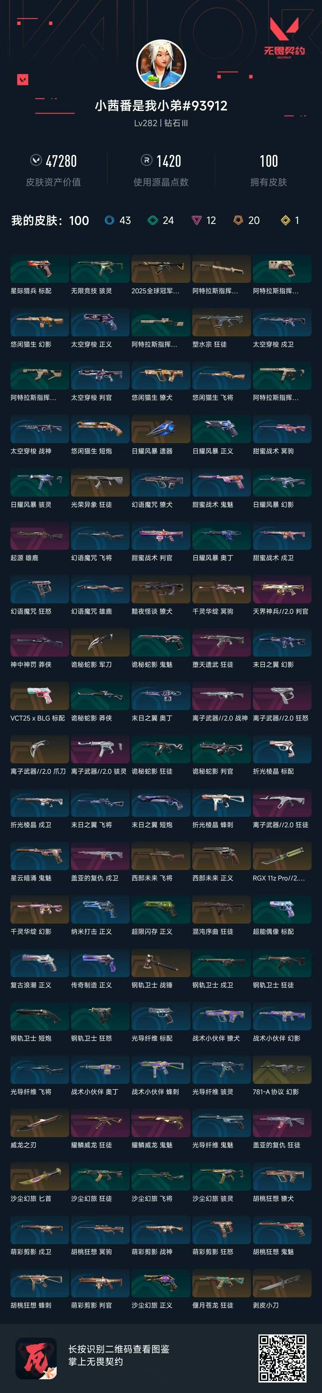 20橙皮 1金皮 12紫皮 100皮肤 28英雄 183卡面 1420已用源晶 钻石段位 【套装】:离子武器2.0耀鳞威龙套装 【近战武器皮肤】:战锤-钢轨卫士阿特拉斯指挥部离子武器2.0 爪刀rgx 11z pro//2.0 蝴蝶刀诡秘蛇影剥皮小刀威龙之刃匕首-沙尘幻旅 【佩呛皮