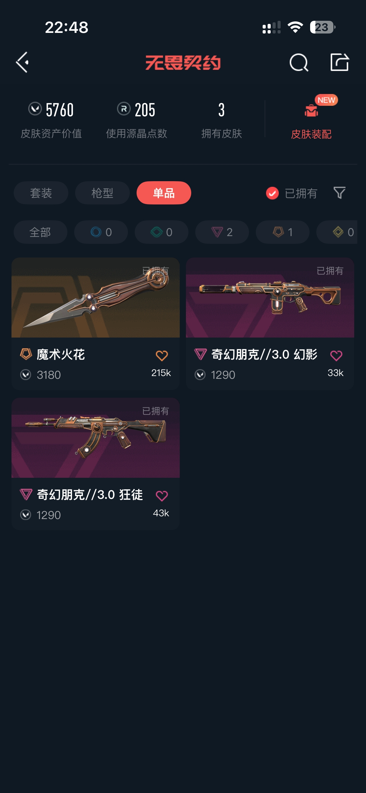【无畏契约】【yhwww6874】等级:71,已用无畏点5760,已用源晶点205,段位:钻石__紫皮:狂徒-奇幻朋克3.0|幻影-奇幻朋克3.0__橙皮:近战-魔术火花__英雄:尚勃勒|维斯|黑梦|斯凯|暮蝶|霓虹|壹决|k/o|幽影|夜露|奇乐|炼狱|铁臂|贤者|猎枭|钛狐|芮娜|零|捷风|蝰蛇|不死鸟|幻棱|雷兹|禁灭