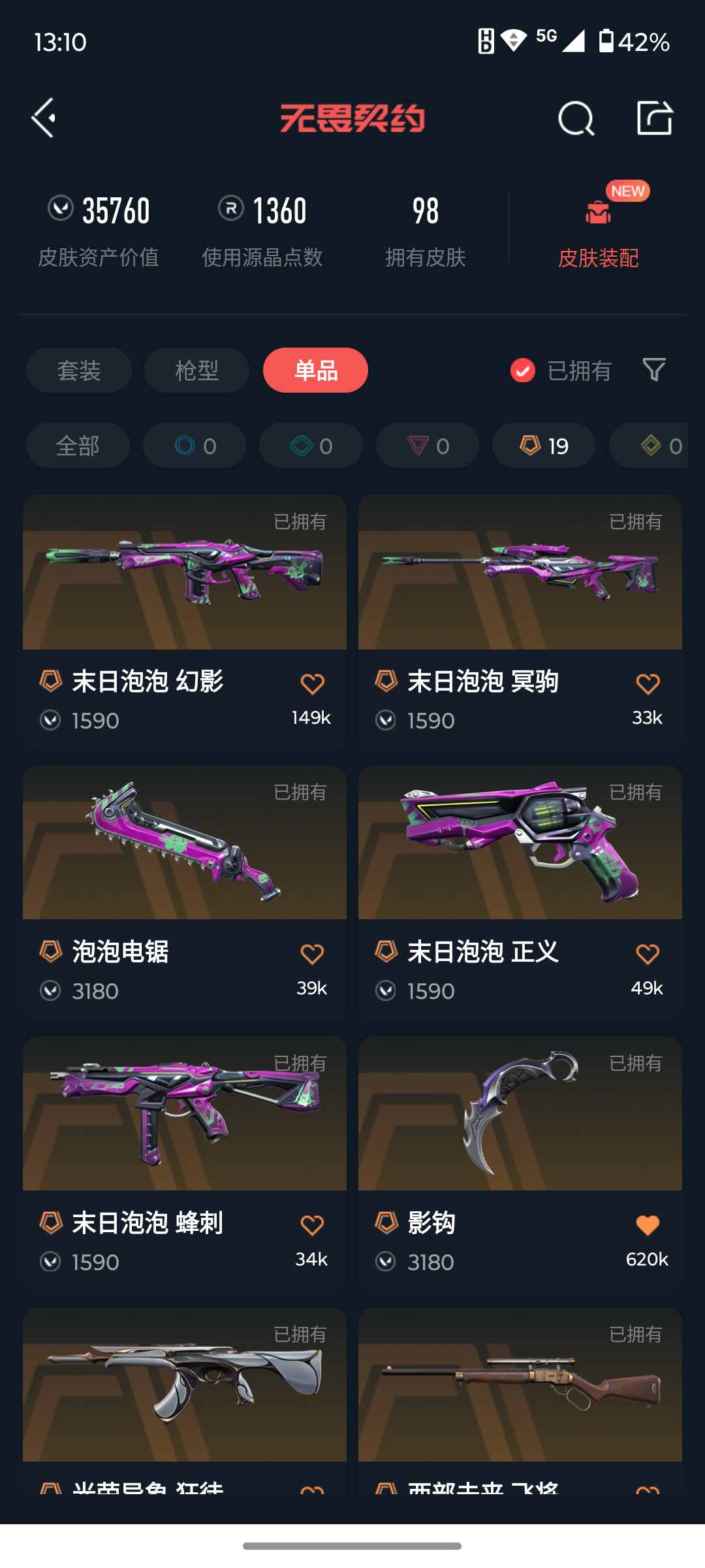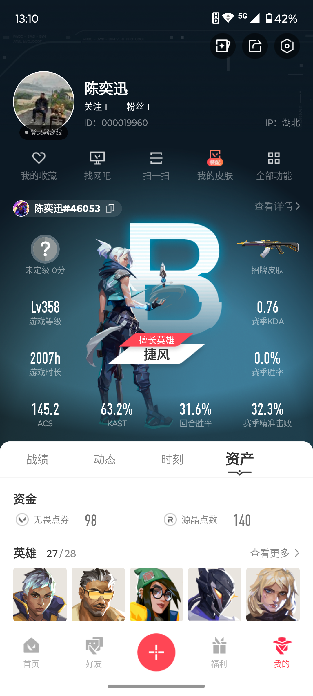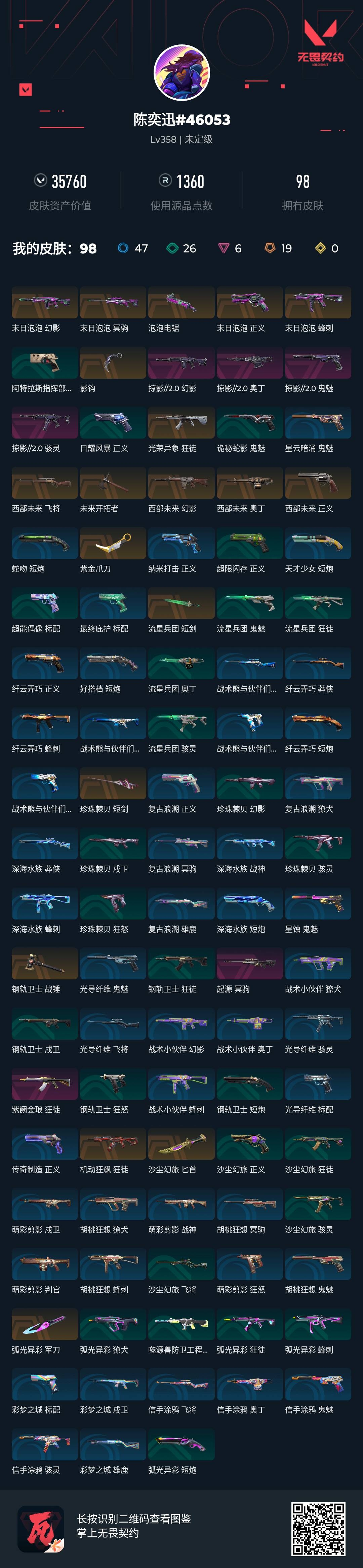 [14412998]q191639(掠影//2.0套装/末日泡泡套装/西部未来套装)无畏契约/等级358/段位未定级/英雄27/皮肤98/资产35760/已使用r点1360/剩余r点140/掠影//2.0-幻影,掠影//2.0-奥丁,掠影//2.0-骇灵,掠影//2.0-鬼魅,影钩,末日泡泡-幻影,末日泡泡-冥驹,末日泡泡-蜂刺,末日泡泡-正义,泡泡电锯,西部未来-幻影,西部未来-奥丁,西部未来-飞将,西部未来-正义,未来开拓者,流星兵团-短剑,珍珠棘贝-短剑,钢轨卫士-战锤,沙尘幻旅-匕首,弧光异彩-军刀,紫金爪刀,光荣异象-狂徒,机动狂飙-狂徒,紫阙金琅-狂徒,起源-冥驹