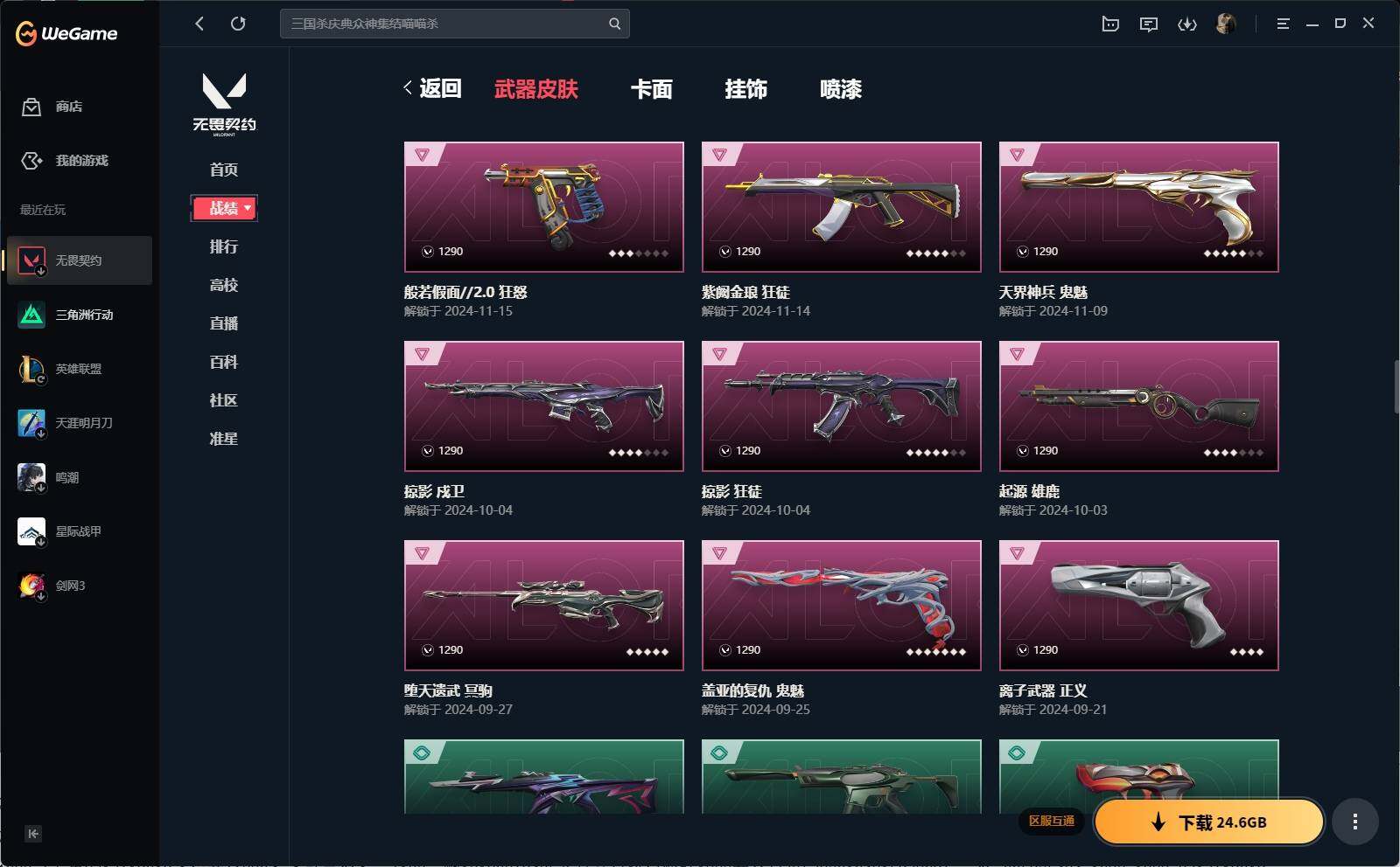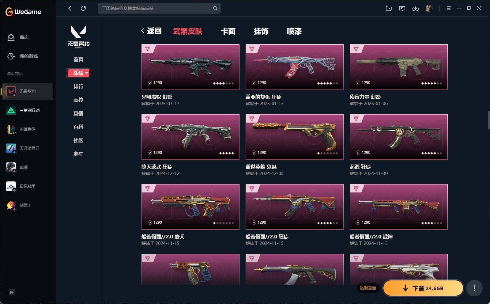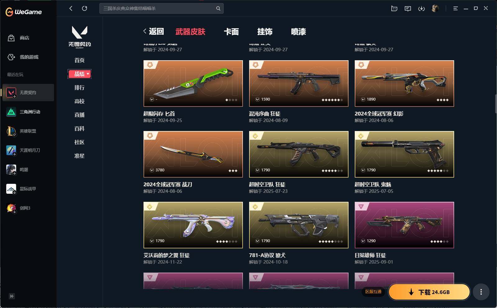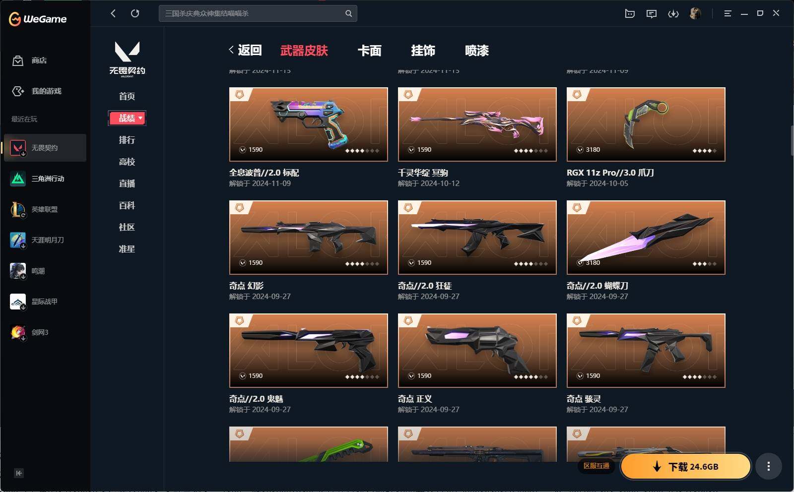 【1185】xl26643 【套装】:2024全球冠军赛套装,创·纪元套装,奇点//2.0套装,回火礼包:奇点套装,般若假面//2.0套装 【英雄】:幻棱,炼狱,维斯,暮蝶,钛狐,壹决,铁臂,捷风,雷兹,幽影,不死鸟,贤者,猎枭,蝰蛇,零,芮娜,奇乐,尚勃勒,霓虹,斯凯,夜露,星礈,k/o,海神,盖可,黑梦,钢锁 【近战 武器】:近战武器-2024全球冠军赛 战刀,近战武器-奇点//2.0 蝴蝶刀,近战武器-rgx 11z pro//3.0 爪刀,近战武器-镭切,近战武器-鬼丸国纲,近战武器-超限闪存 匕首,近战武器-荒土机兵 热能刀,近战武器-阿特拉斯指挥部 甩棍,近战武器-星际猎兵 短剑 【狂徒】:狂徒-艾沃莉的梦之翼,狂徒-超时空卫队,狂徒-洪荒怒焰,狂徒-混沌序曲,狂徒-奇点//2.0,狂徒-双城之战,狂徒-偃月苍龙,狂徒-创·纪元,狂徒-般若假面//2.0,狂徒-堕天遗武,狂徒-掠影,狂徒-盖亚的复仇,狂徒-起源,狂徒-日冕雄师,狂徒-紫阙金琅,狂徒-超能偶像,狂徒-荒土机兵 【幻影】:幻影-2024全球冠军赛,幻影-黯夜怪谈,幻影-奇点,幻影-千灵华绽,幻影-侦察力量,幻影-异鳞魔蛇,幻影-超限闪存,幻影-神圣领域,幻影-纳米打击 【戍卫】:戍卫-掠影,戍卫-浮光跃金,戍卫-逆冲蛮牛 【獠犬】:獠犬-781-a协议,獠犬-般若假面//2.0,獠犬-模拟赫兹,獠犬-逆冲蛮牛 【冥驹】:冥驹-千灵华绽,冥驹-堕天遗武,冥驹-荒土机兵,冥驹-模拟赫兹 【飞将】:飞将-塑水宗,飞将-聚合之力 【莽侠】:莽侠-归零者//2.0,莽侠-创·纪元,莽侠-超限闪存,莽侠-月球哨兵 【战神】:战神-般若假面//2.0,战神-神圣领域,战神-采蜜小蜂队,战神-浮光跃金 【奥丁】:奥丁-纳米打击 【判官】:判官-千灵华绽,判官-超能偶像,判官-采蜜小蜂队,判官-纳米打击x 【雄鹿】:雄鹿-起源,雄鹿-模拟赫兹,雄鹿-逆冲蛮牛,雄鹿-月球哨兵 【骇灵】:骇灵-奇点,骇灵-创·纪元,骇灵-荒土机兵,骇灵-无限竞技,骇灵-浮光跃金,骇灵-星云暗涌 【蜂刺】:蜂刺-超限闪存,蜂刺-聚合之力,蜂刺-星云暗涌 【标配】:标配-全息波普//2.0,标配-荒土机兵,标配-浮光跃金 【vct手呛】:标配-vct25 x navi 【正义】:正义-奇点,正义-创·纪元,正义-离子武器,正义-超限闪存,正义-纳米打击,正义-月球哨兵 【鬼魅】:鬼魅-超时空卫队,鬼魅-奇点//2.0,鬼魅-盖世英雄,鬼魅-盖亚的复仇,鬼魅-天界神兵,鬼魅-诡秘蛇影,鬼魅-采蜜小蜂队,鬼魅-模拟赫兹 【狂怒】:狂怒-般若假面//2.0,狂怒-神圣领域,狂怒-聚合之力,狂怒-逆冲蛮牛 【卡面】:终章:激斗汉堡 卡面,进入射程 卡面,分崩离析 卡面,纳米打击 卡面,抑制技术 卡面,激斗汉堡 卡面,瓦娃脸雪糕 p2 卡面,从黄昏到黎明 卡面,荒土机兵 卡面,银弹猎手 卡面,逆冲蛮牛 卡面,《双城之战》拥抱 卡面,精灵大战 卡面,欢迎来到底城 卡面,南瓜盛典 卡面,唱片的故事 卡面,钢弓与箭弦 卡面,无畏契约:暮蝶 卡面,排除故障 卡面,奇点//2.0 卡面,战术桌游 卡面,悠享食光 卡面,修车达人 卡面,热舞环节 卡面,模拟赫兹 卡面,浮光跃金 卡面,超限闪存 卡面,维斯工牌 卡面,正义的化身 卡面,2024全球冠军赛 卡面,时间到 卡面,最高舞台 卡面,超能偶像 卡面,生意人麦宝 卡面,树懒大作战 卡面,声感陷阱设计图 卡面,红鳞松叶 卡面,钢锁工牌 卡面,战术小伙伴的夏日 卡面,采蜜小蜂队 卡面,聚合之力 卡面,梦幻奶茶 卡面,脚踝终结者 卡面 ,沙雕爆能器 卡面,无畏契约go!第一卷:芮娜 卡面,无畏契约go!第一卷:零 卡面,《双城之战》金克丝 卡面,战术小伙伴 卡面,钢锁vs盖可 卡面,别冒尖 卡面,代号红色 卡面,冰淇淋店 卡面,新兵报到 卡面,v契约 卡面,无畏契约 卡面 【喷漆】:小小心意 喷漆,战“素”兔 喷漆,宇宙的指引 喷漆,请求重启 喷漆,逆冲蛮牛 喷漆,纳米打击 喷漆,鼻尖上的蝴蝶 喷漆,简笔画黯兽 喷漆,独守蝰腹 喷漆,他们将落荒而逃 喷漆,通缉:战术企鹅 喷漆,荒土机兵 喷漆,别挡我吃球! 喷漆,嗨宝南瓜灯 喷漆,嘭! 喷漆,都算到了 喷漆,控场勿近 喷漆,皮蛋呼呼 喷漆,像素星礈 喷漆,图谋不轨的零 喷漆,伤心心 喷漆,小丑猫 喷漆,模拟赫兹 喷漆,高丽风情小熊 喷漆,奇点//2.0 喷漆,蹲到一个 喷漆,全力集中 喷漆,超限闪存 喷漆,rua一下 喷漆,熊抱 喷漆,高丽风情小虎 喷漆,记在小本本 喷漆,防弹企鹅 喷漆,高丽风情小蛙 喷漆,2024全球冠军赛 喷漆,超级粉丝 喷漆,捷风差距 喷漆,放我出去 喷漆,掩护我 喷漆,大佬发呛 喷漆,边缘试探 喷漆,拼一呛 喷漆,聚合之力 喷漆,采蜜小蜂队 喷漆,梦幻小队 喷漆,五个全都齐了 喷漆,霓光四射 喷漆,倒吸一口凉气 喷漆,买装还是存钱 喷漆,关门放狗 喷漆,无畏契约go!第一卷:奇乐 喷漆,胜利属于无畏契约 喷漆,glhf 喷漆,无畏契约 喷漆 【挂饰】:第九季:超凡 挂饰,终章:猫猫木乃伊 挂饰,荒土机兵 挂饰,悠闲鸡块 挂饰,猫猫木乃伊 挂饰,水壶 挂饰,纳米打击 挂饰,逆冲蛮牛 挂饰,可爱糖糖 挂饰,伞绳 挂饰,《双城之战》小蛋糕 挂饰,第九季//第三幕 纪念币 挂饰,拳击战术熊 挂饰,工具腰带 挂饰,无畏契约go!第一卷 芮娜 挂饰,无畏契约go!第一卷 零 挂饰,暗藏猫腻 挂饰,高丽风情 挂饰,奇点//2.0 挂饰,熔岩灯 挂饰,超限闪存 挂饰,迷你k/o 挂饰,模拟赫兹 挂饰,第九季//第二幕 纪念币 挂饰,薰衣草之心 挂饰,2024全球冠军赛 挂饰,袖珍捷风 挂饰,迷你浓缩 挂饰,这瓜保熟 挂饰,采蜜小蜂队 挂饰,第九季//第一幕 纪念币 挂饰,聚合之力 挂饰,天外飞客 挂饰,红鳞松叶 挂饰,《双城之战》魄罗 挂饰,无畏契约 纪念币 挂饰