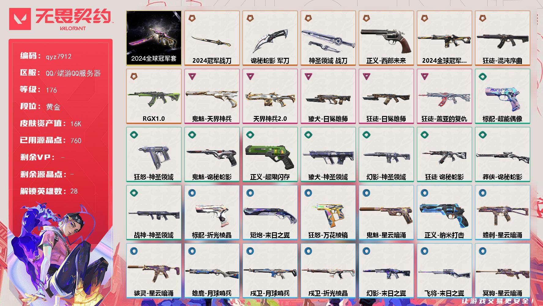 精品黄金24套小号-喜欢的来吧了嘎嘎合适-qyz7912-亮点皮肤:-幻影-2024全球冠军赛战刀-2024全球冠军赛-套装:-2024全球冠军赛套装-近战武器皮肤:-神圣领域-战刀诡秘蛇影-步呛皮肤:-狂徒-盖亚的复仇獠犬-日冕雄师狂徒-日冕雄师狂徒-混沌序曲狂徒-rgx-11z-pro-佩呛皮肤:-鬼魅-天界神兵正义-西部未来-霰弹呛皮肤:-判官-天界神兵20-亮点:-【qyz7912】【套装】:2024全球冠军赛套装【英雄】:幻棱,炼狱,维斯,暮蝶,钛狐,壹决,铁臂,捷风,雷兹,幽影,不死鸟,贤者,猎枭,蝰蛇,零,芮娜,奇乐,尚勃勒,霓虹,斯凯,夜露,星礈,k/o,海神,盖可,黑梦,钢锁【近战-武器】:近战武器-2024全球冠军赛-战刀,近战武器-诡秘蛇影-军刀,近战武器-神圣领域-战刀【狂徒】:狂徒-混沌序曲,狂徒-rgx-11z-pro,狂徒-盖亚的复仇,狂徒-日冕雄师,狂徒-诡秘蛇影【幻影】:幻影-2024全球冠军赛,幻影-神圣领域,幻影-末日之翼【戍卫】:戍卫-月球哨兵,戍卫-折光棱晶【獠犬】:獠犬-日冕雄师,獠犬-神圣领域【冥驹】:冥驹-星云暗涌【飞将】:飞将-末日之翼【莽侠】:莽侠-诡秘蛇影,莽侠-月球哨兵【战神】:战神-神圣领域【奥丁】:奥丁-末日之翼【判官】:判官-天界神兵//20,判官-诡秘蛇影【雄鹿】:雄鹿-月球哨兵【骇灵】:骇灵-星云暗涌【蜂刺】:蜂刺-星云暗涌,蜂刺-折光棱晶【标配】:标配-超能偶像,标配-折光棱晶【正义】:正义-西部未来,正义-超限闪存,正义-纳米打击,正义-月球哨兵【鬼魅】:鬼魅-天界神兵,鬼魅-诡秘蛇影,鬼魅-星云暗涌【狂怒】:狂怒-神圣领域,狂怒-万花棱镜【短炮】:短炮-末日之翼【卡面】:终章:激斗汉堡-卡面,进入射程-卡面,从黄昏到黎明-卡面,精灵大战-卡面,欢迎来到底城-卡面,南瓜盛典-卡面,vct-cn首冠-卡面,修车达人-卡面,热舞环节-卡面,正义的化身-卡面,铁之华-卡面,2024全球冠军赛-卡面,时间到-卡面,最高舞台-卡面,声感陷阱设计图-卡面,clutch-卡面,梦幻奶茶-卡面,纤云弄巧-卡面,零点嗅探设计图-卡面,无畏契约go!第一卷:芮娜-卡面,清除名单-卡面,无畏契约go!第一卷:零-卡面,化茧成蝶-卡面,《双城之战》金克丝-卡面,逆向独行-卡面-,代号红色-卡面,新兵报到-卡面,v契约-卡面,无畏契约-卡面【喷漆】