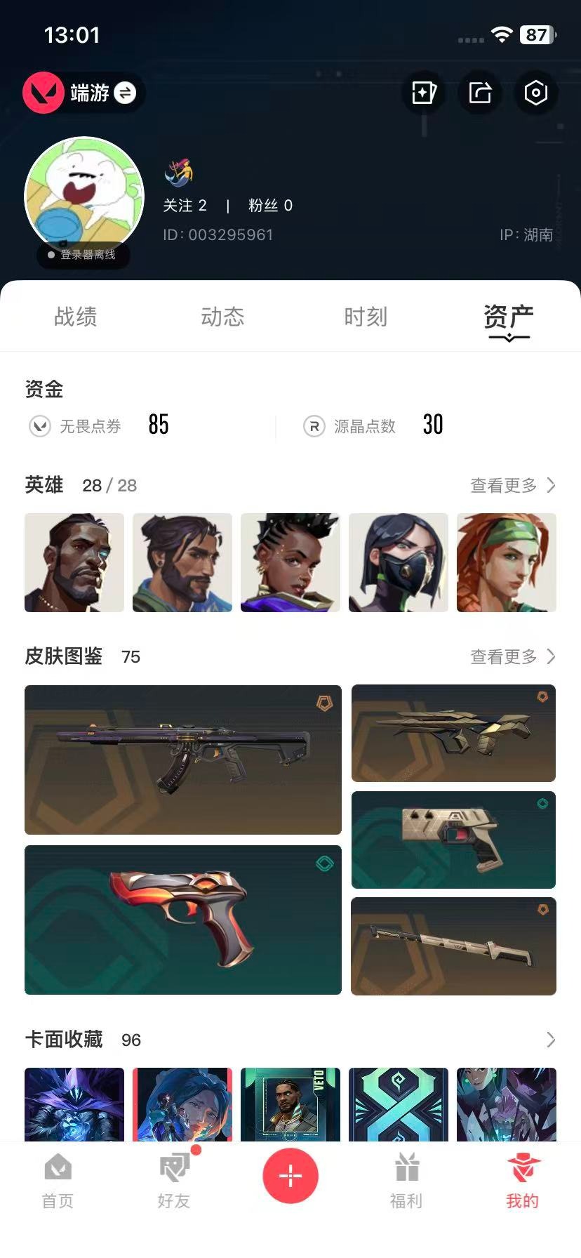 17橙皮 1金皮 8紫皮 75皮肤 28英雄 96卡面 920已用源晶 铂金段位 【套装】:掠影2.0套装 【近战武器皮肤】:影刃影钩rgx 11z pro//2.0 蝴蝶刀诡秘蛇影神圣领域 战刀阿特拉斯指挥部 【佩呛皮肤】:标配-vct25xedg鬼魅-掠影2.0正义-塑水宗鬼魅