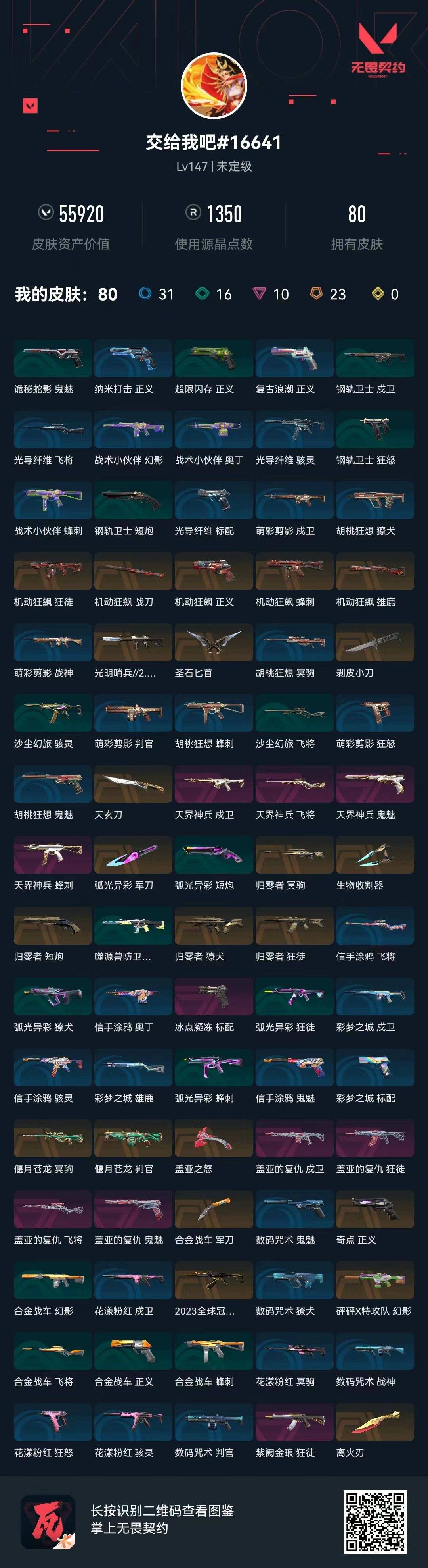 23橙皮 10紫皮 80皮肤 27英雄 122卡面 1350已用源晶 未定级段位 【亮点皮肤】:离火刃狂徒-2023全球冠军赛 【套装】:机动狂飙套装天界神兵套装归零者套装盖亚的复仇套装 【近战武器皮肤】:盖亚之怒剥皮小刀机动狂飙战刀天玄刀圣石匕首军刀-弧光异彩军刀-合金战车