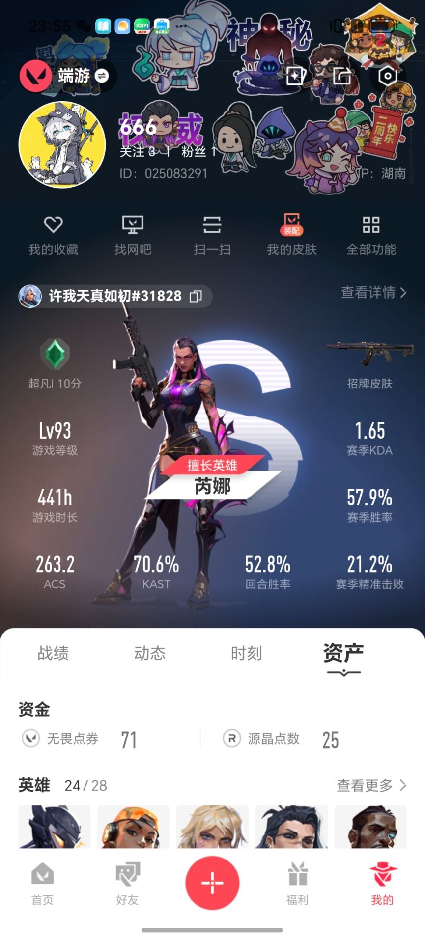 11橙皮 1金皮 7紫皮 55皮肤 24英雄 77卡面 670已用源晶 超凡段位 【套装】:2025全球冠军赛 【近战武器皮肤】:阿特拉斯指挥部碎心裂刃星际猎兵 短剑影钩2025全球冠军赛 蝴蝶刀 【佩呛皮肤】:正义-千灵华绽标配-紫阙金琅 【冲锋呛皮肤】:骇灵-神中神罚 【步呛皮肤】: