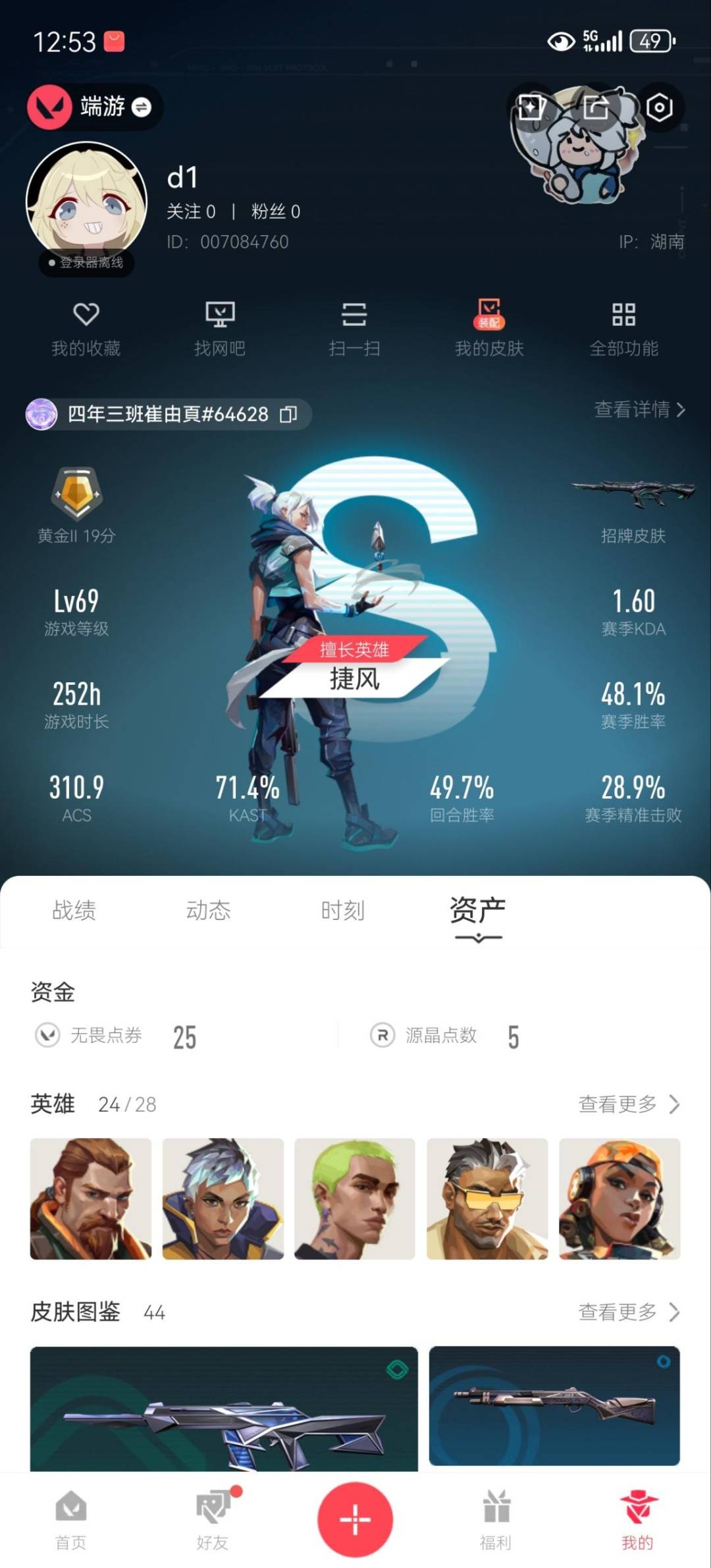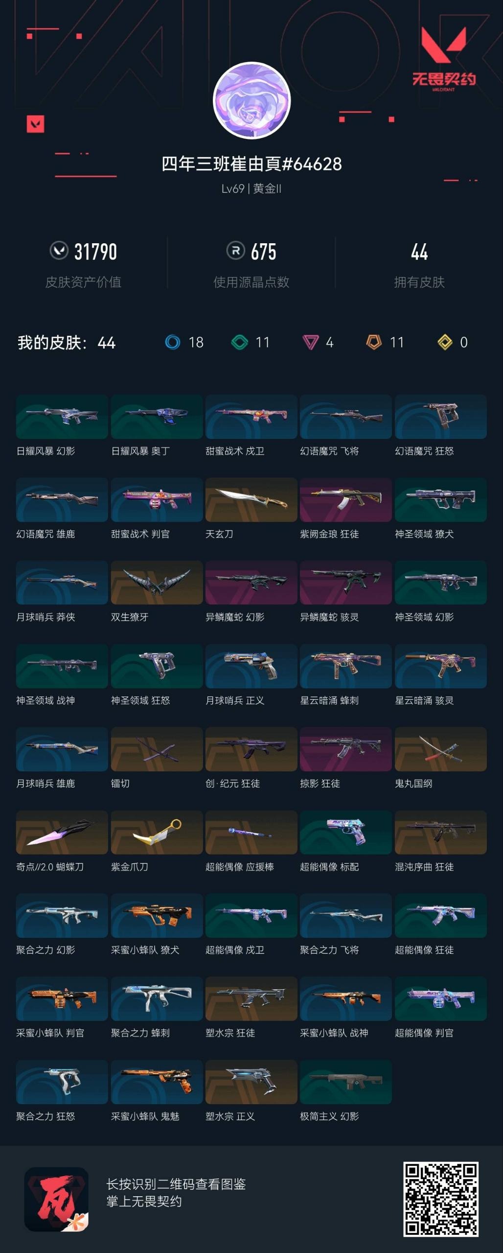 [14464600]11橙皮 4紫皮 44皮肤 24英雄 71卡面 675已用源晶 黄金段位 【套装】:异鳞魔蛇 【近战武器皮肤】:蝴蝶刀-奇点//2.0双生獠牙镭切鬼丸国纲紫金爪刀天玄刀超能偶像 应援棒 【佩呛皮肤】:正义-塑水宗 【冲锋呛皮肤】:骇灵-异鳞魔蛇 【步呛皮肤】:狂徒-混沌序曲幻影-异鳞魔蛇狂徒-创·纪元狂徒-掠影狂徒-紫阙金琅狂徒-塑水宗 【挂饰】:超能偶像挂饰袖珍捷风挂饰双城之战小蛋糕挂饰糖葫芦挂饰