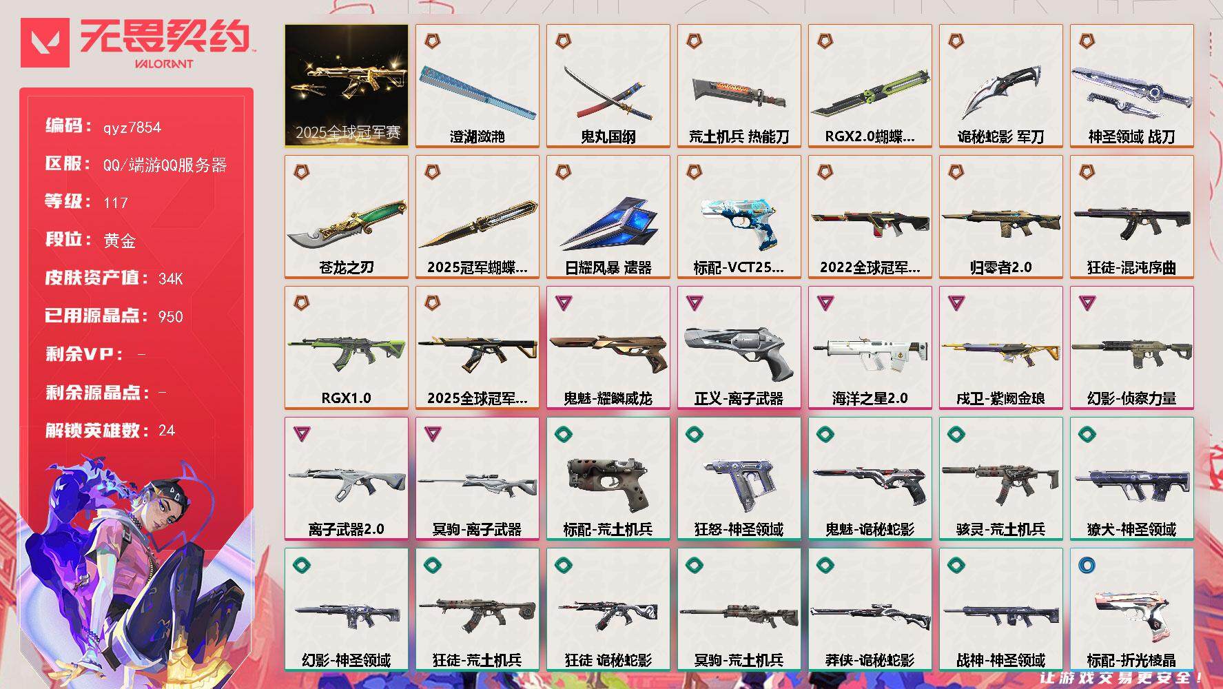 25套装-22m4-五周年小刀-显卡ak-离子正义-qyz7854-亮点皮肤:-幻影-2022全球冠军赛-近战武器皮肤:-澄湖潋滟荒土机兵热能刀鬼丸国纲神圣领域-战刀rgx-11z-pro//20-蝴蝶刀诡秘蛇影苍龙之刃-步呛皮肤:-戍卫-紫阙金琅幻影-侦察力量狂徒-混沌序曲幻影-归零者//20獠犬-海洋之星20狂徒-离子武器20狂徒-rgx-11z-pro-佩呛皮肤:-鬼魅-耀鳞威龙正义-离子武器标配-vct25xlev-狙击呛皮肤:-冥驹-离子武器-亮点:-【qyz7854】【套装】:2025全球冠军赛套装【英雄】:幻棱,炼狱,维斯,暮蝶,钛狐,壹决,铁臂,捷风,幽影,不死鸟,贤者,猎枭,零,芮娜,奇乐,尚勃勒,斯凯,夜露,k/o,海神,盖可,黑梦,钢锁【近战-武器】:近战武器-2025全球冠军赛-蝴蝶刀,近战武器-5周年//公测重制版-苍龙之刃,近战武器-rgx-11z-pro//20-蝴蝶刀,近战武器-澄湖潋滟,近战武器-鬼丸国纲,近战武器-荒土机兵-热能刀,近战武器-诡秘蛇影-军刀,近战武器-神圣领域-战刀,近战武器-日耀风暴-遗器【狂徒】:狂徒-2025全球冠军赛,狂徒-混沌序曲,狂徒-rgx-11z-pro,狂徒-离子武器//20,狂徒-荒土机兵,狂徒-诡秘蛇影【幻影】:幻影-2022全球冠军赛,幻影-归零者//20,幻影-侦察力量,幻影-神圣领域,幻影-纳米打击,幻影-末日之翼【戍卫】:戍卫-紫阙金琅,戍卫-逆冲蛮牛,戍卫-月球哨兵,戍卫-折光棱晶【獠犬】:獠犬-海洋之星//20,獠犬-神圣领域,獠犬-逆冲蛮牛【冥驹】:冥驹-离子武器,冥驹-荒土机兵,冥驹-星云暗涌【飞将】:飞将-末日之翼【莽侠】:莽侠-诡秘蛇影,莽侠-月球哨兵【战神】:战神-神圣领域【奥丁】:奥丁-纳米打击,奥丁-末日之翼【判官】:判官-诡秘蛇影,判官-纳米打击x【雄鹿】:雄鹿-逆冲蛮牛,雄鹿-月球哨兵【骇灵】:骇灵-荒土机兵,骇灵-星云暗涌【蜂刺】:蜂刺-星云暗涌,蜂刺-折光棱晶【标配】:标配-荒土机兵,标配-折光棱晶【vct手呛】:标配-vct25-x-lev【正义】:正义-离子武器,正义-纳米打击,正义-月球哨兵【鬼魅】:鬼魅-耀鳞威龙,鬼魅-诡秘蛇影,鬼魅-星云暗涌【狂怒】:狂怒-神圣领域,狂怒-逆冲蛮牛
