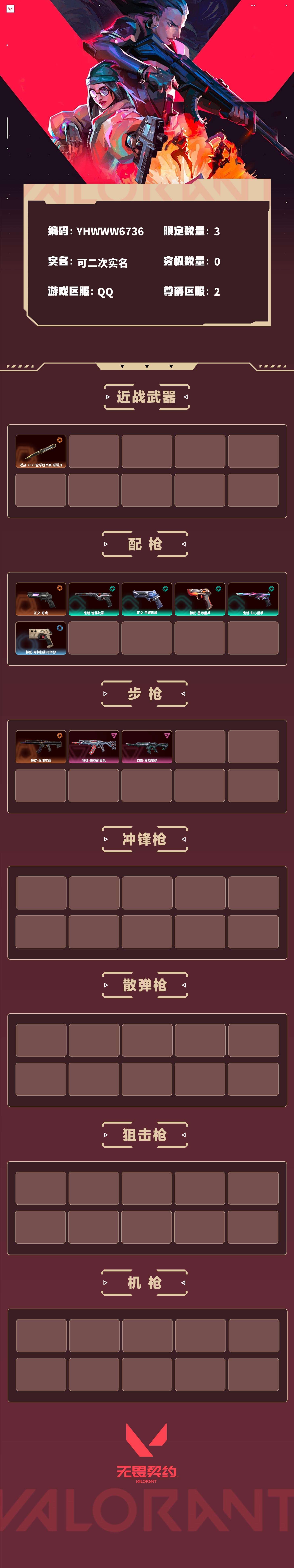 【无畏契约】【yhwww6736】等级:101,橙皮:狂徒-混沌序曲|正义-奇点|近战-2025全球冠军赛 蝴蝶刀__紫皮:狂徒-盖亚的复仇|幻影-异鳞魔蛇__段位:黄金__绿皮:鬼魅-诡秘蛇影|正义-日耀风暴|标配-星际猎兵|鬼魅-幻心猎手__蓝皮:标配-阿特拉斯指挥部__英雄:尚勃勒|维斯|黑梦|斯凯|暮蝶|盖可|霓虹|壹决|星礈|k/o|幽影|夜露|钢锁|海神|奇乐|炼狱|铁臂|贤者|猎枭|钛狐|芮娜|零|捷风|蝰蛇|不死鸟|幻棱|雷兹|禁灭
